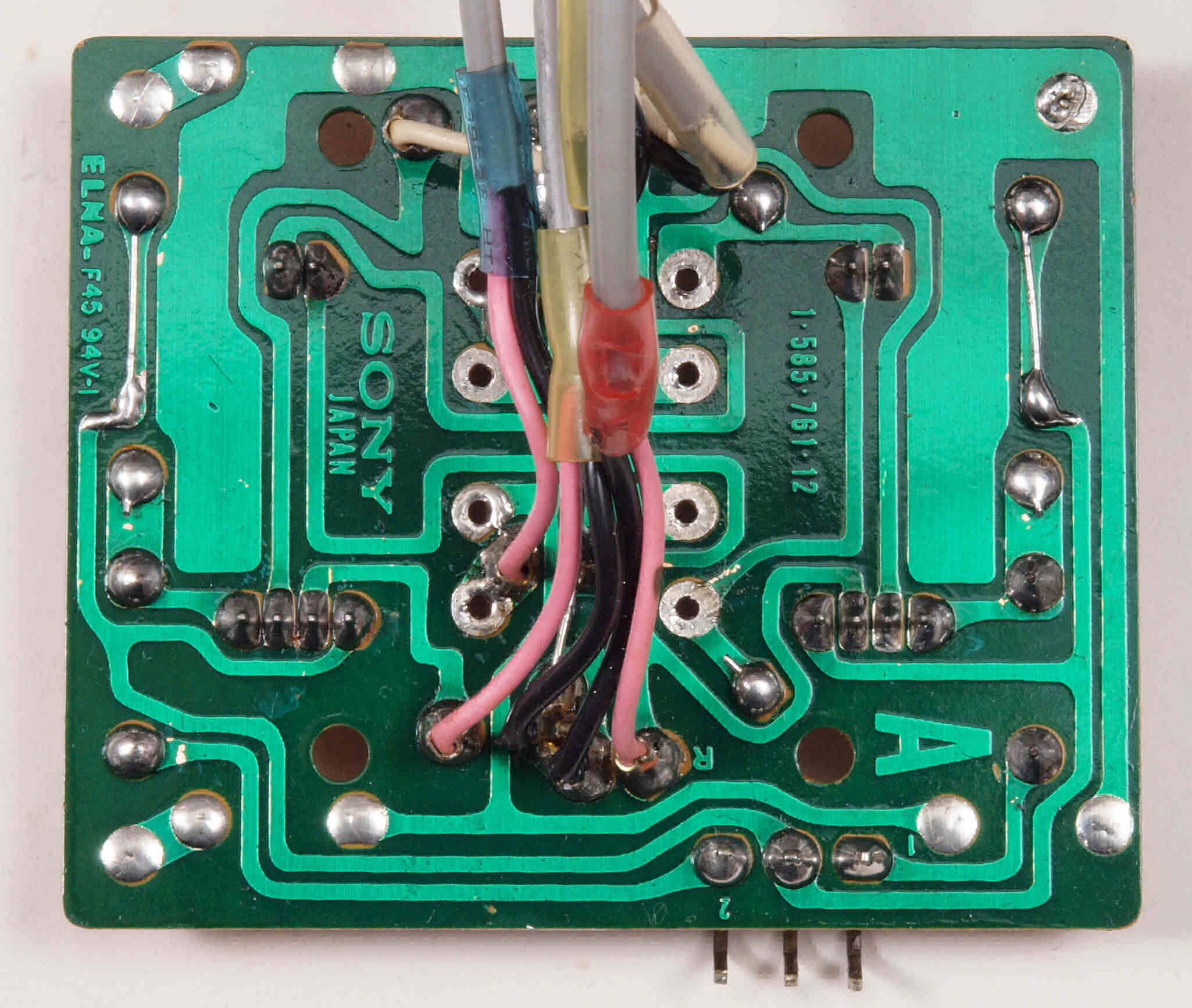 CE3. 修理(交換)後 TAPE入出力RCA端子裏、入力RCA端子裏。 接続シールドケーブルは絶縁ビニールを補強。