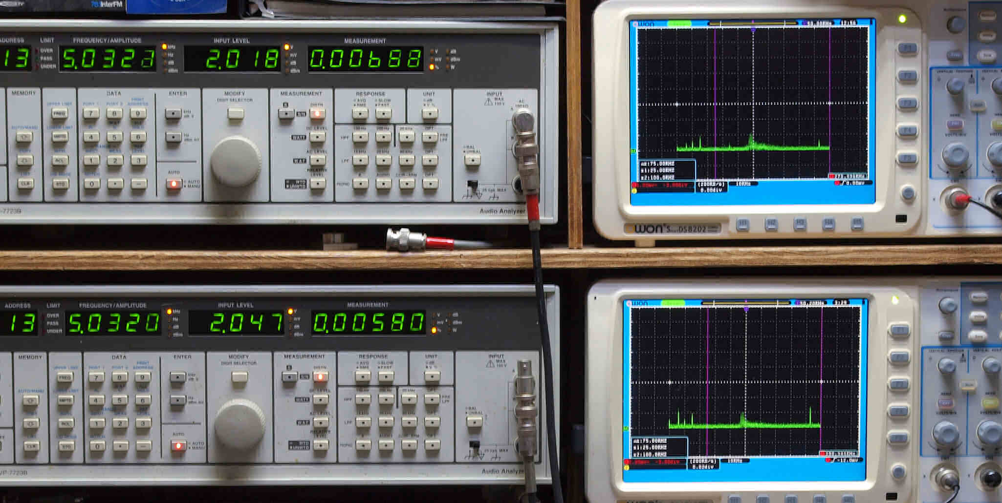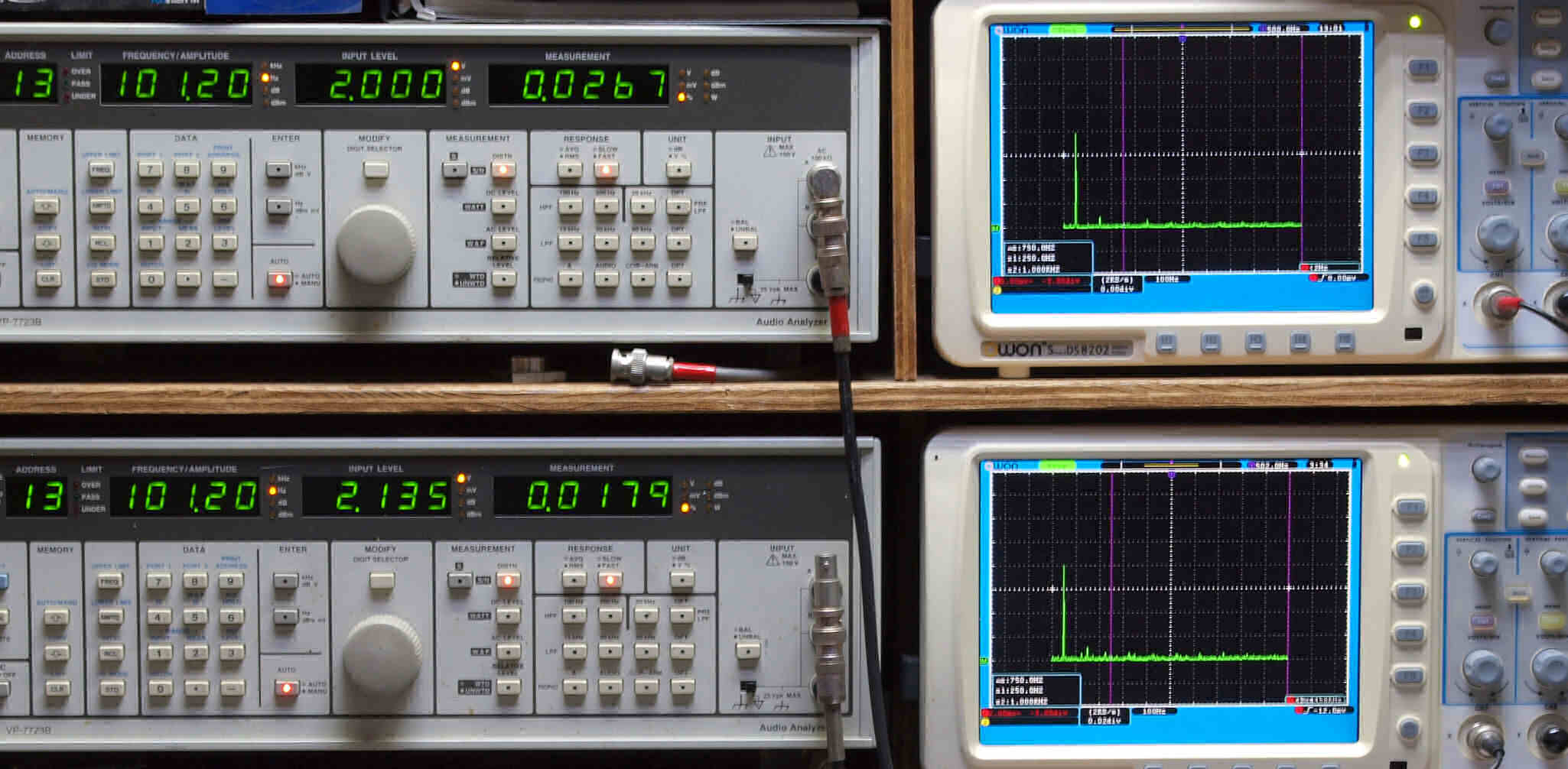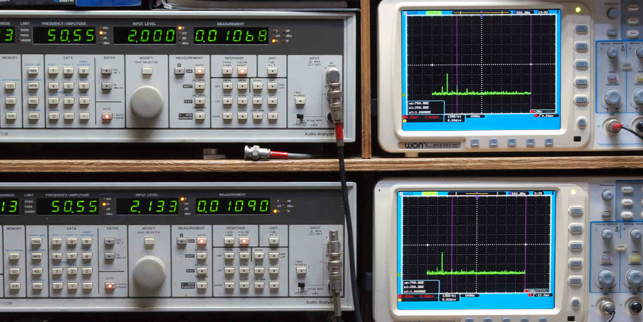 よって、ダイアル設定出力レベルより低くなります。測定機器の仕様や整備の様子はこちら、「VP−7723B」「VP−7201A」。 FFT画面の見方はこちら。