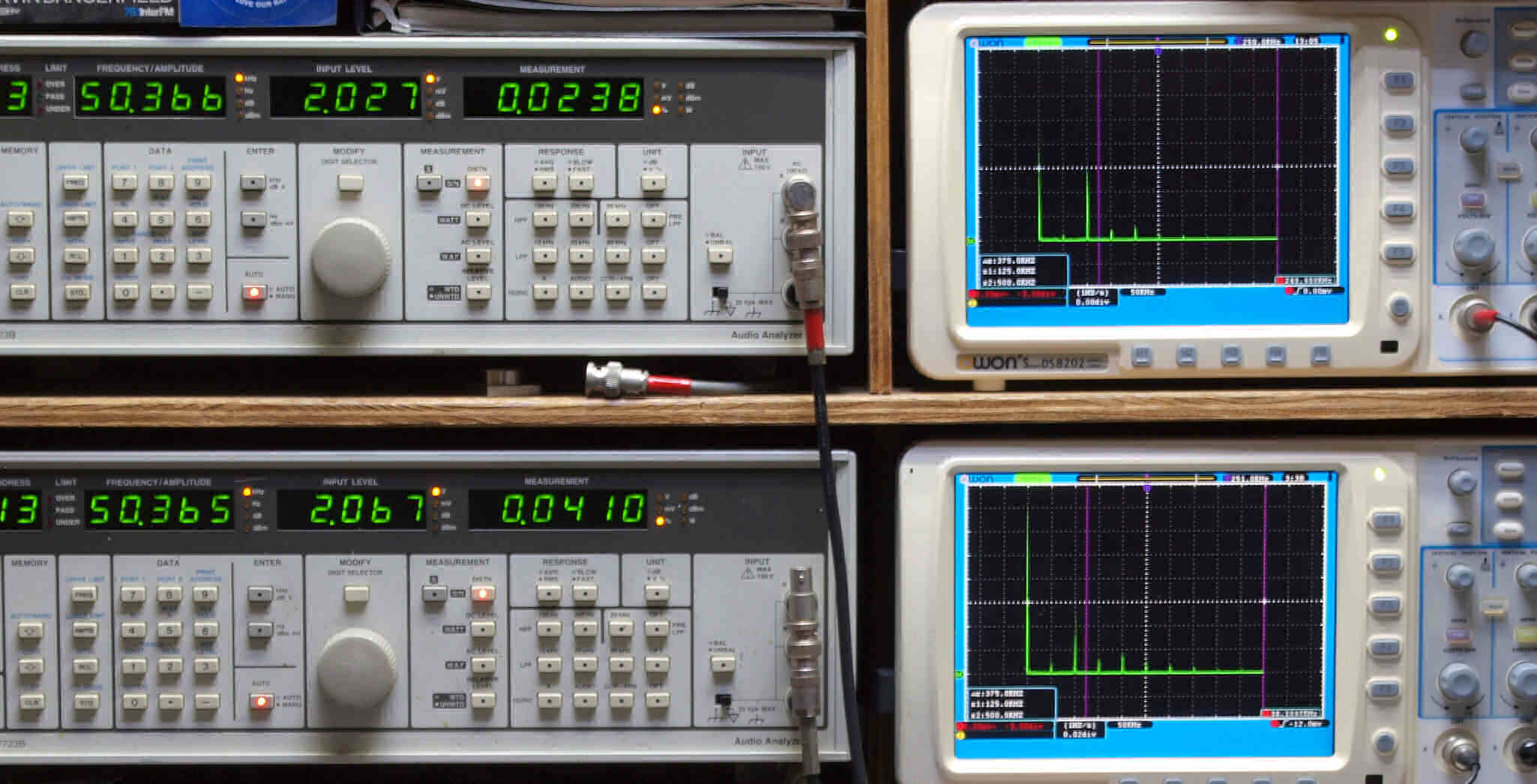 E21. MM 50Hz入力、R側出力電圧=2V、 0.01068%歪み。