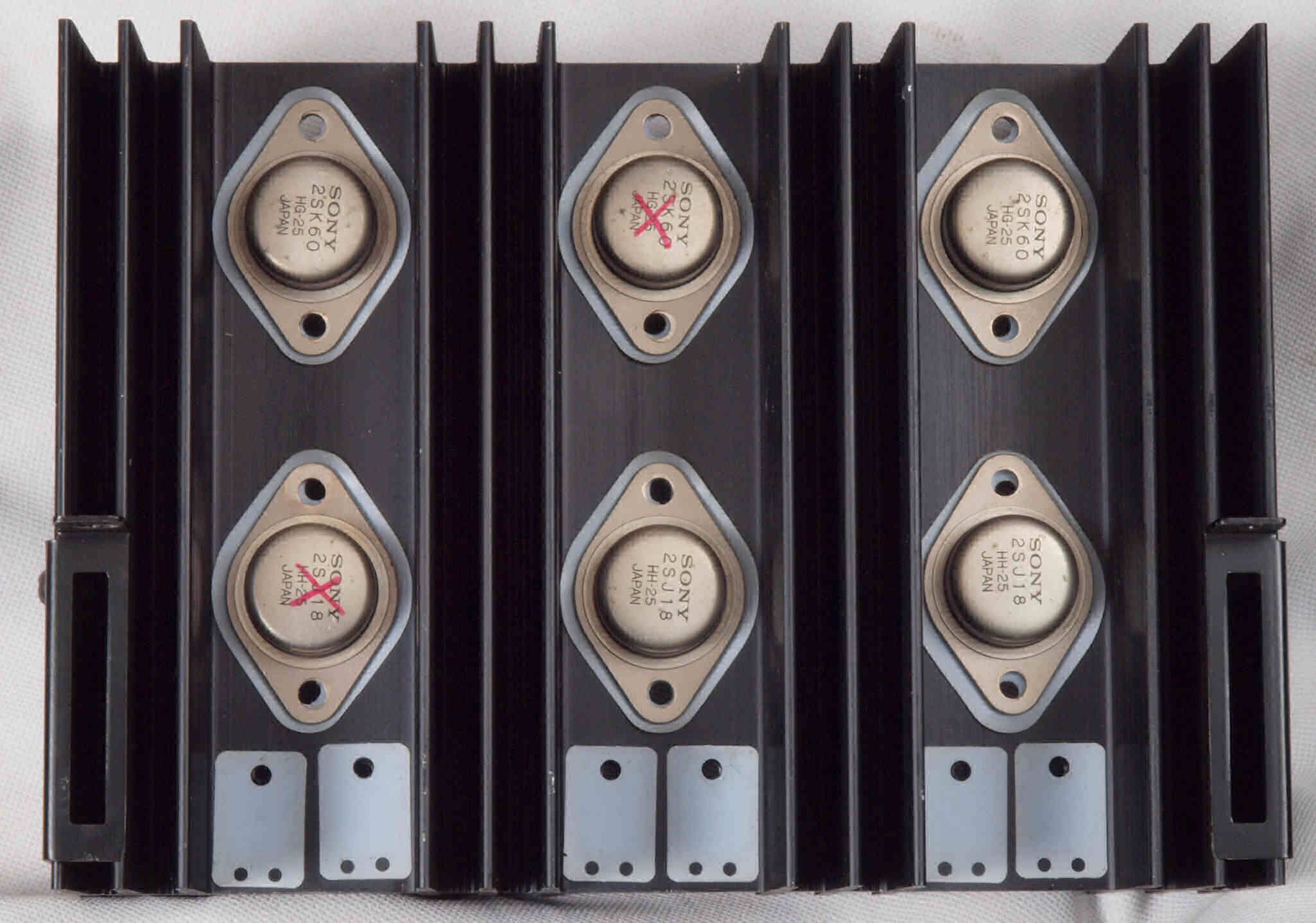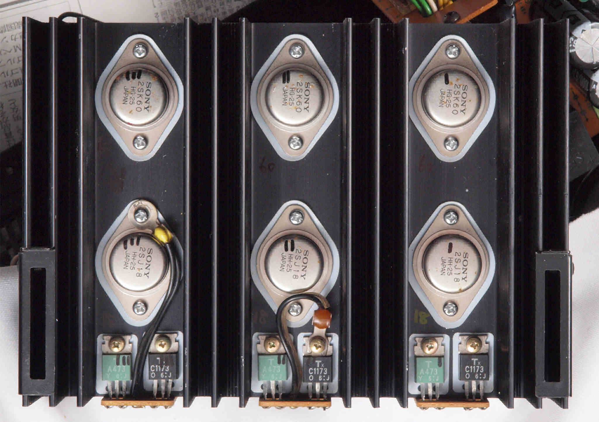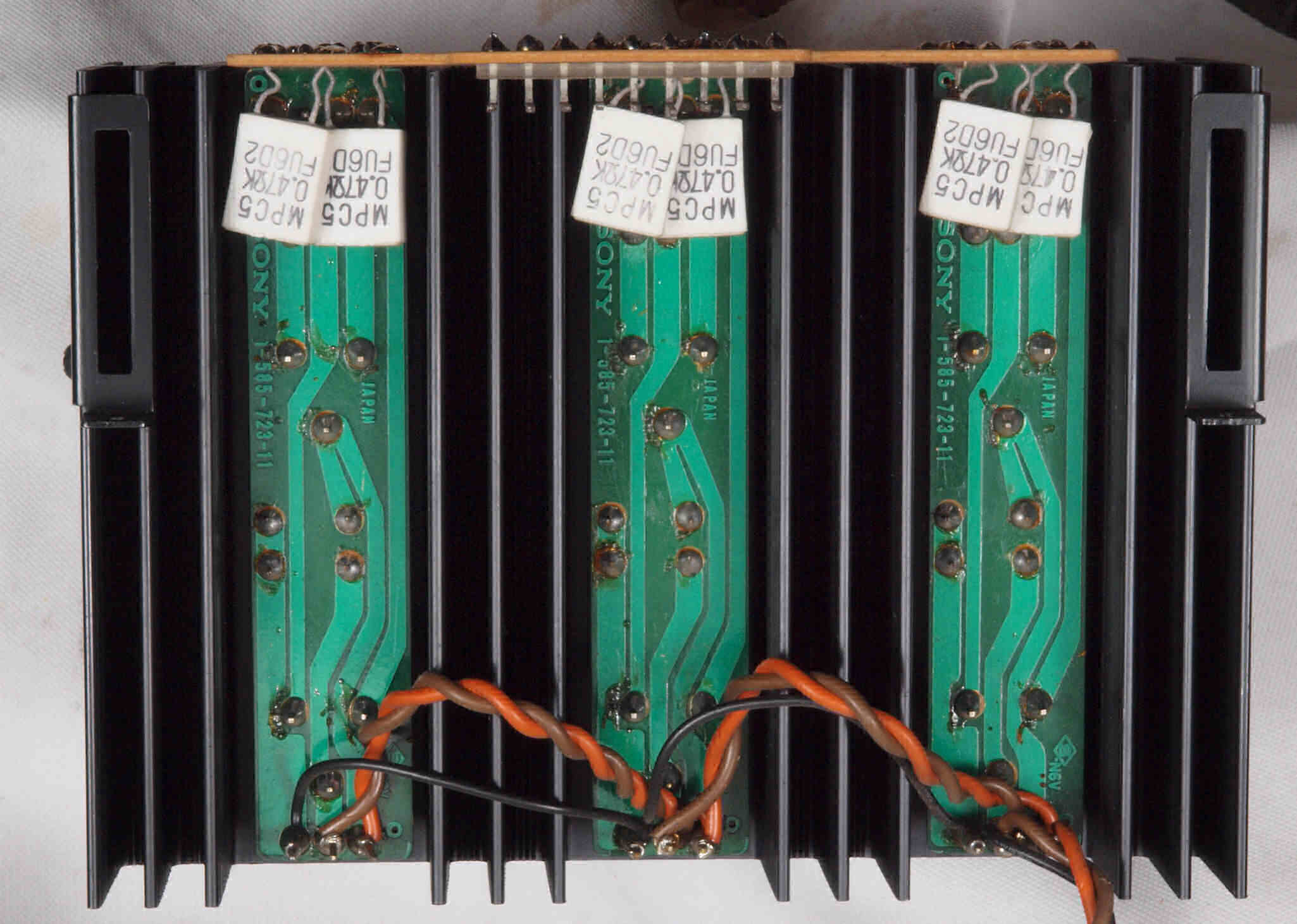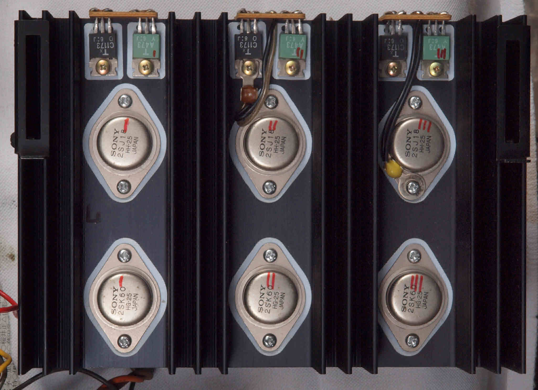 | C42. 修理後 L側終段V-FET(縦型電解効果トランジスター)ブロック。 4台目から全て移動する。 | ||||||||||||||||||||||||||||||||||