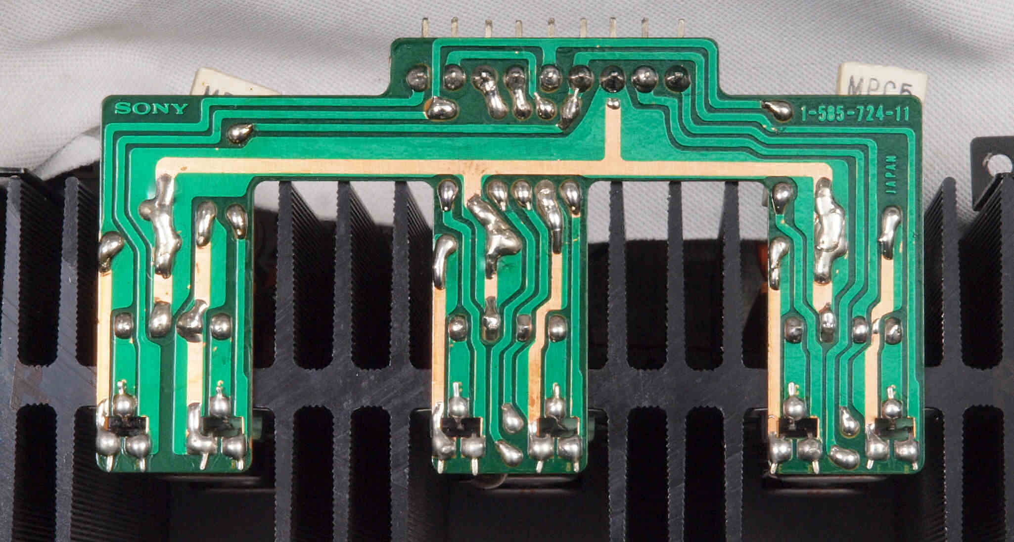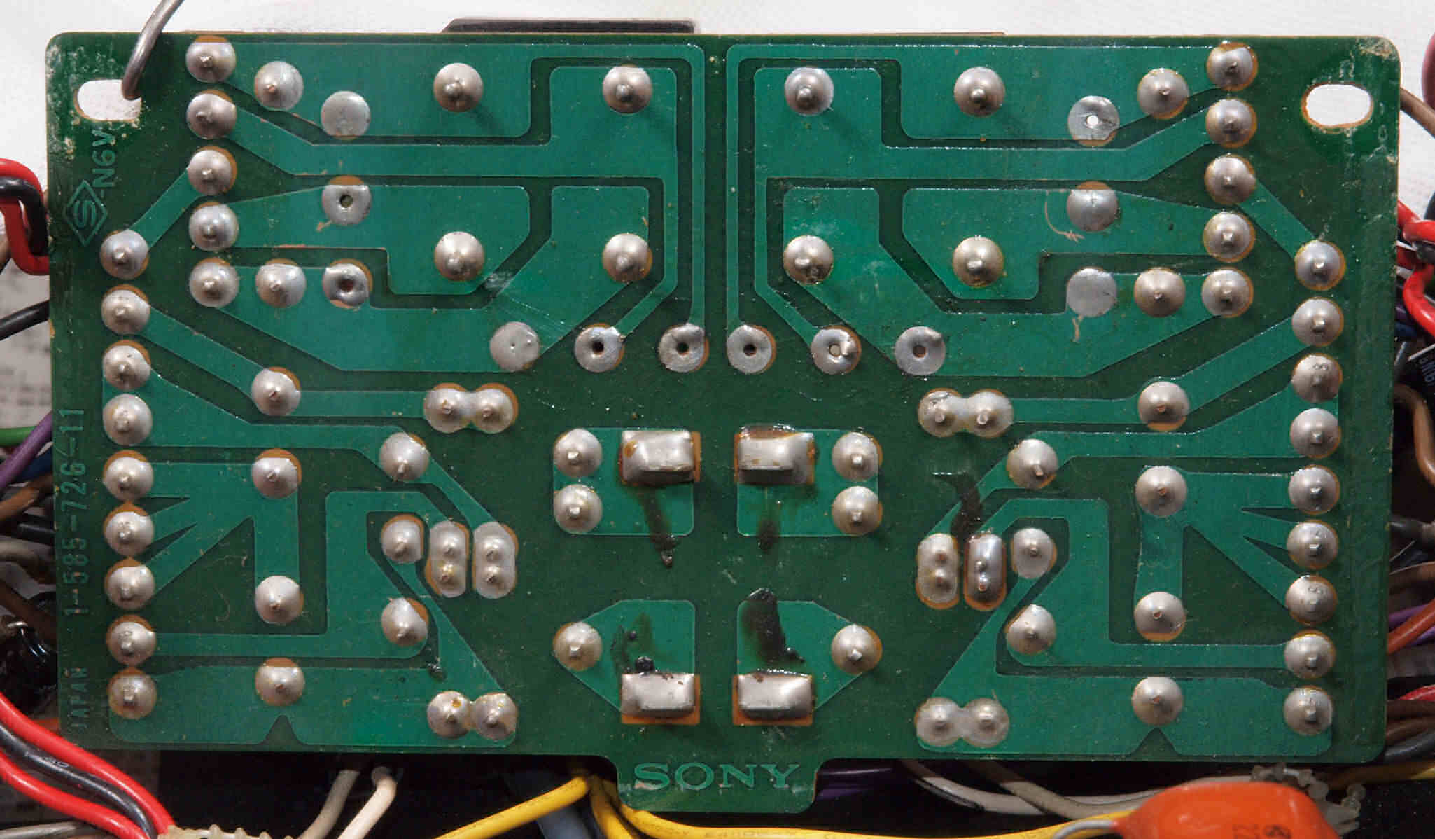 | C25. 修理中 R側終段V-FET(縦型電解効果トランジスター)基板裏。 | ||||||||||||||||||||||||||||||||||