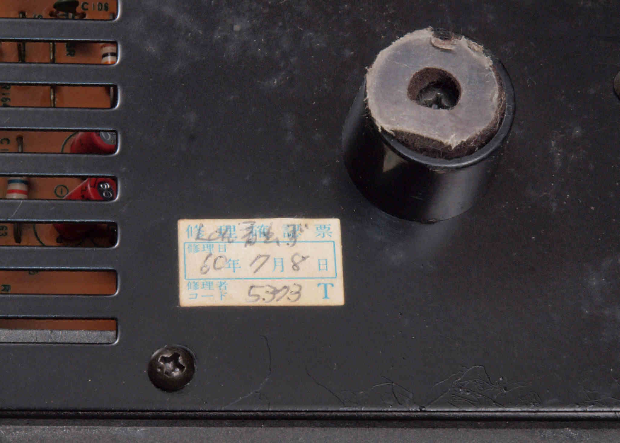 | A26. 点検中 下から見る。 L側音出ずの修理票、1985/7/8. | ||||||||||||||||||||||||||||||||||
