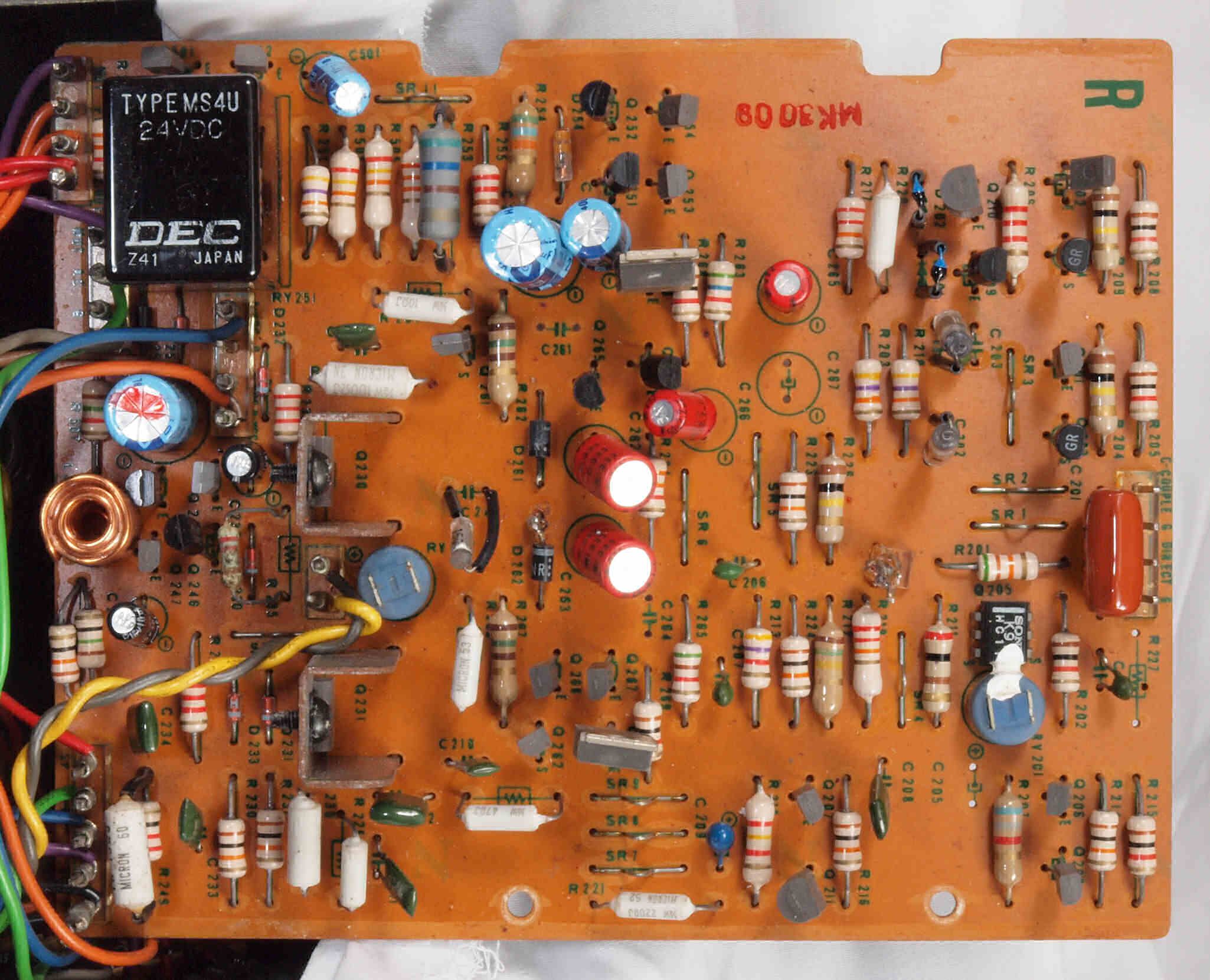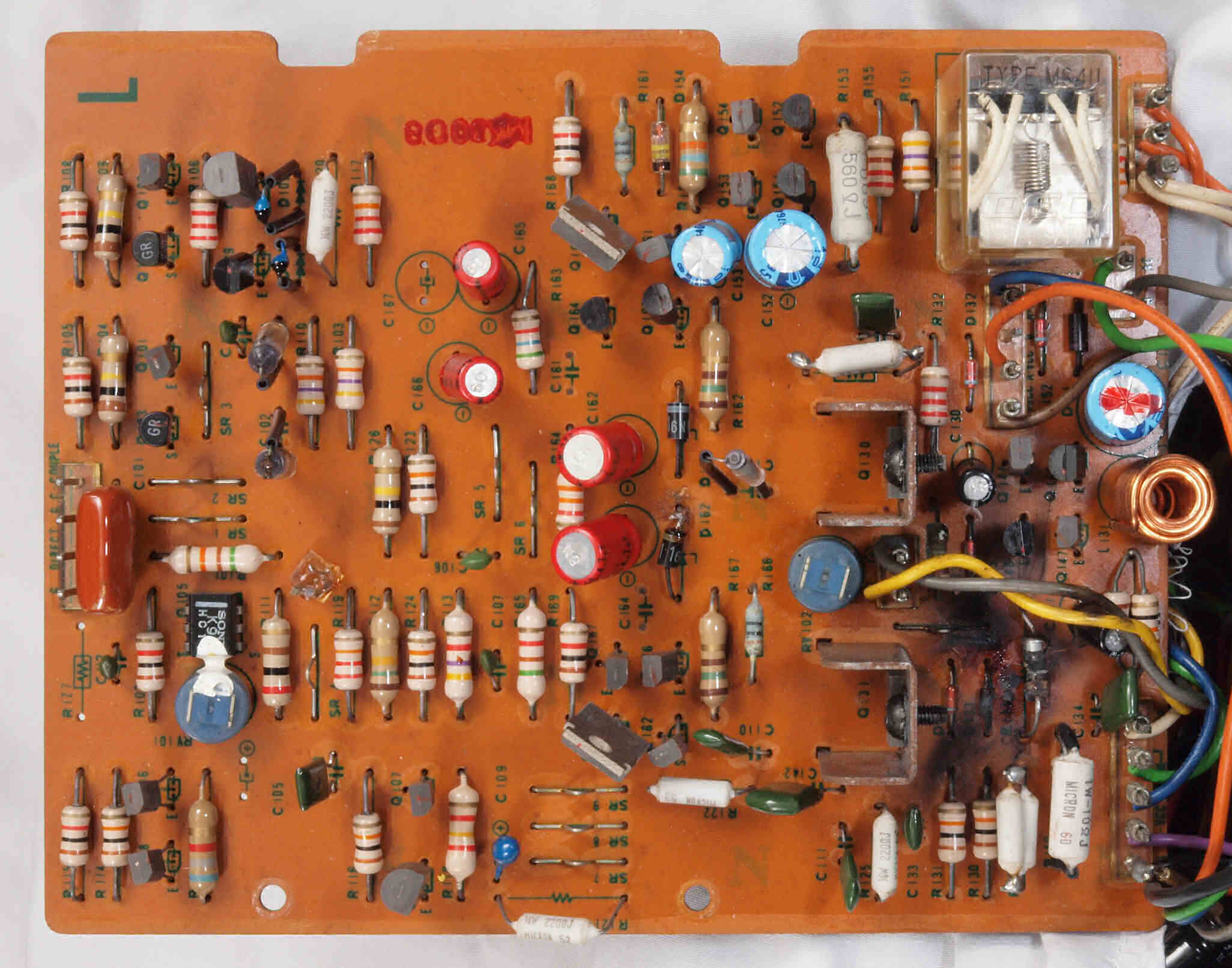A31. 点検 R側アンプ基板。 ヒューズ入り抵抗断線多数。