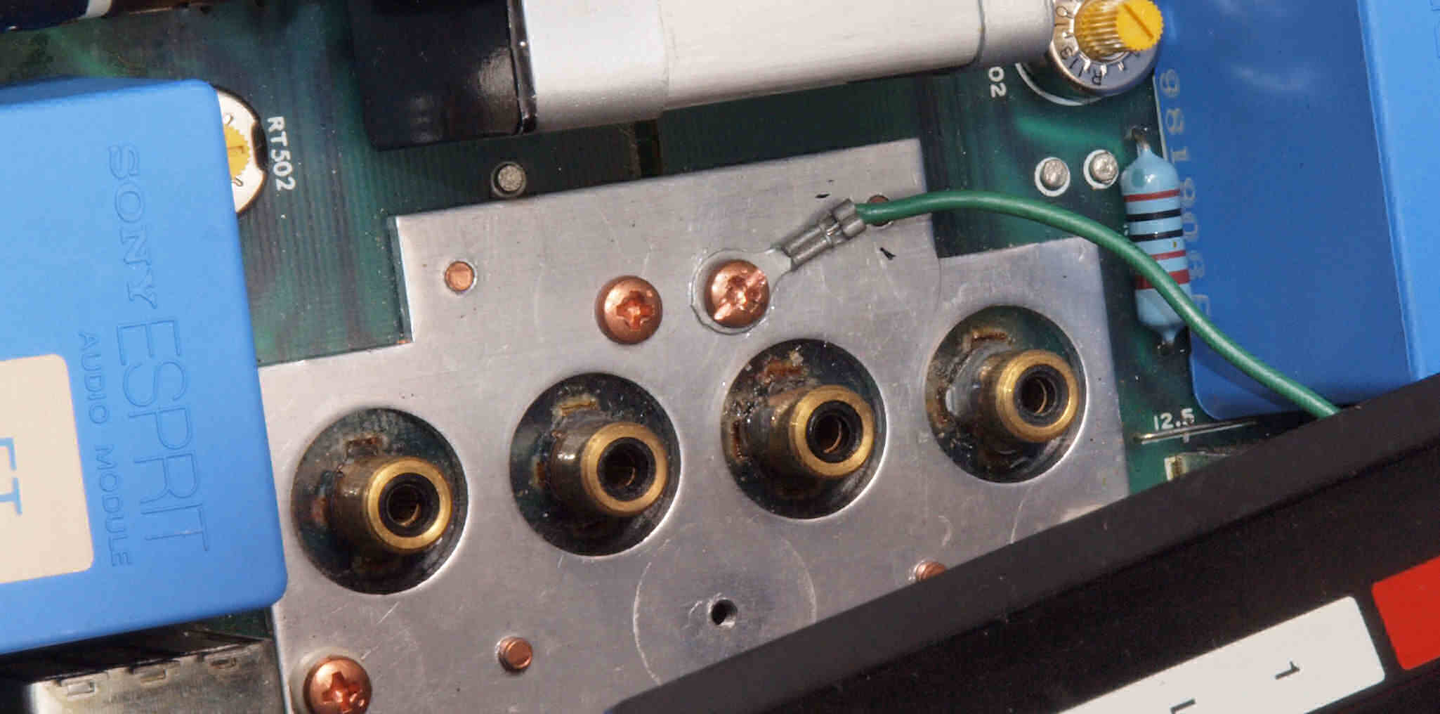 A16. 点検中 上から見る、入出力RCA端子郡。