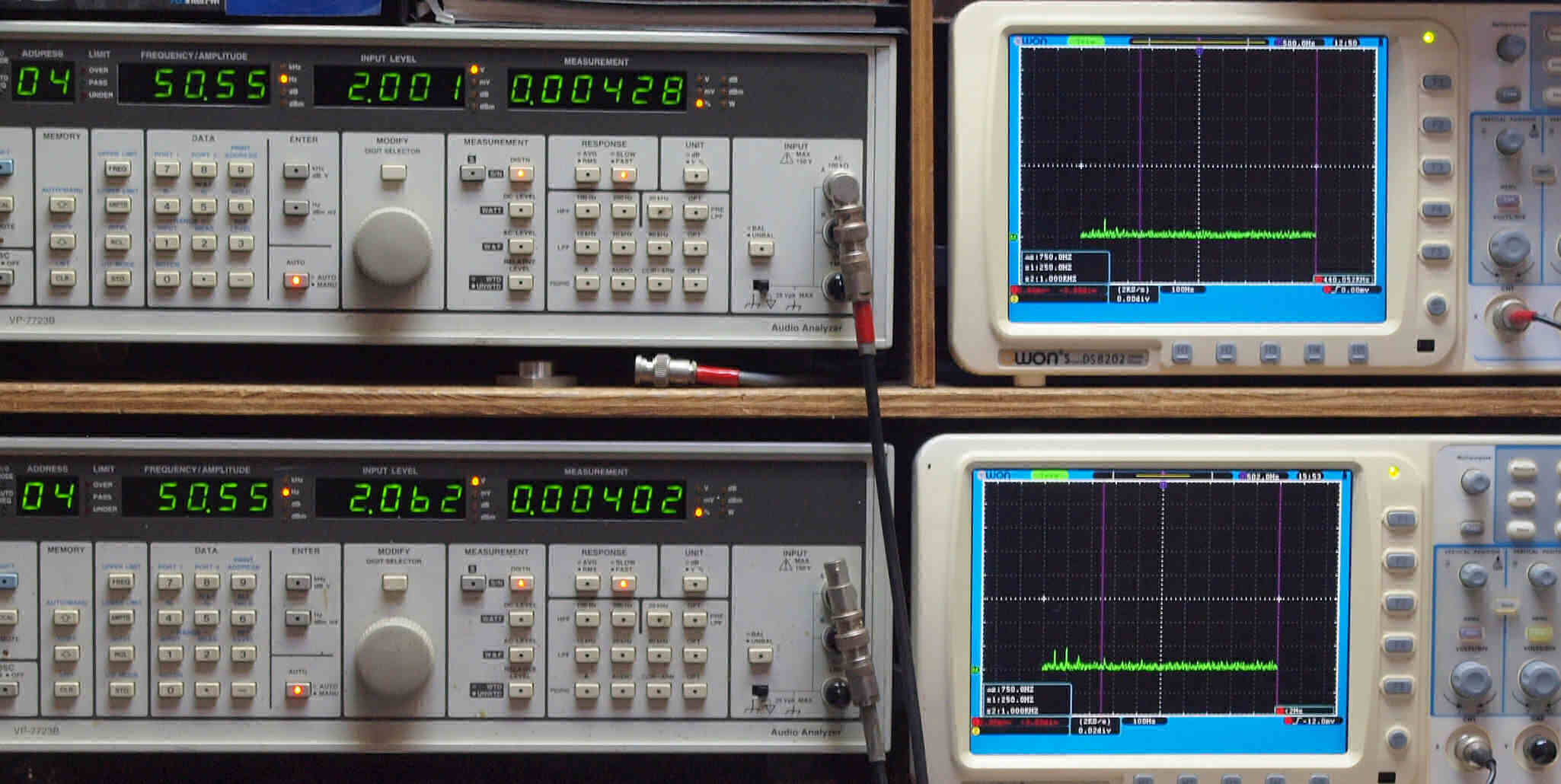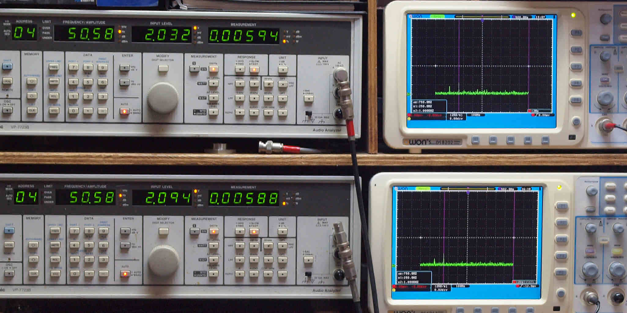E21. MM 50Hz入力、R側出力電圧=2V、 0.00594%歪み。
