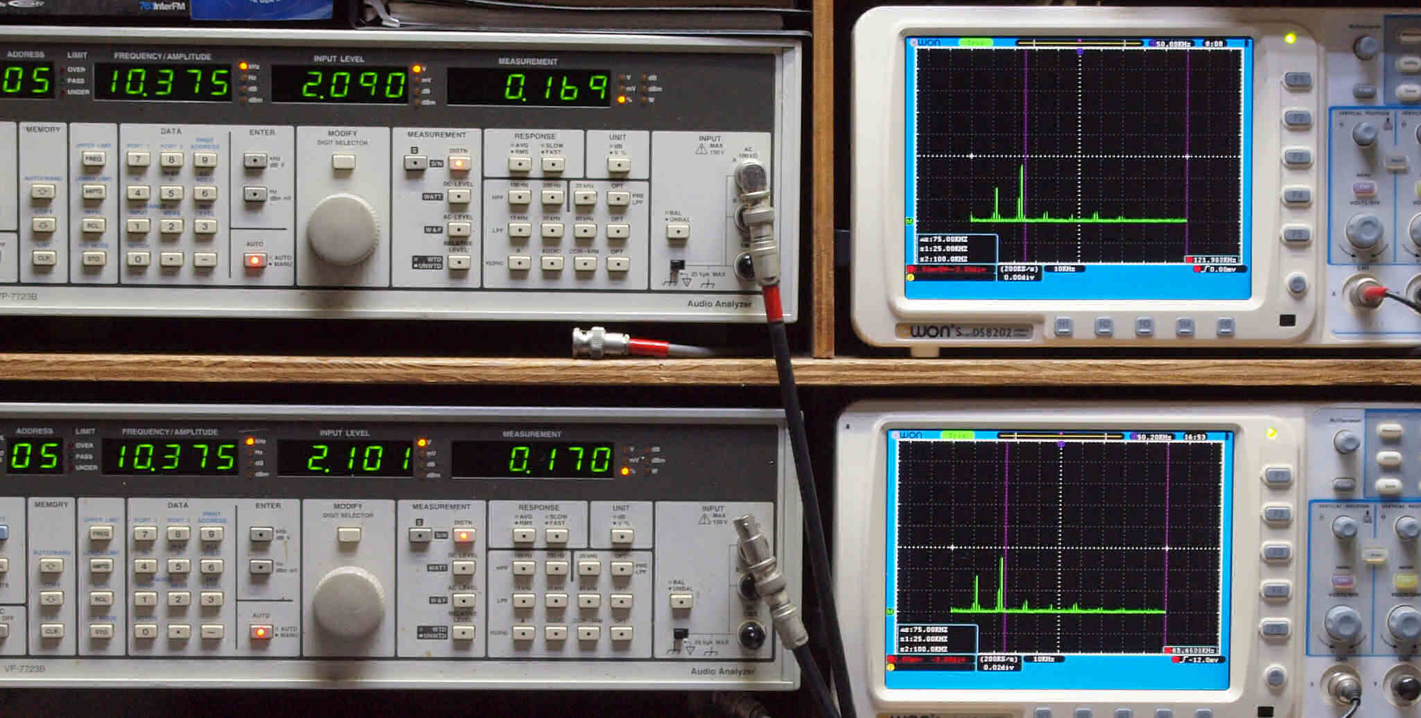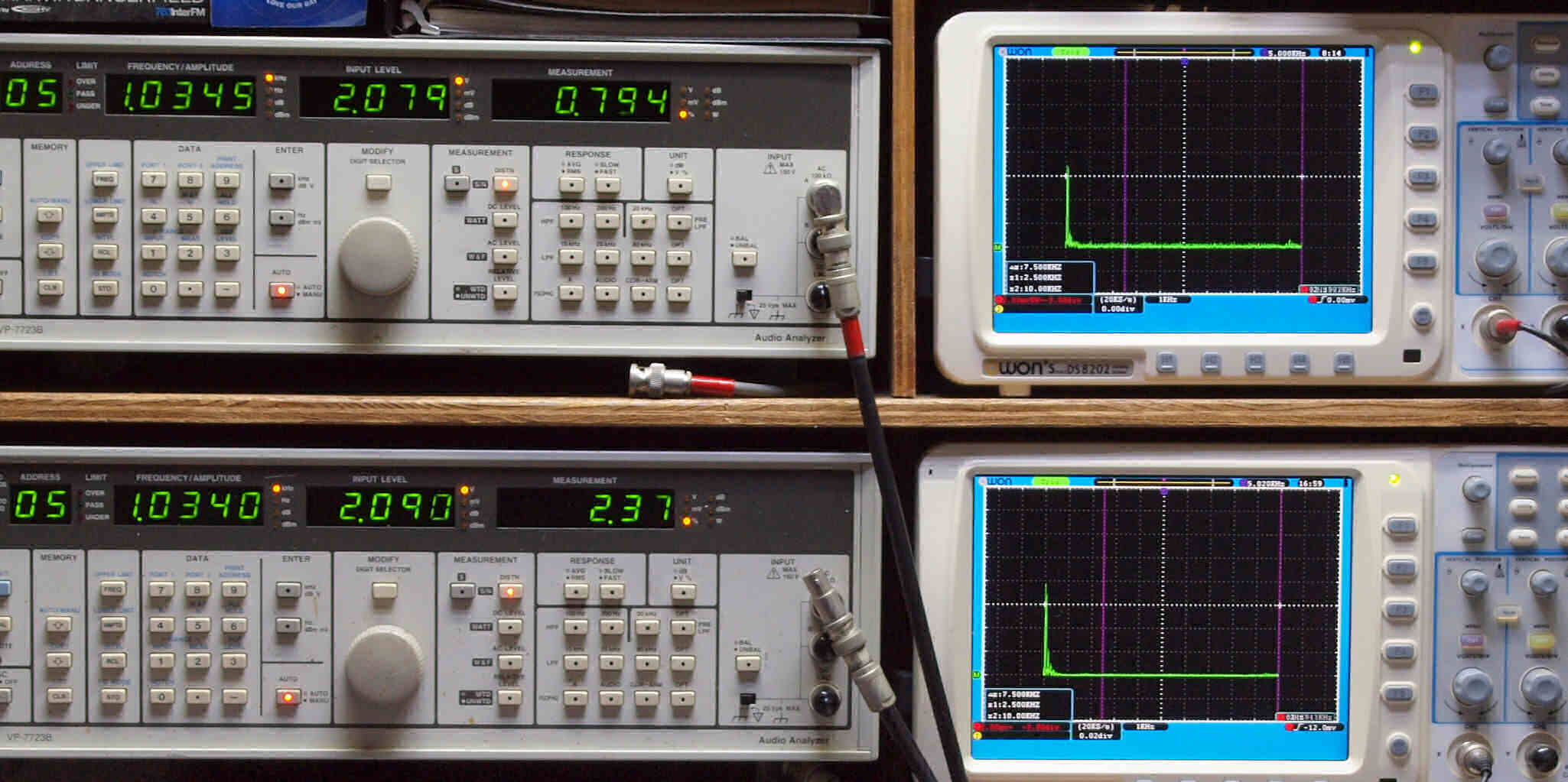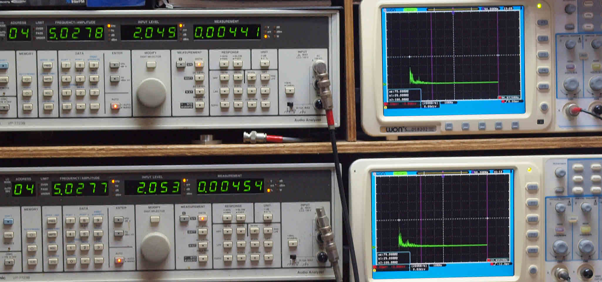 よって、ダイアル設定出力レベルより低くなります。測定機器の仕様や整備の様子はこちら、「VP−7723B」「VP−7201A」。 FFT画面の見方はこちら。