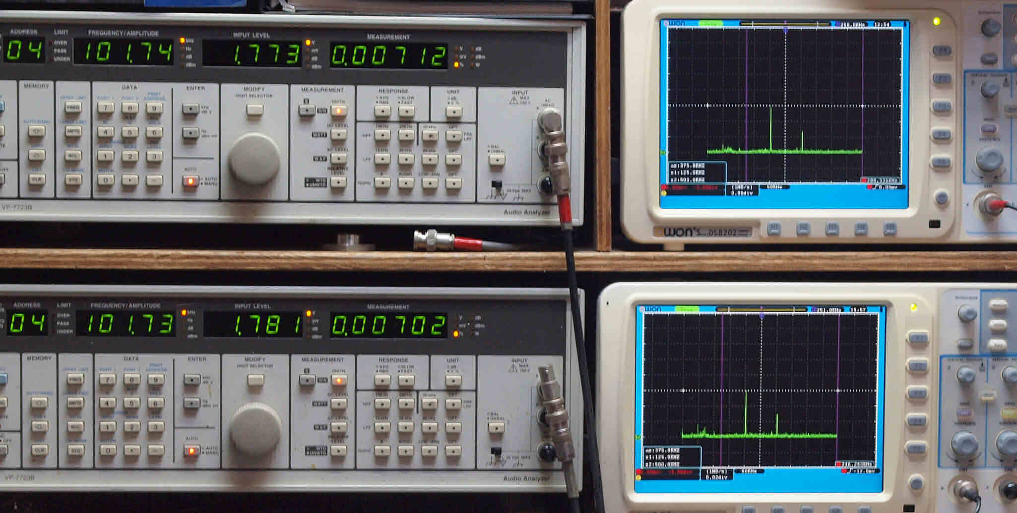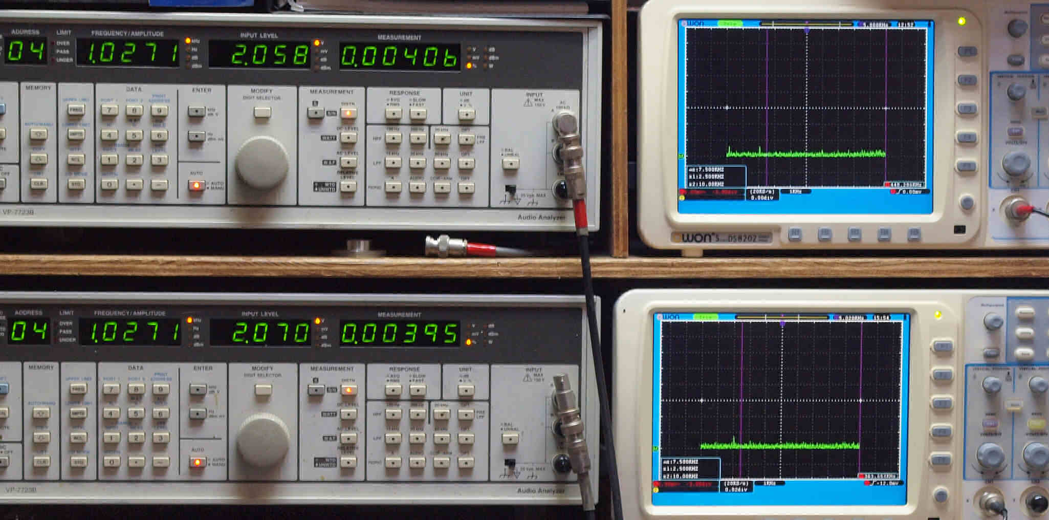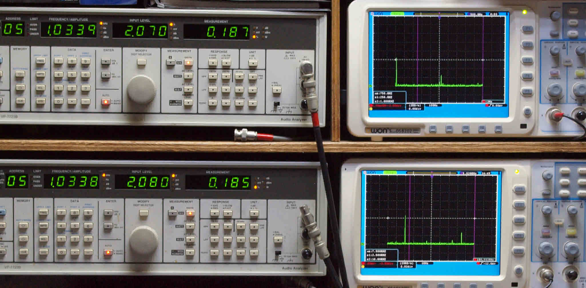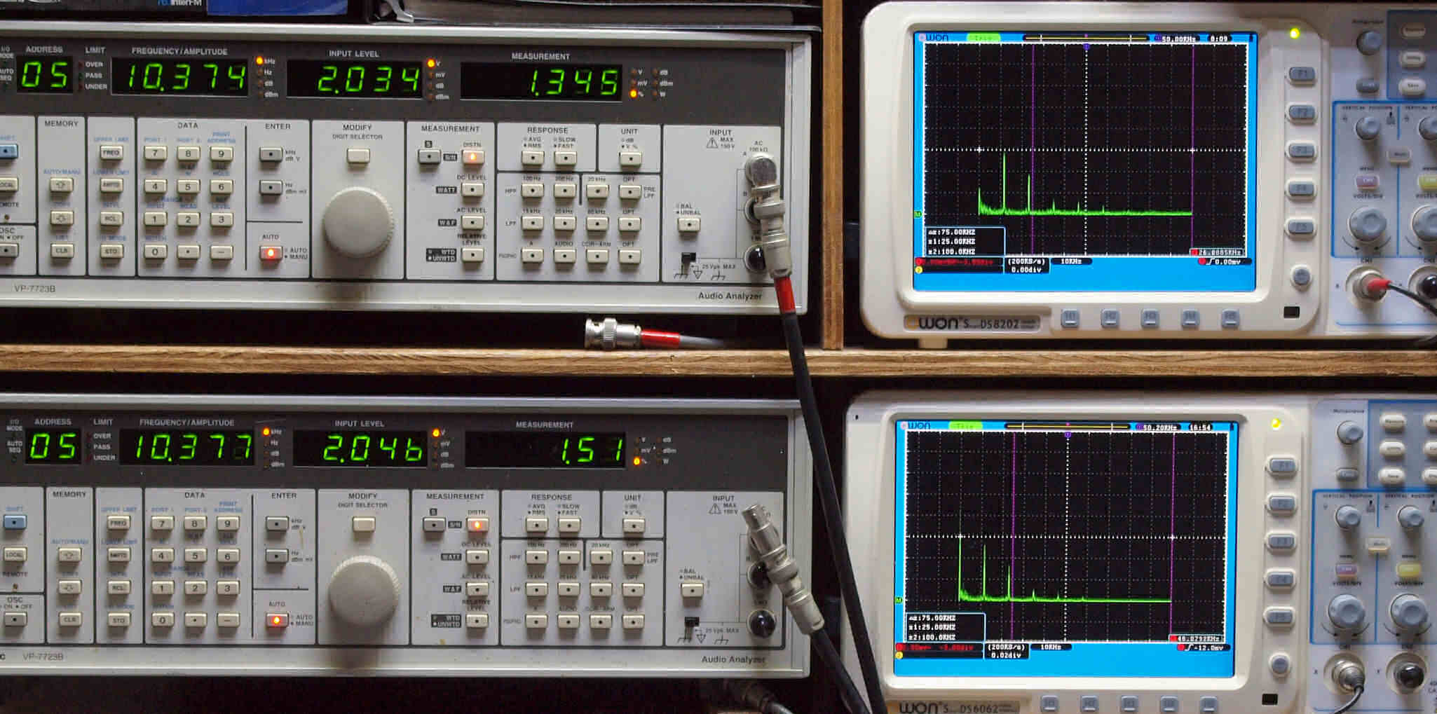 よって、ダイアル設定出力レベルより低くなります。測定機器の仕様や整備の様子はこちら、「VP−7723B」「VP−7201A」。 FFT画面の見方はこちら。