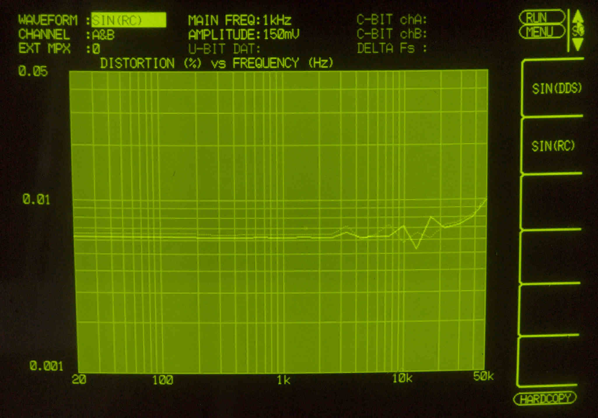 E27. MM 50kHz入力、R側出力電圧=2V、 0.00673%歪み。