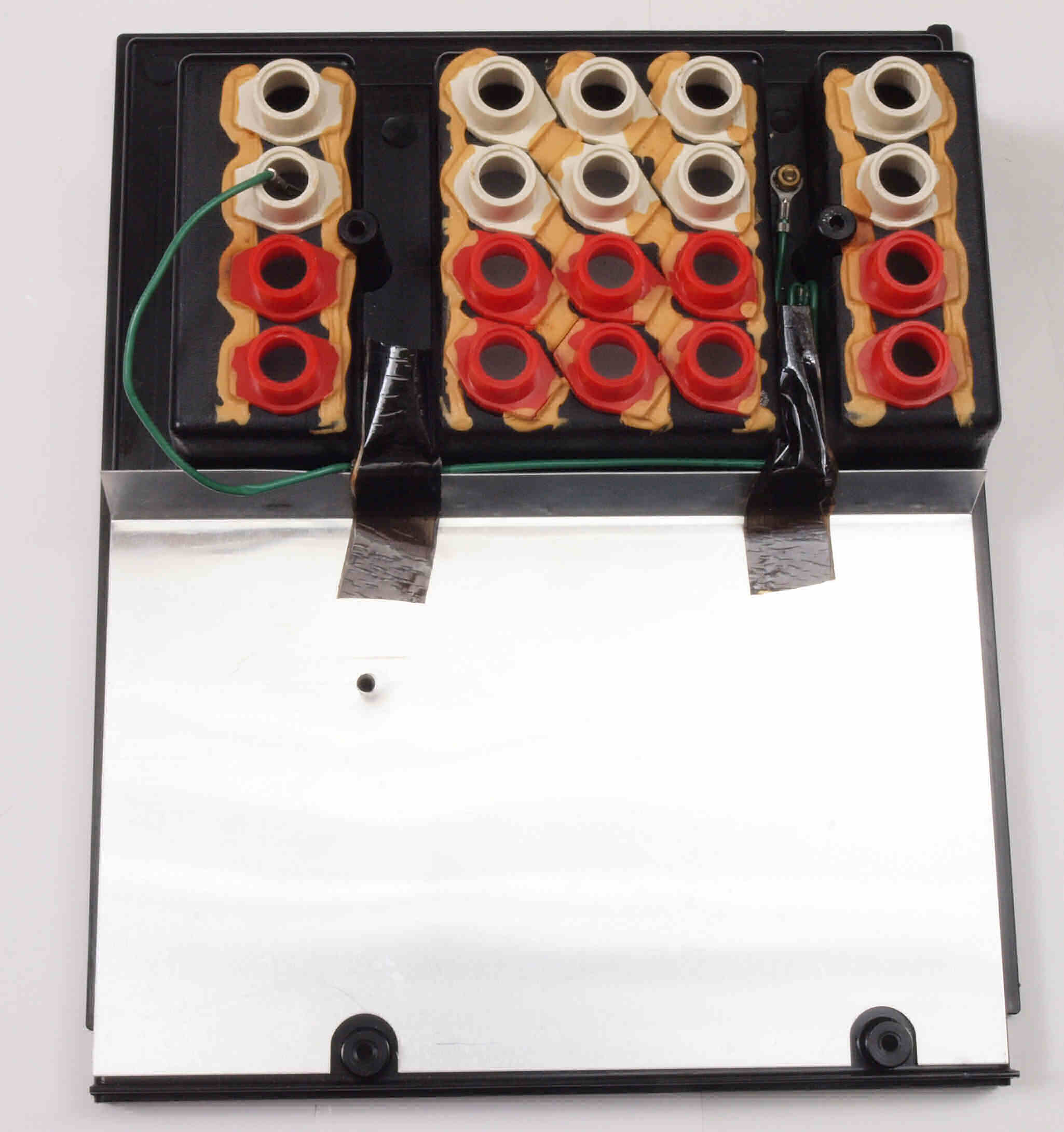 A1A. 点検中 上蓋裏に貼られた鉛テープ。