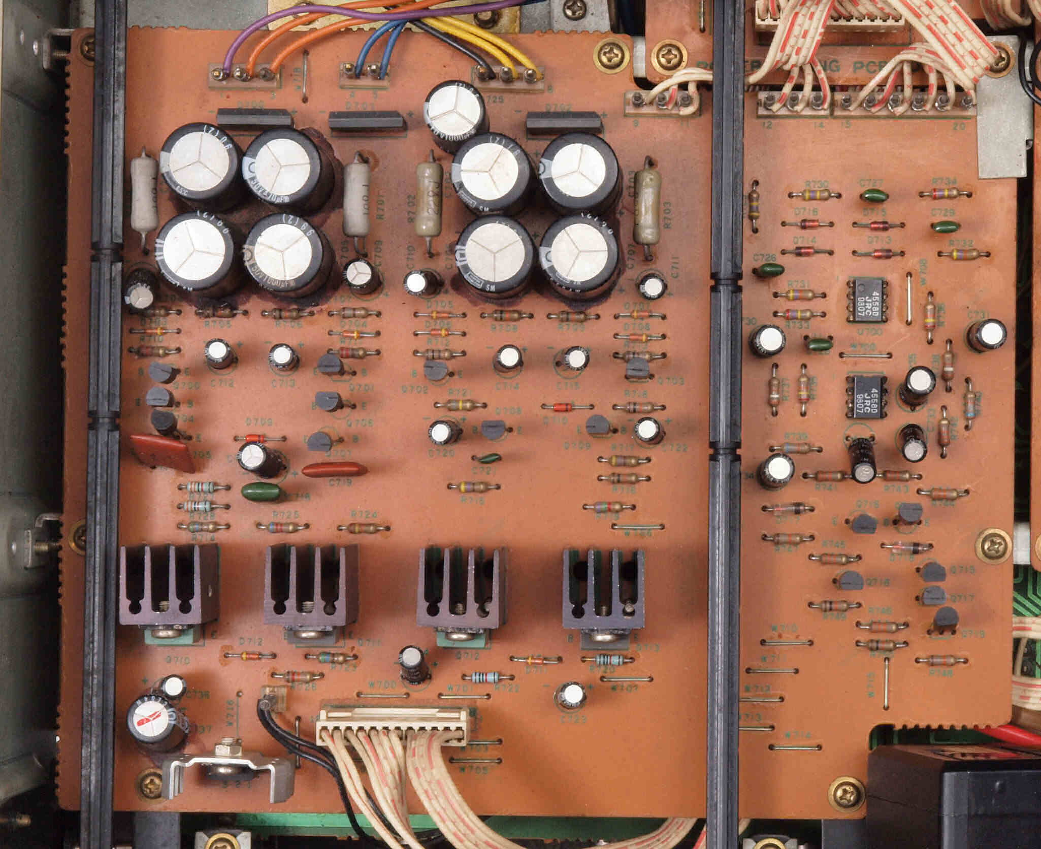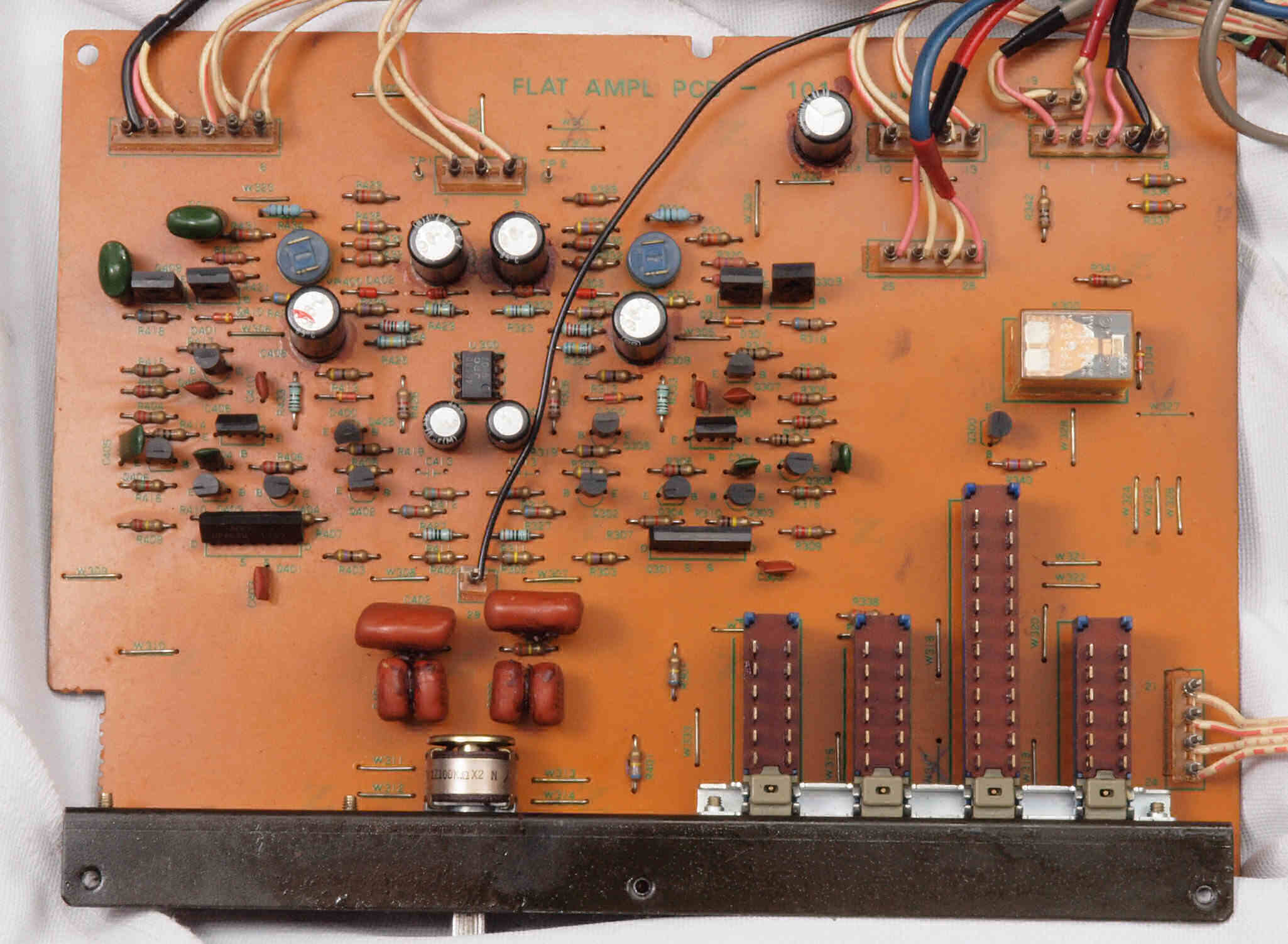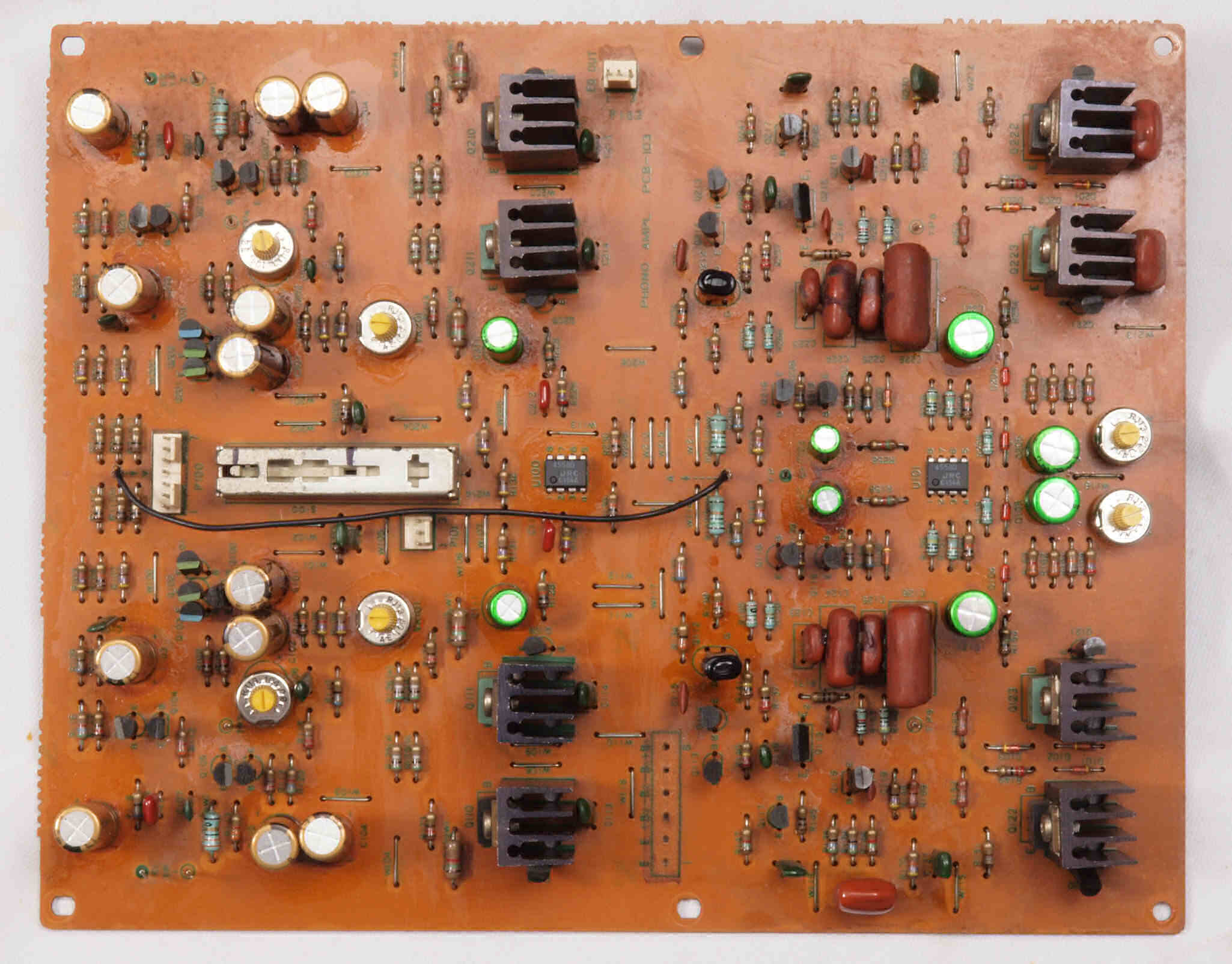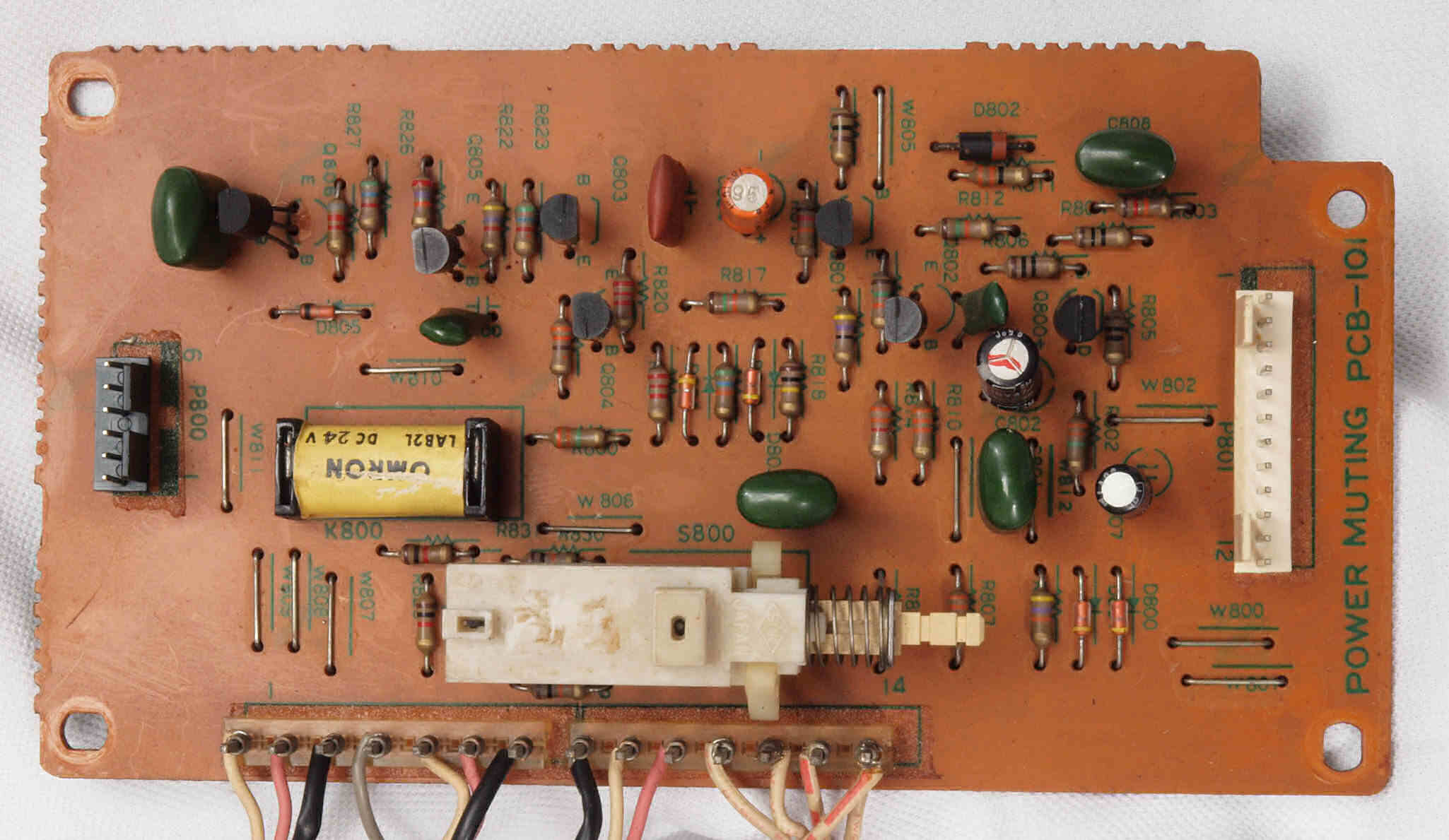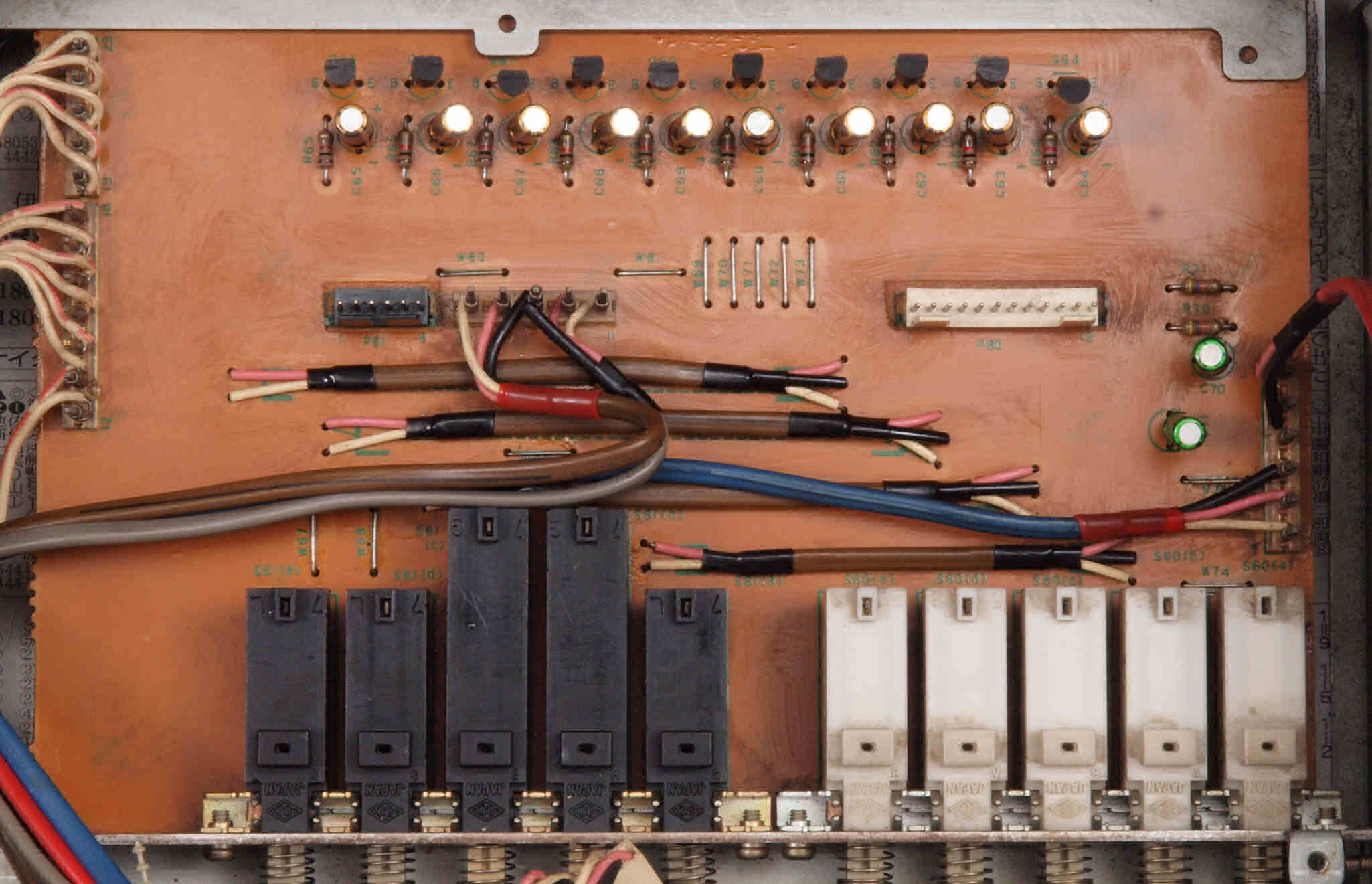 | C82. 修理後 入力選択基板。電解コンデンサー12個交換。 | ||||||||||||||||||||||||||||||||||||||||