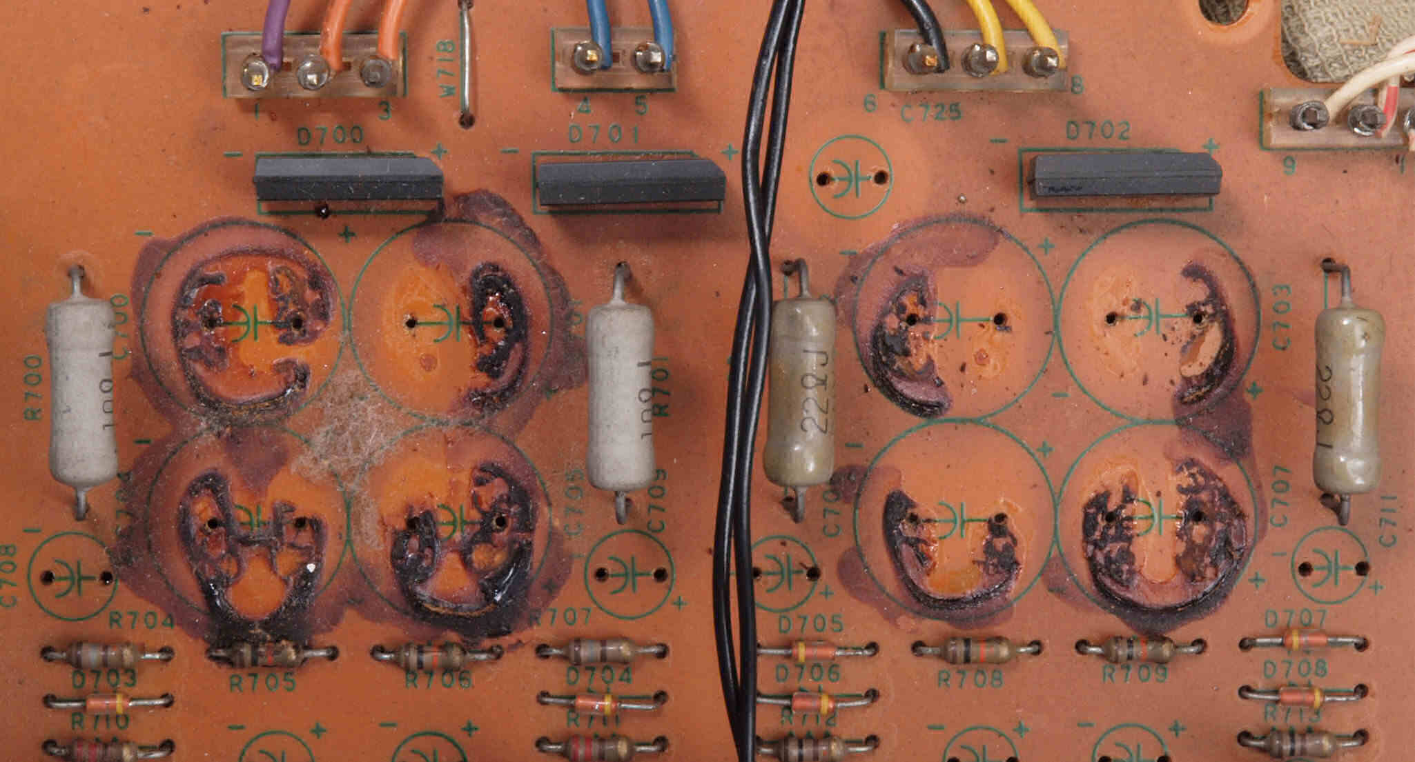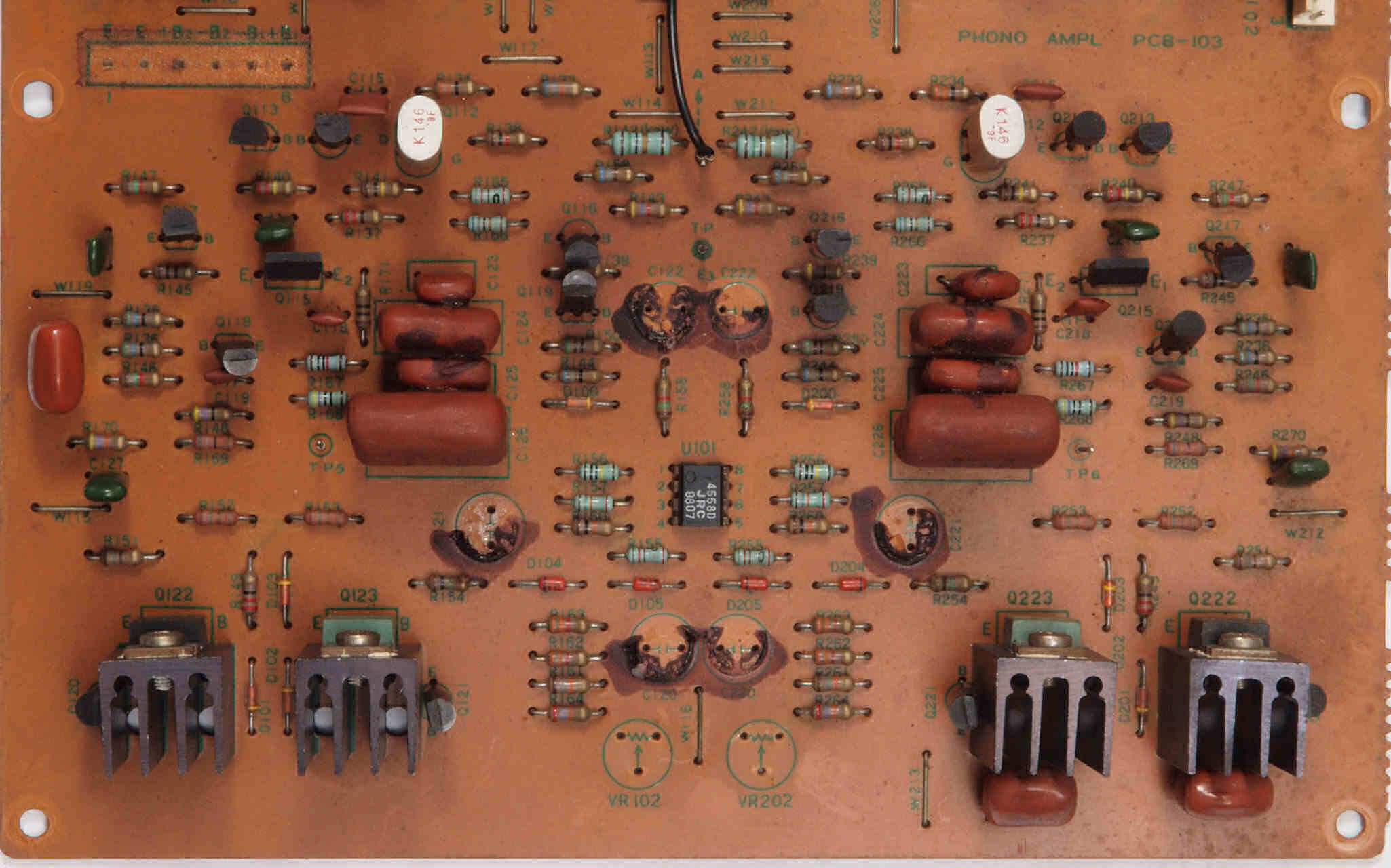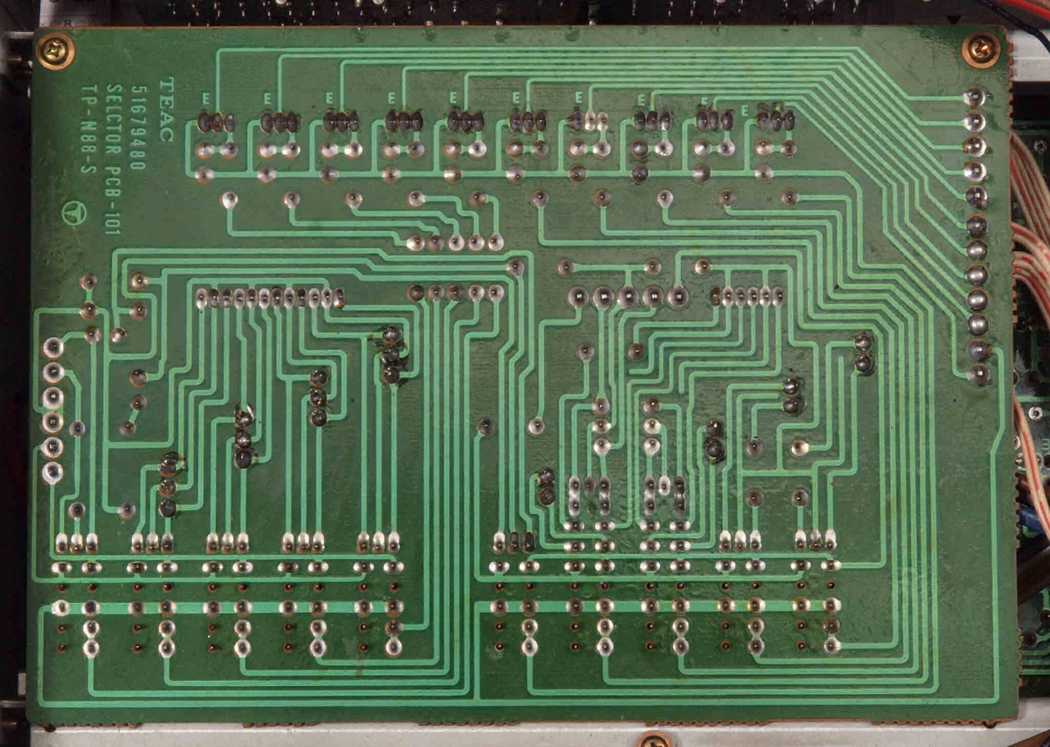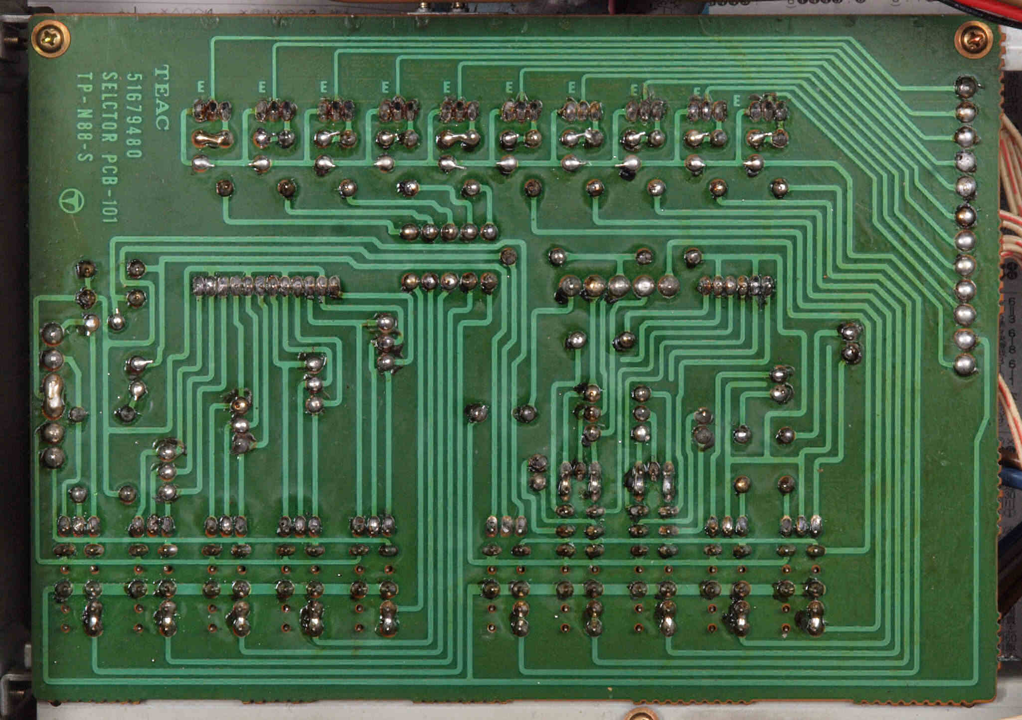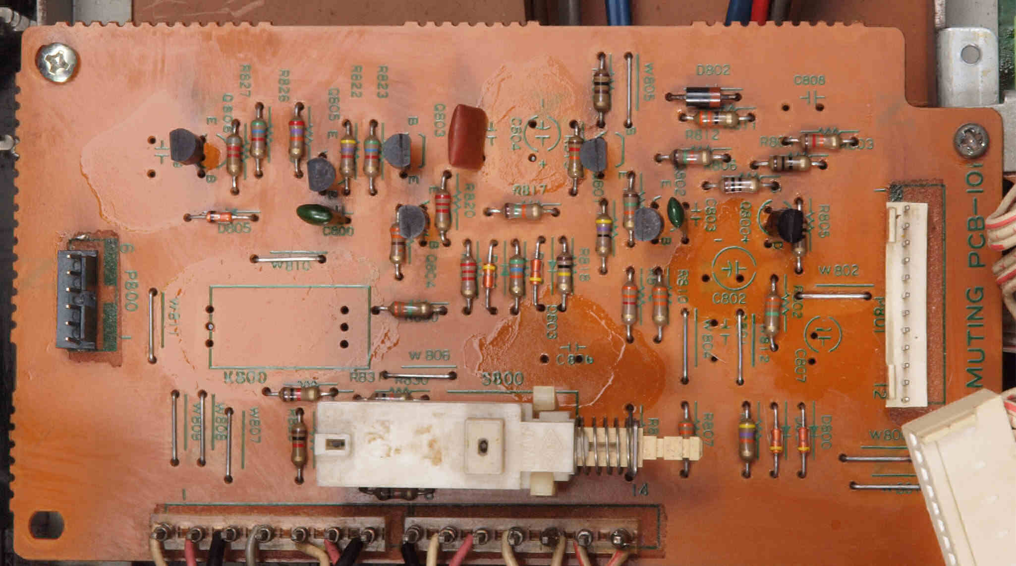 | CB2. 修理前 入出力RCA端子基板裏。 | ||||||||||||||||||||||||||||||||||||||||