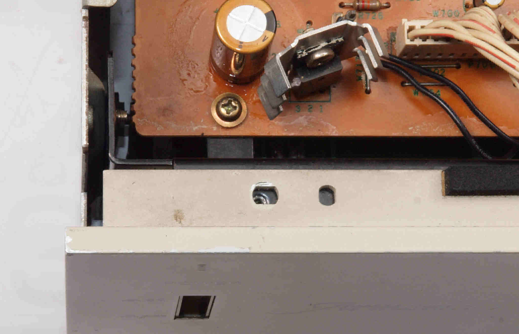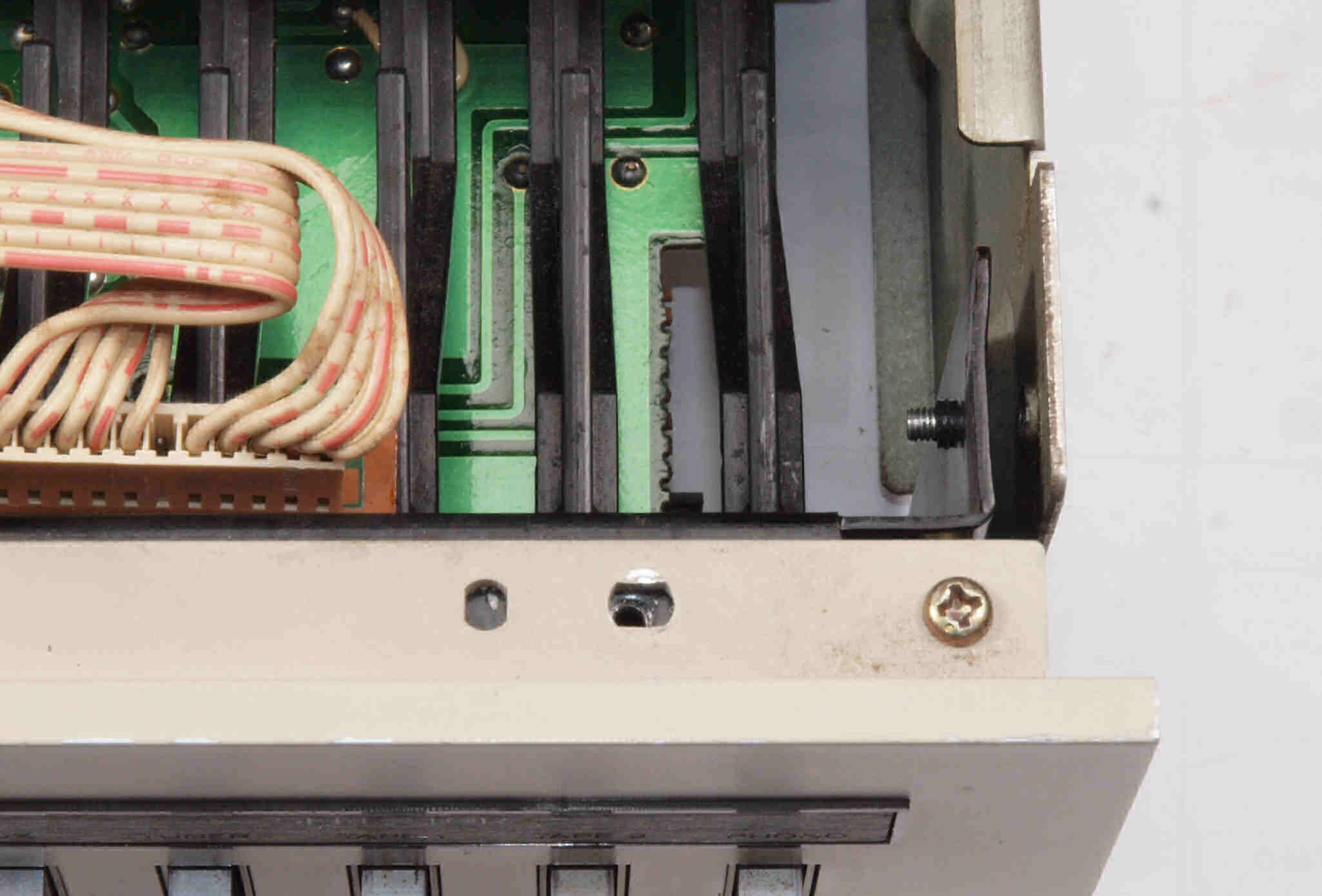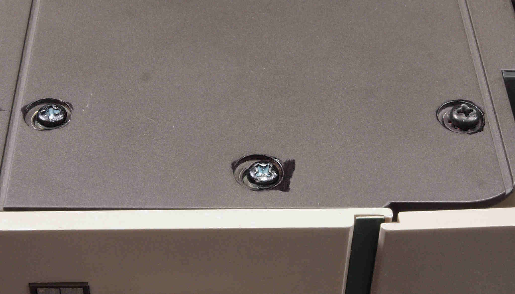 | CD5. 修理前 左横パネル止めビス。ラック・マウント・アングルを取り外した時、紛失したのでしょう? | ||||||||||||||||||||||||||||||||||||||||