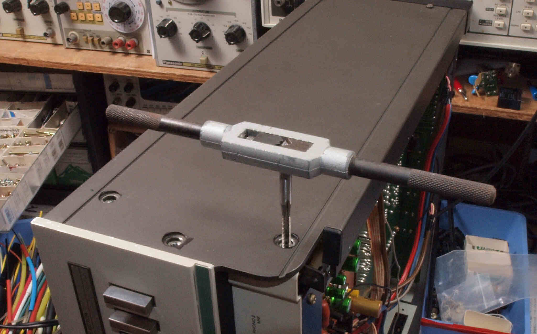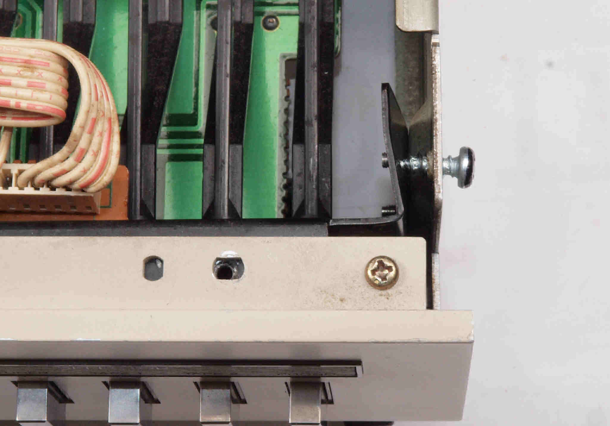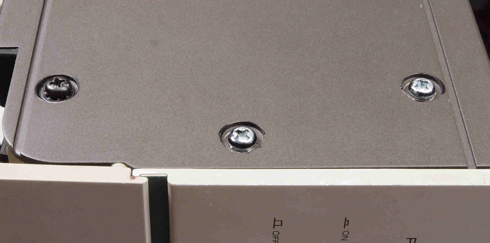 | CD5. 修理前 左横パネル止めビス。ラック・マウント・アングルを取り外した時、紛失したのでしょう? | ||||||||||||||||||||||||||||||||||||||||