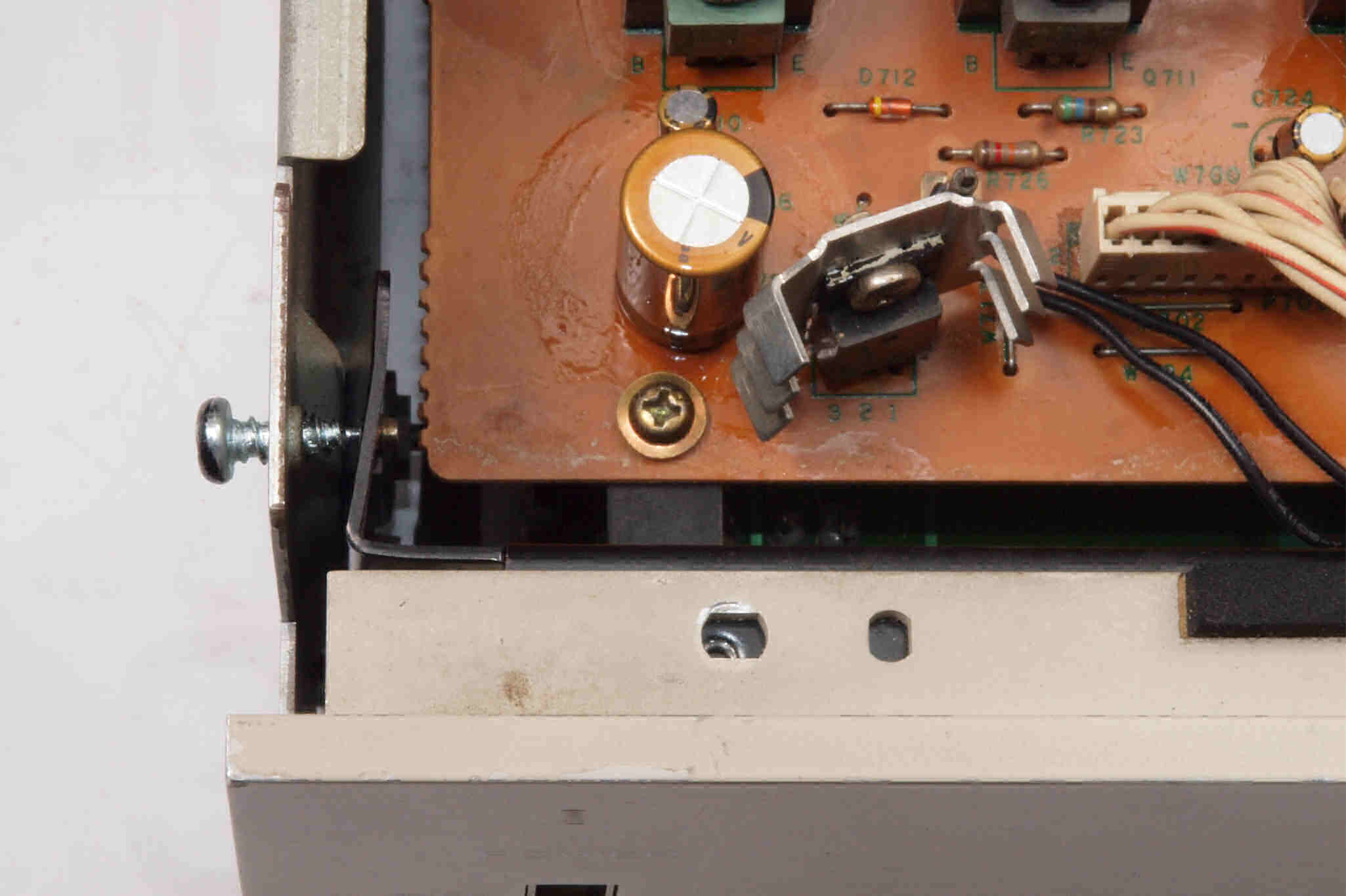 | CD6. 修理中 左横パネル止めビス。 ビスが長過ぎてシャシを押し曲げている。 | ||||||||||||||||||||||||||||||||||||||||