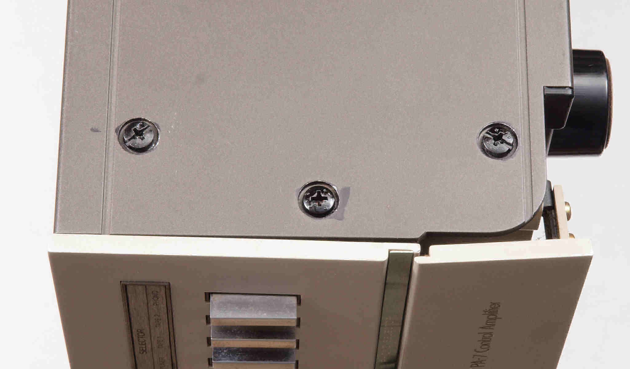 | CD1. 修理前 右横パネル止めビス。ラック・マウント・アングルを取り外した時、紛失したのでしょう? | ||||||||||||||||||||||||||||||||||||||||