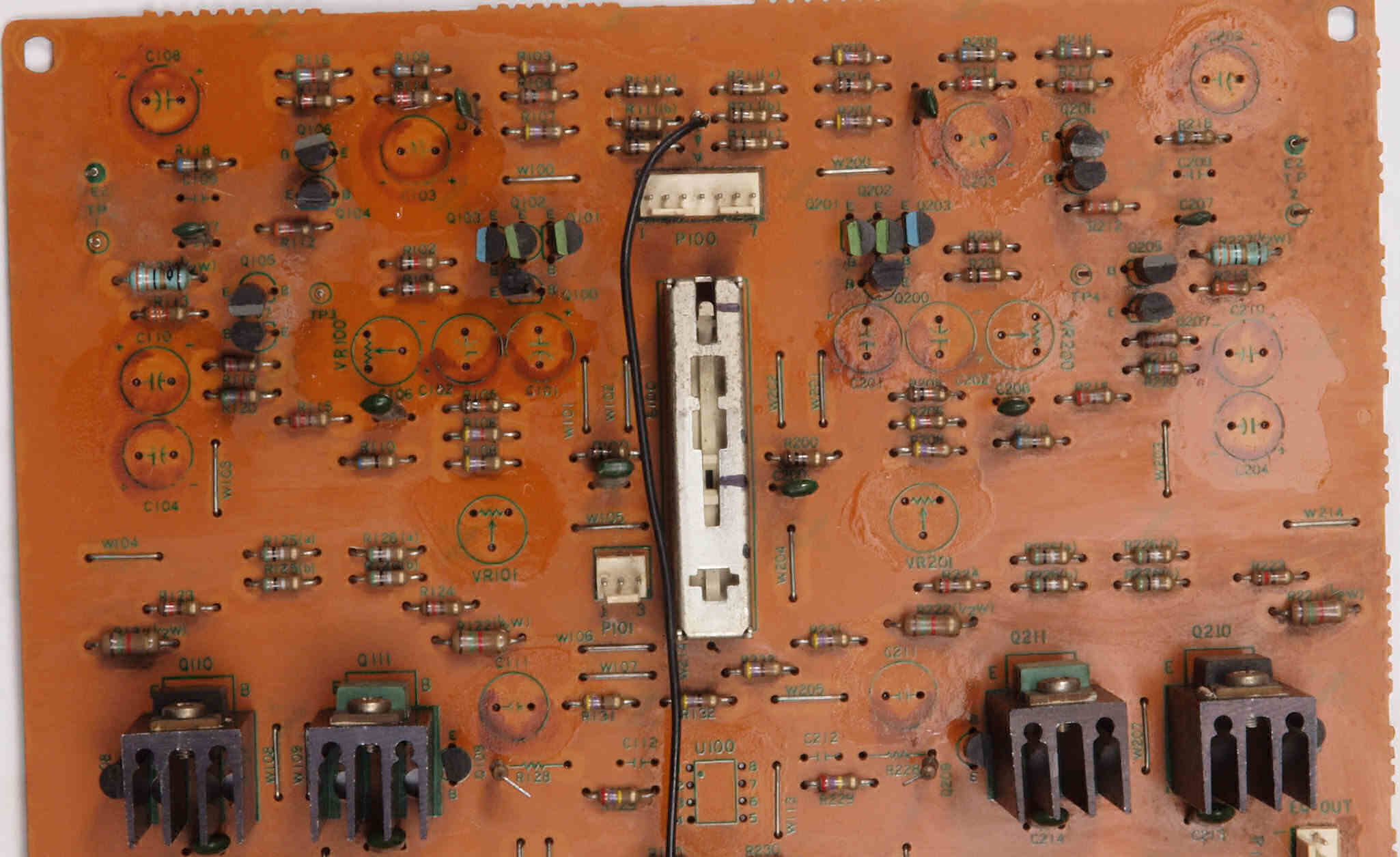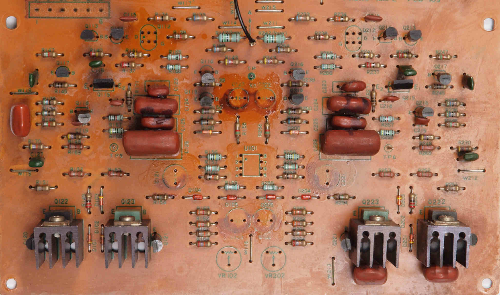 | C213. 修理中 EQ-AMP基板。 トルエン溶媒の接着剤を取り去り、コートを塗布後。 | ||||||||||||||||||||||||||||||||||||||||