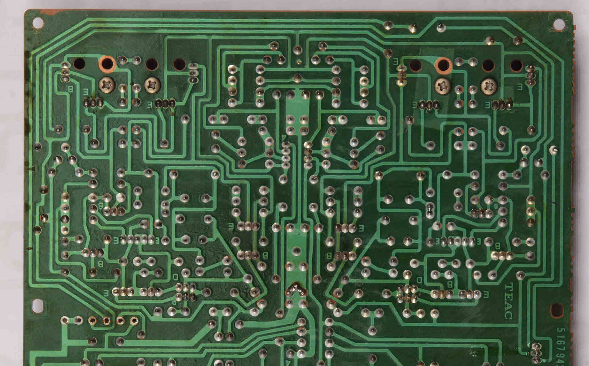 | CB3. 修理(半田補正)後 入出力RCA端子基板裏。 全ての半田をやり修す。 | ||||||||||||||||||||||||||||||||||||||||