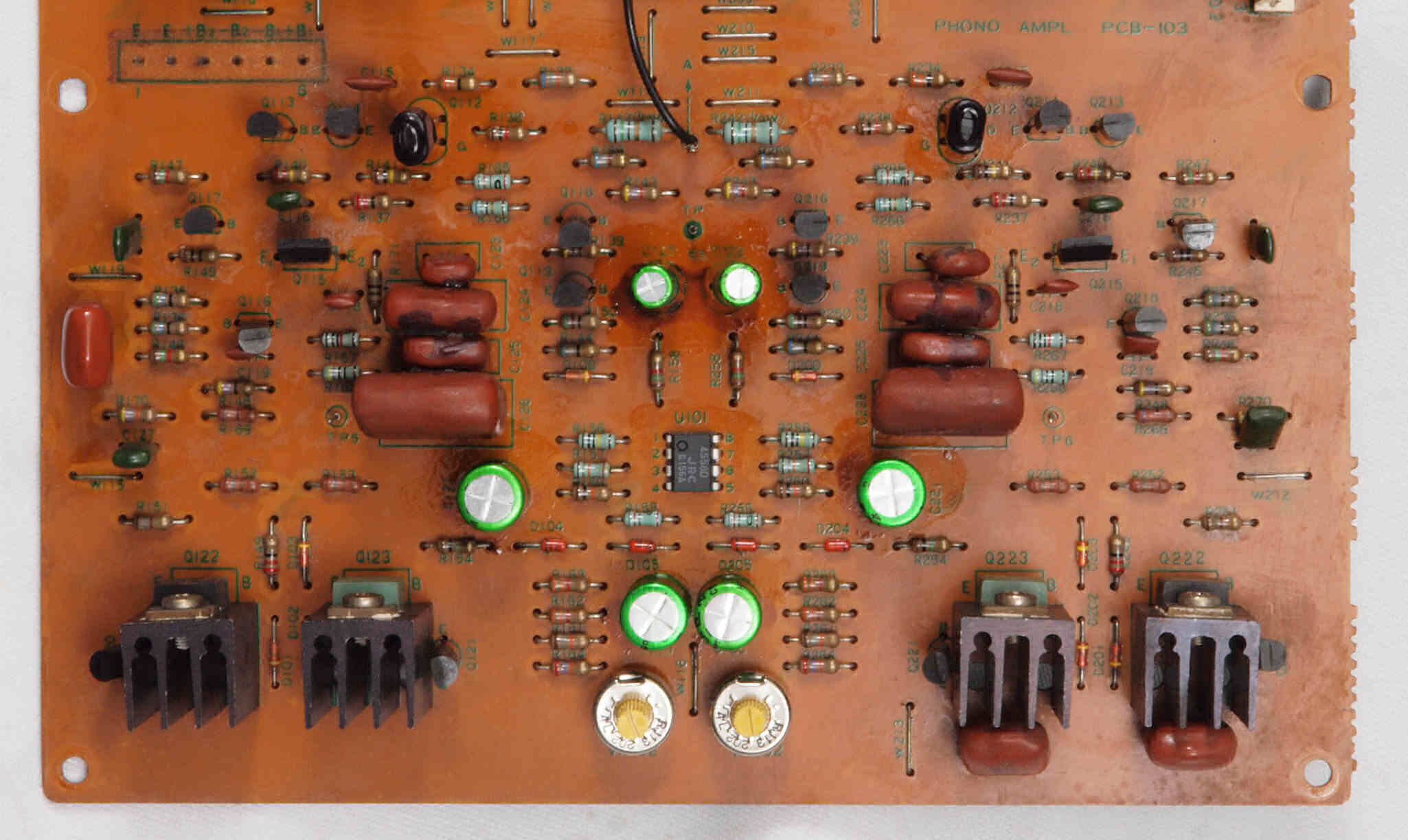| C212. 修理中 EQ-AMP基板。電解コンデンサー固定するトルエン溶媒の接着剤。 | ||||||||||||||||||||||||||||||||||||||||