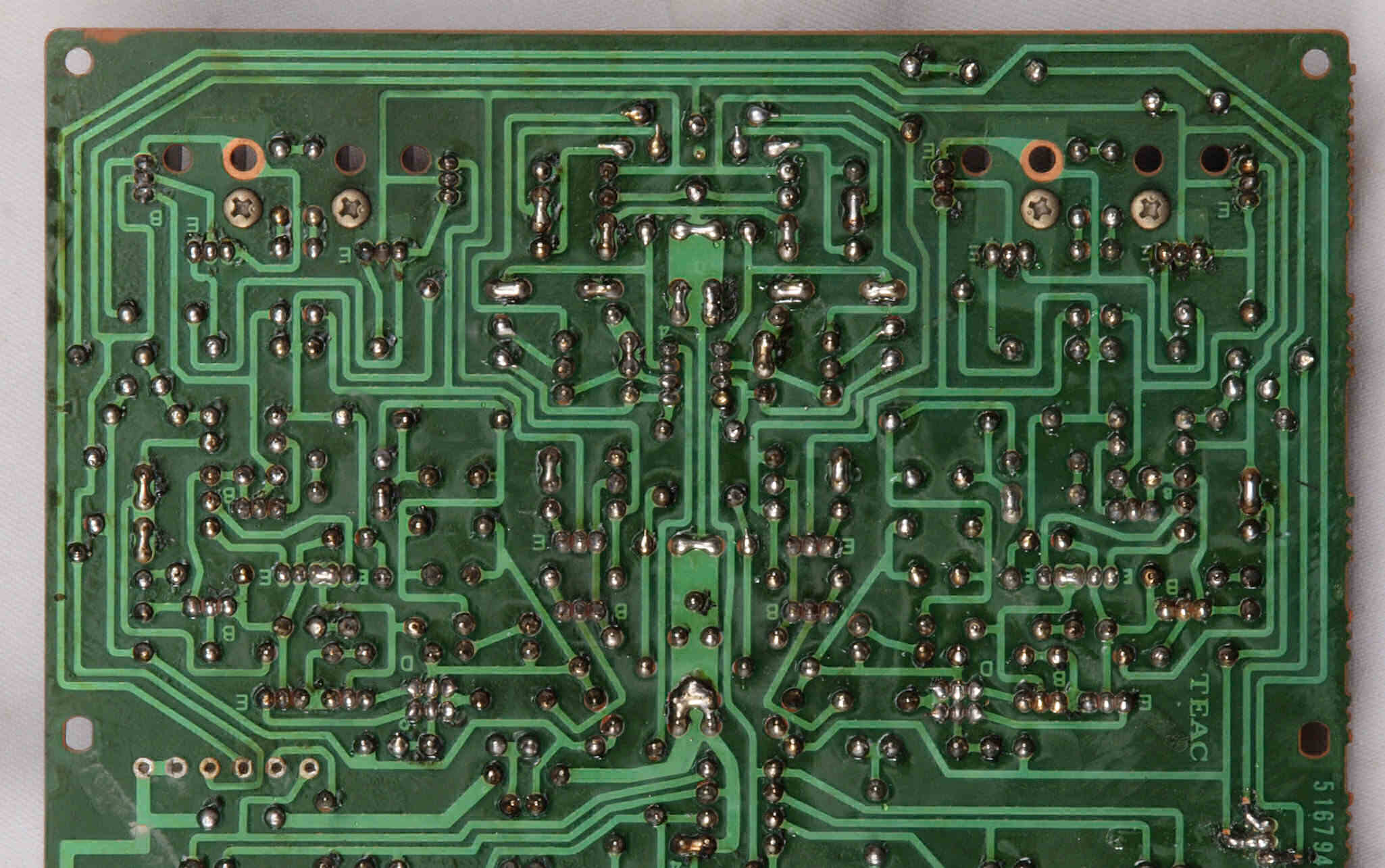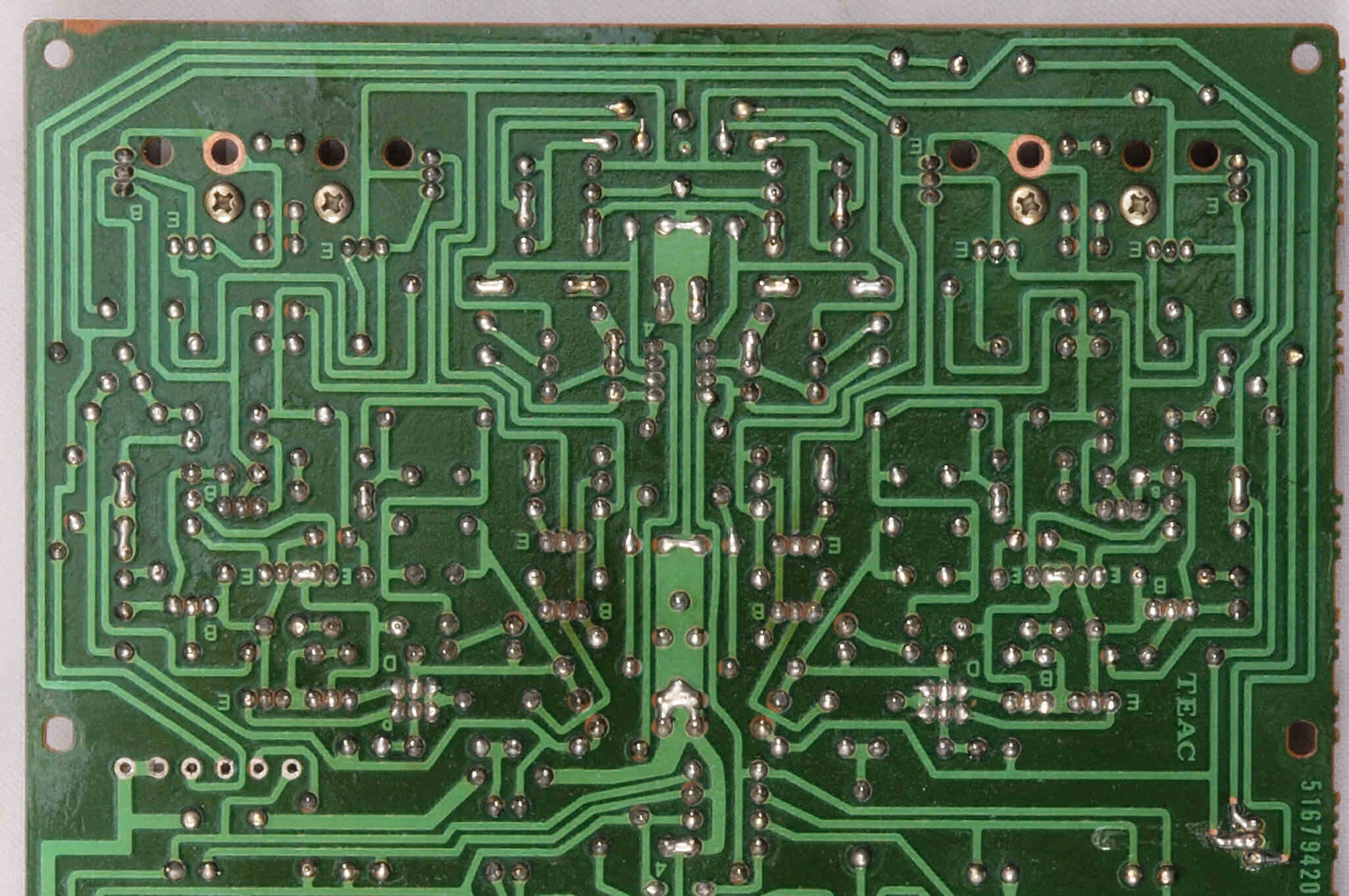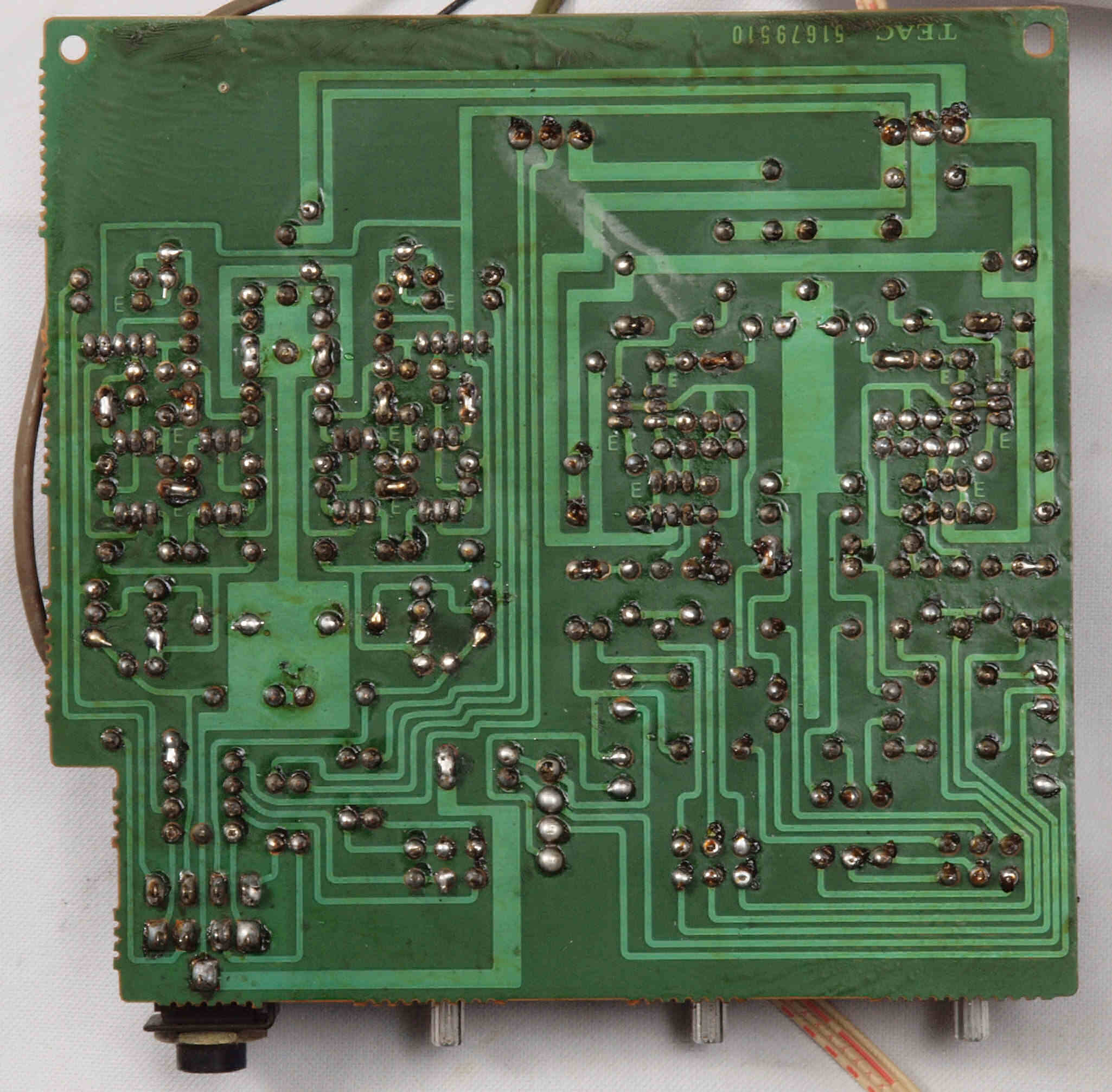 | C64. 修理(半田補正)後 トーンコントロール、ヘッドホーンAMP基板裏。 全ての半田をやり修す。 | ||||||||||||||||||||||||||||||||||||||||