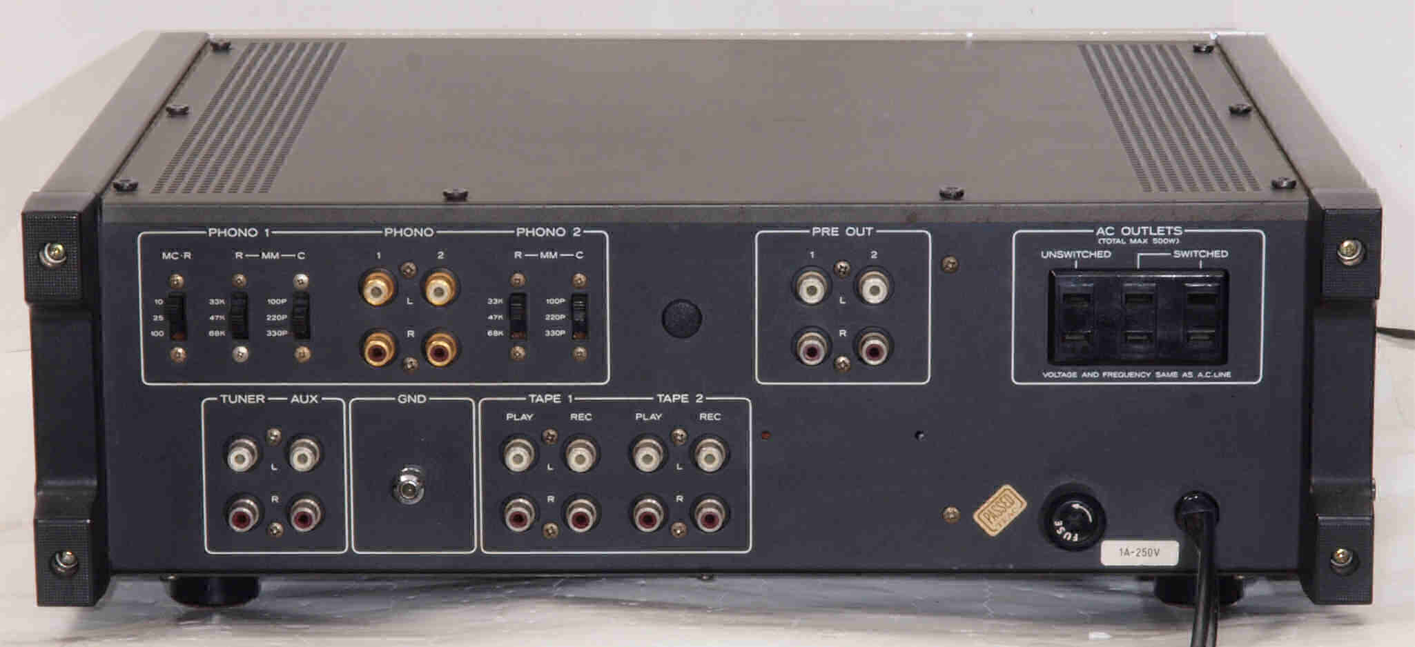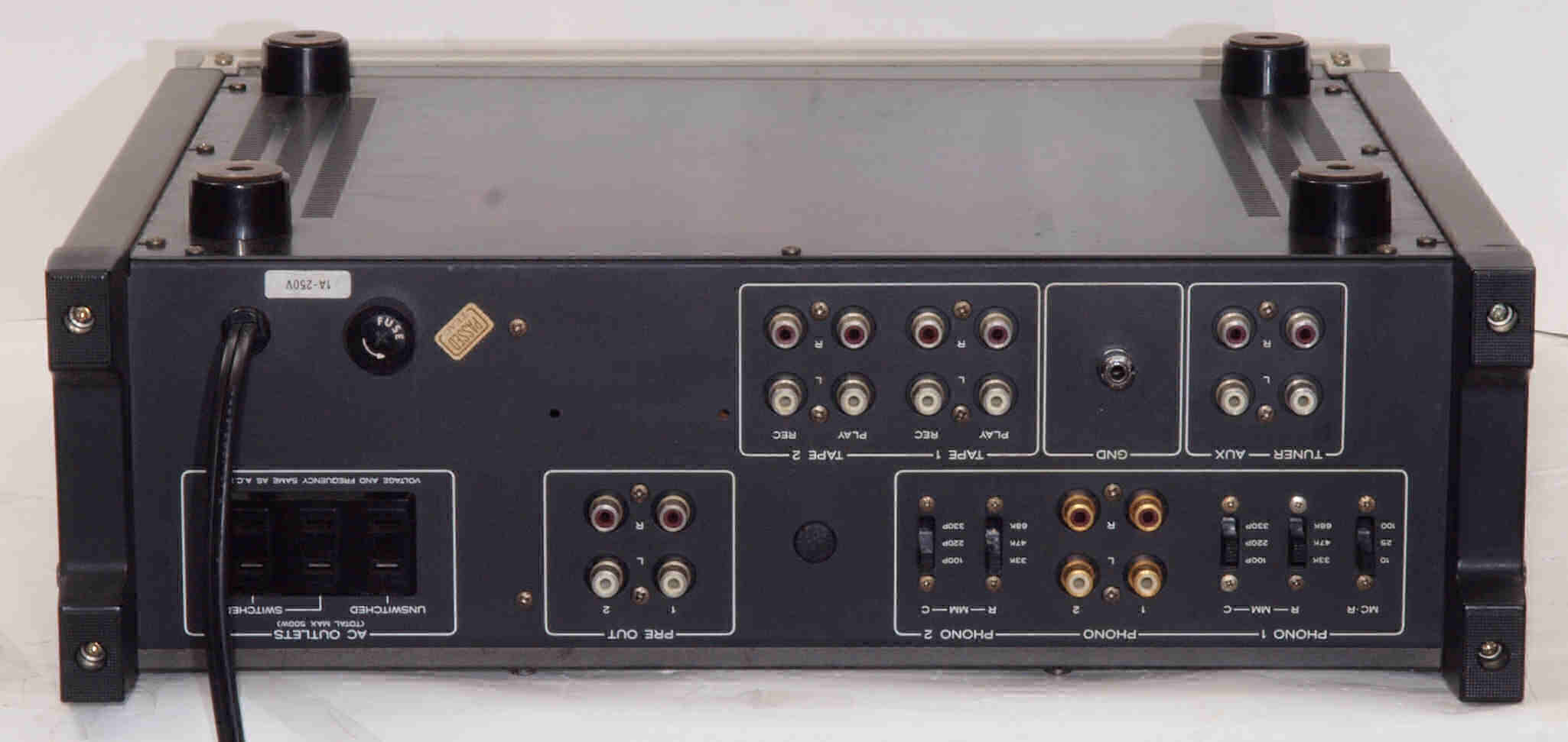 | 注意 このAMPはPRE−OUT/REC端子出力にDCが出る事が有ります。 よって、メインAMPに、DC入力が有る場合、これを使用しないように! HMA−9500やB-2301等 |