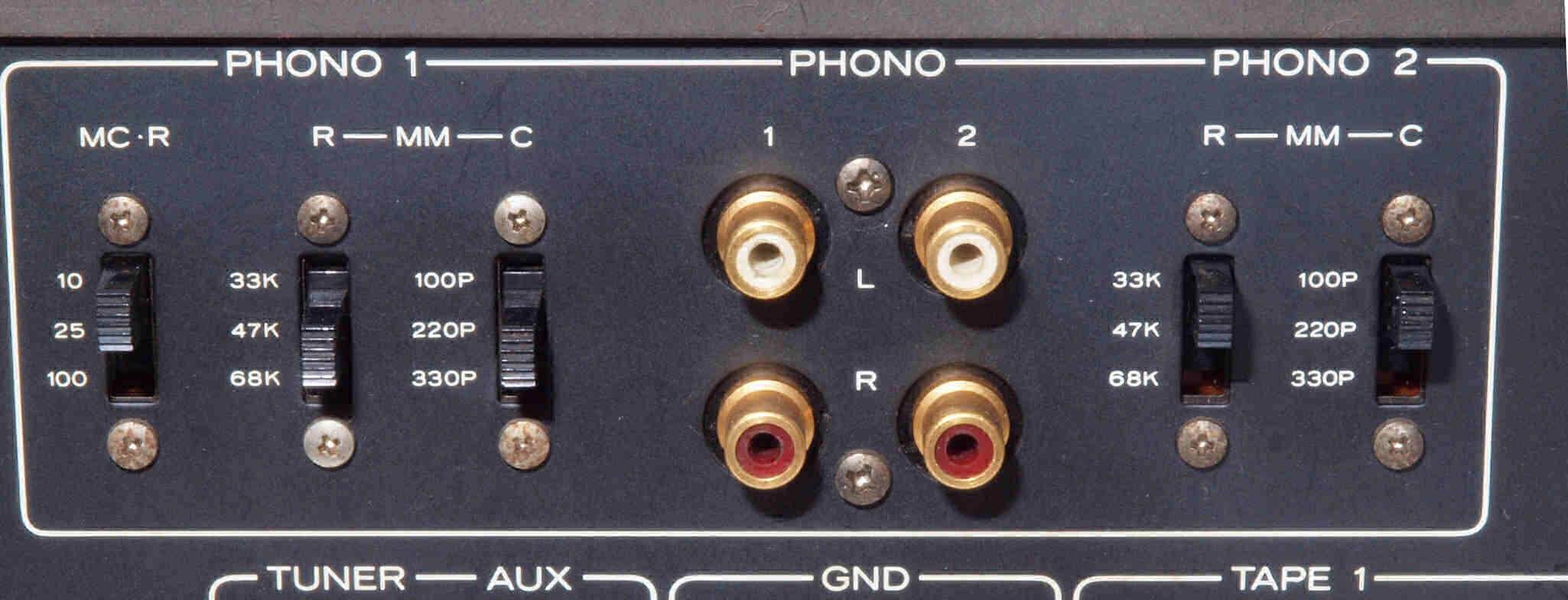 | A52. 点検中 TUNER_入力、AUX_入力、TAPE_入出力RCA端子郡。 テフロン絶縁型と交換可能、今回見送り。 | ||||||||||||||||||||||||||||||||||||||||