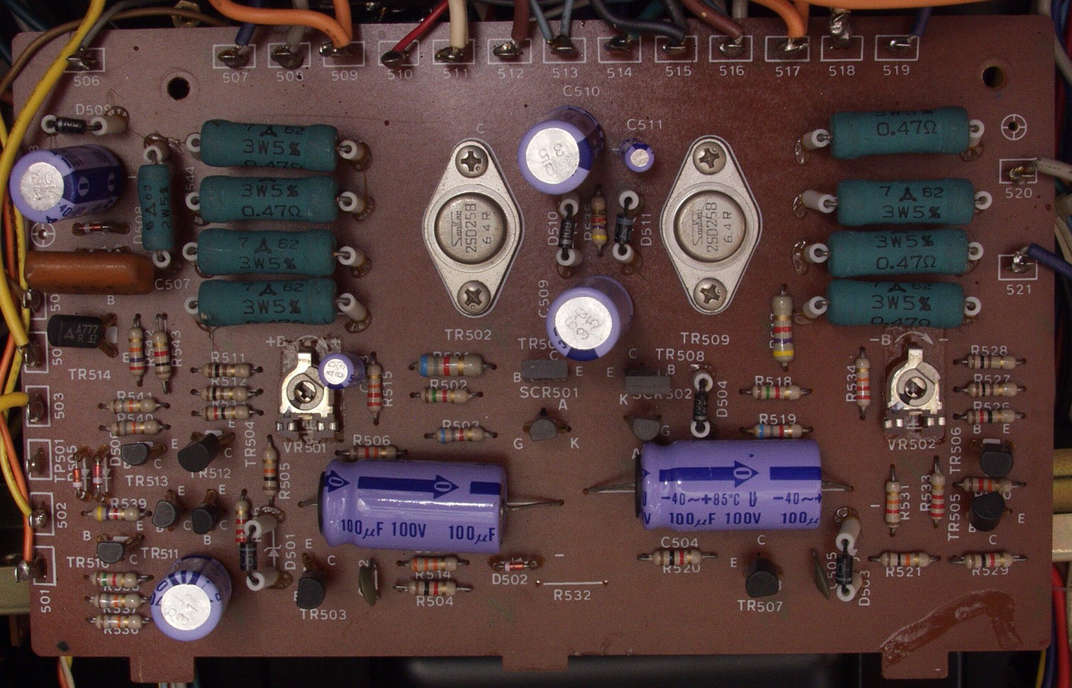 C3B. 修理後 定電圧電源基盤 半固定VR2個、電解コンデンサー7個交換