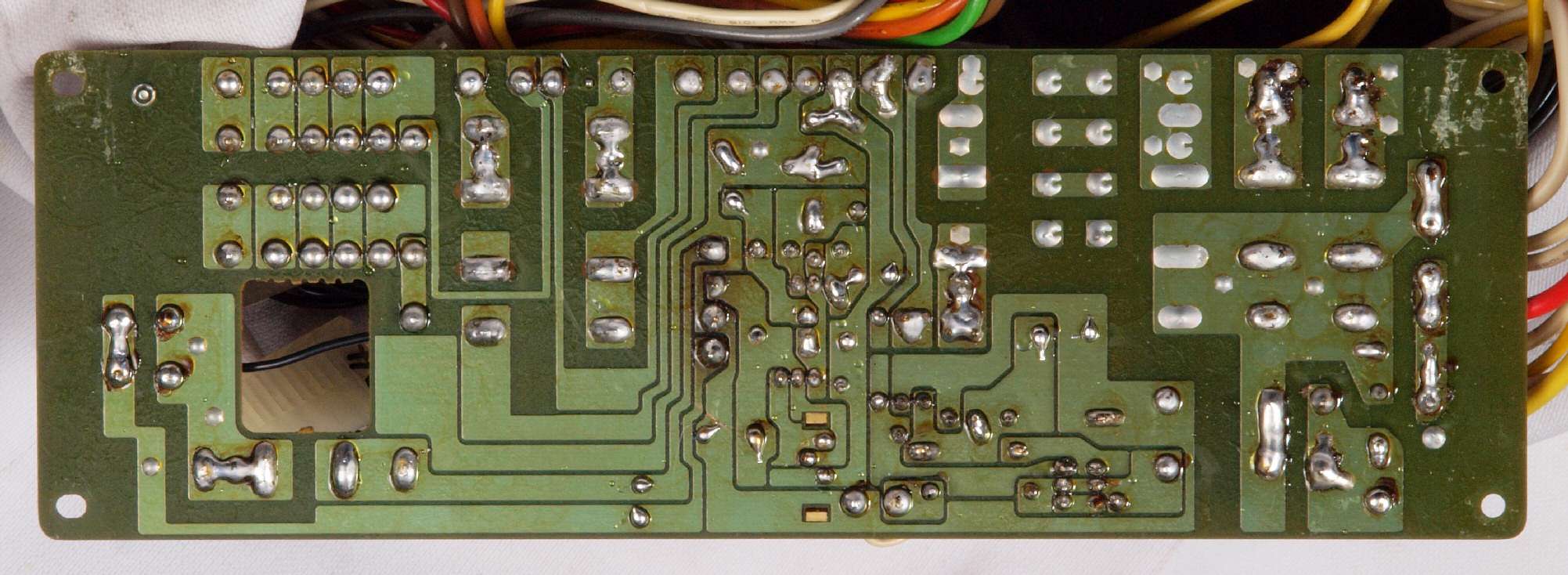 | C72. 修理前 VR基板裏、 多量の接点復活材の使用でベタベタ。 | ||||||||||||||||||||||||||||||||||||||||||||||||