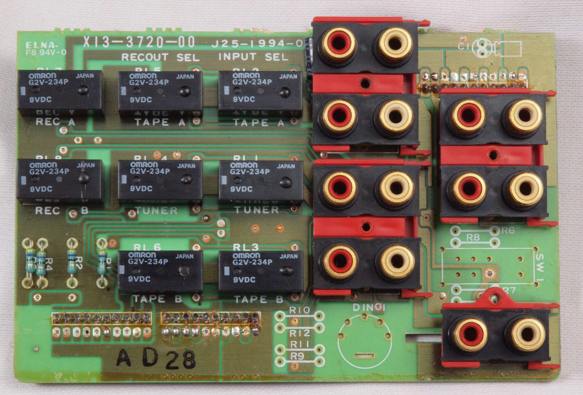 | C61. 修理前 入力RCA端子基板、 リレーが8個交換されている。 | ||||||||||||||||||||||||||||||||||||||||||||||||