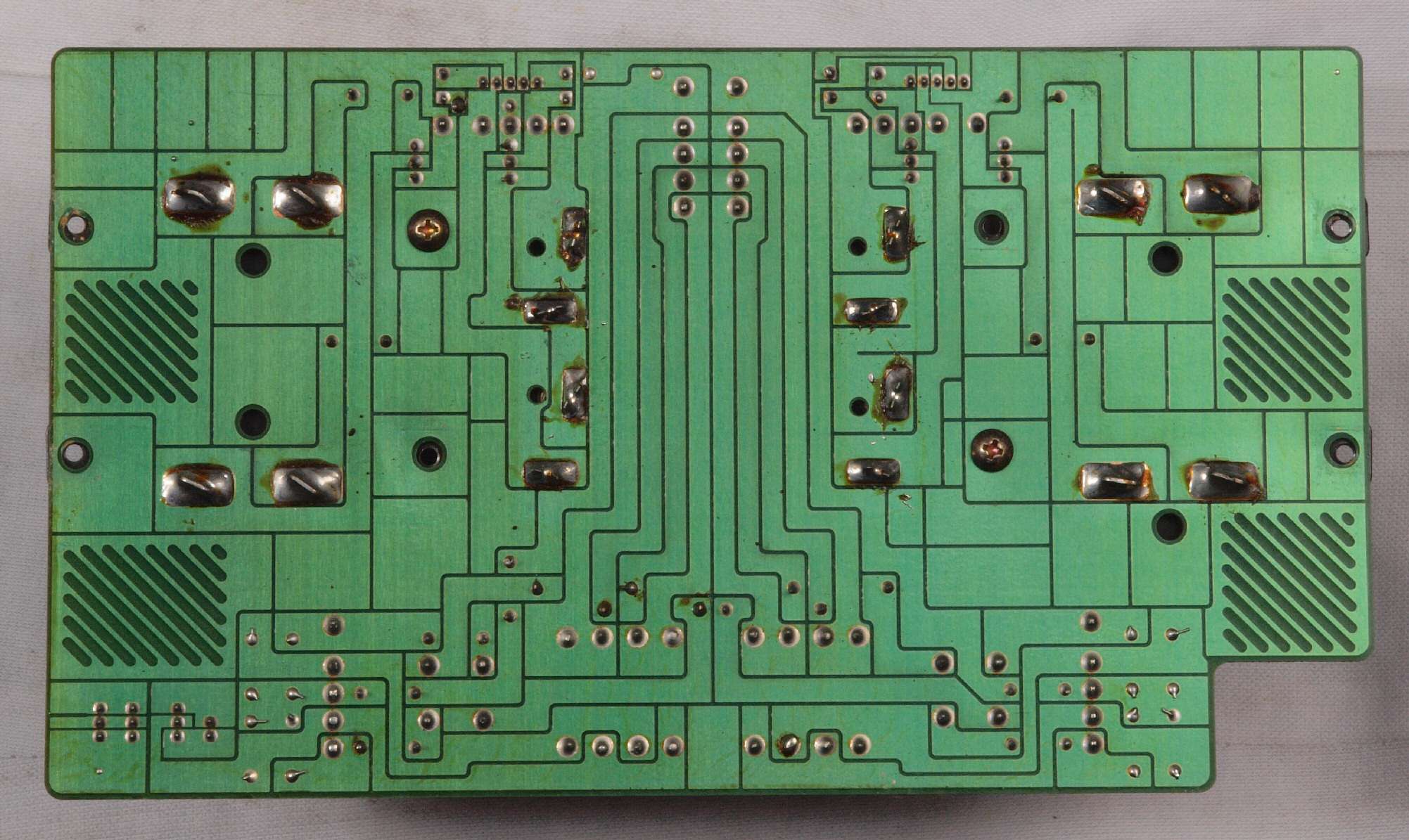 | C24. 修理(半田補正)後 終段・プロテクト基板裏。 半田を全部やり直す。 | ||||||||||||||||||||||||||||||||||||||||||||||||