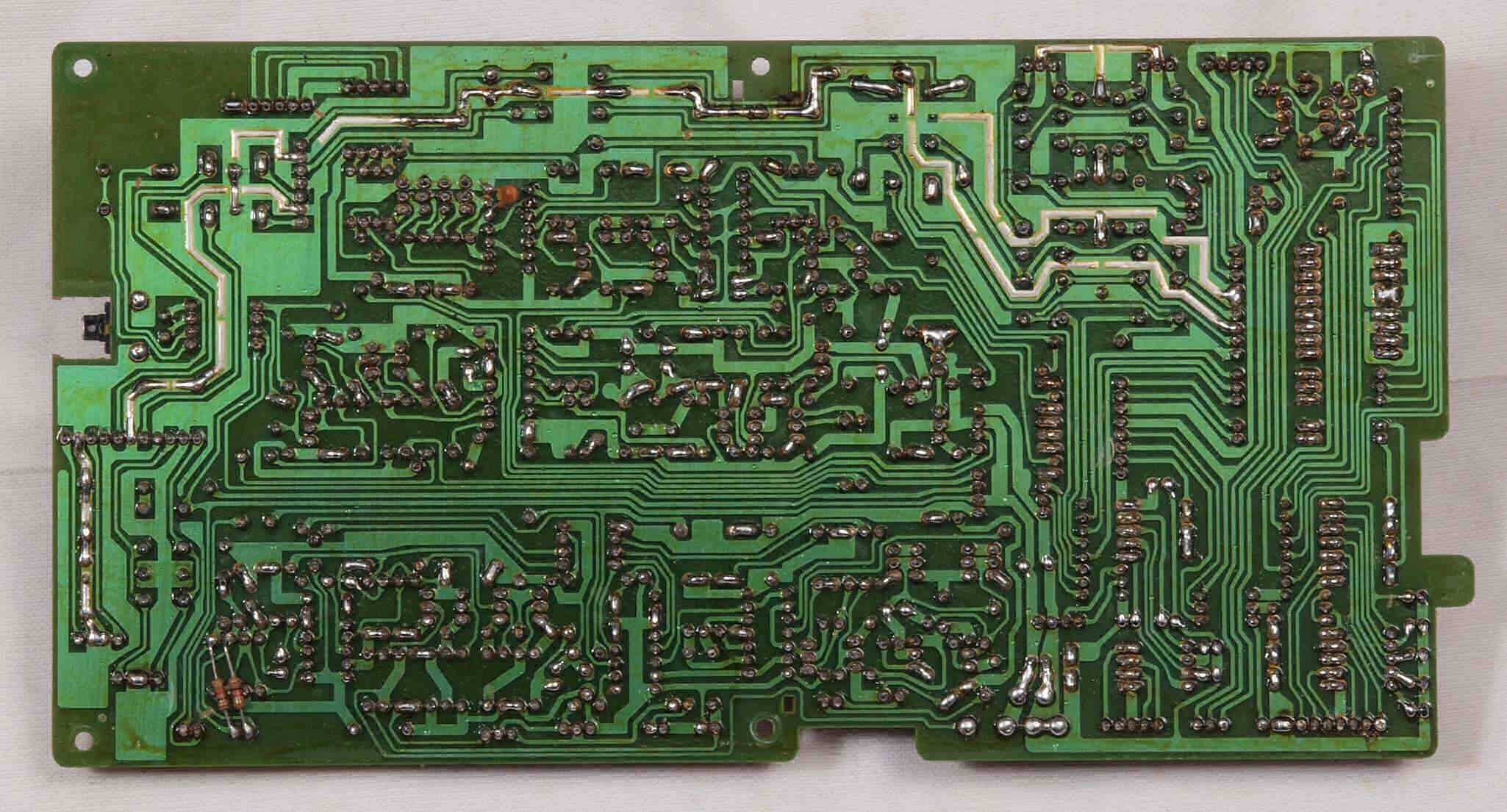 | C54. 修理(半田補正)後 EQ−AMP(equalize-amplifier)基板裏。 半田を全部やり直す。 | ||||||||||||||||||||||||||||||||||||||||||||||||