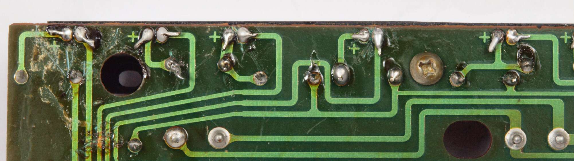 | CE4. 修理(半田補正)後 トレー操作基板裏。 半田を全部やり直す。 | ||||||||||||||||||||||||||||||||||||||||||||||||