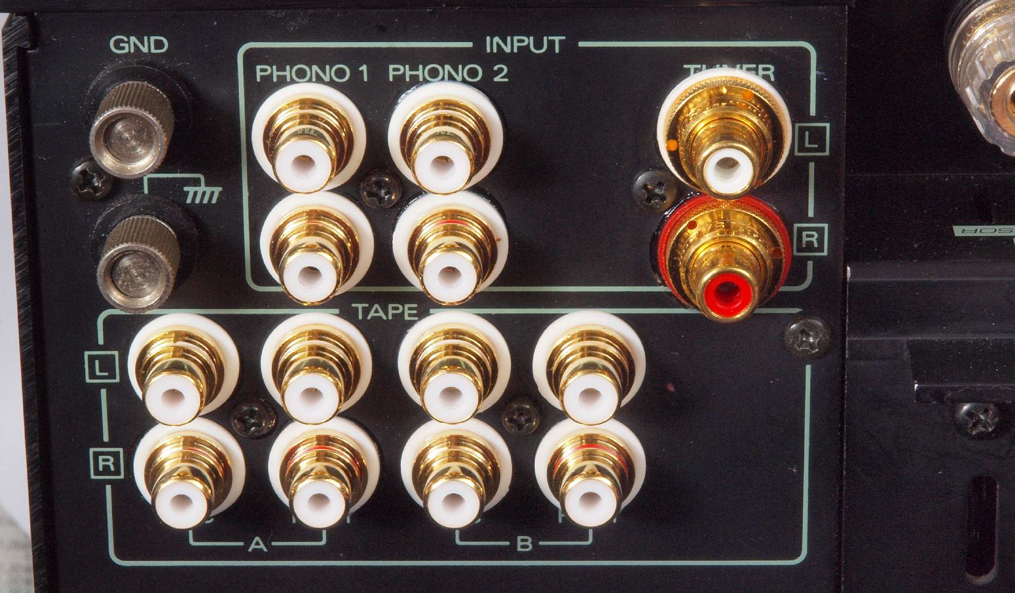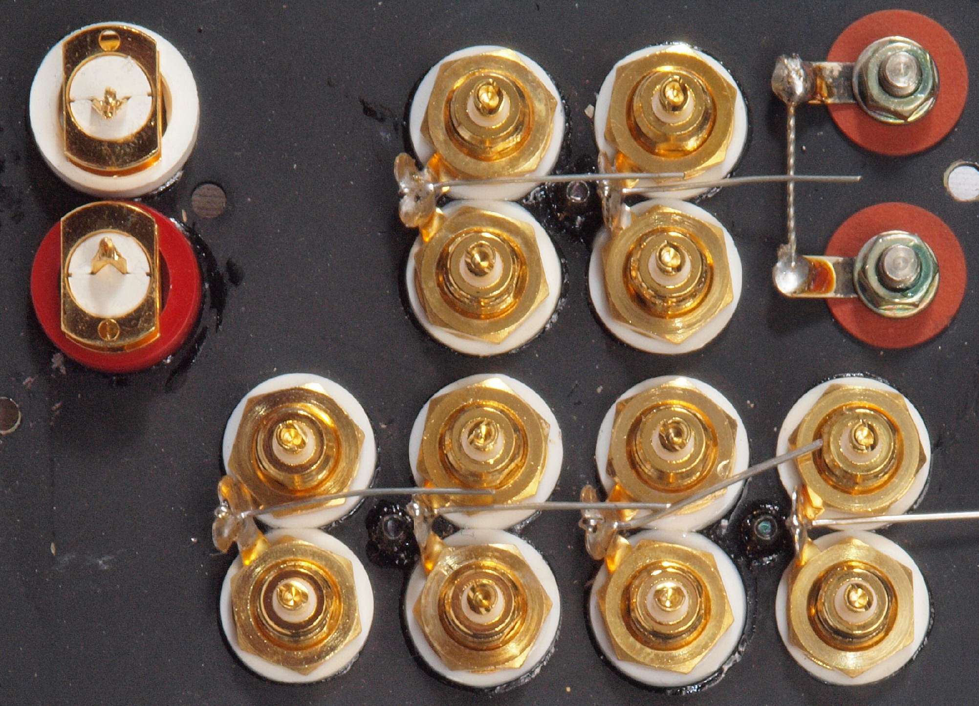 | C68. 修理(交換)後 入出力 RCA端子郡。 RCA端子(テフロン絶縁)6組12個交換、TUNERを WBT RCA端子 WBT−0201に交換。 |