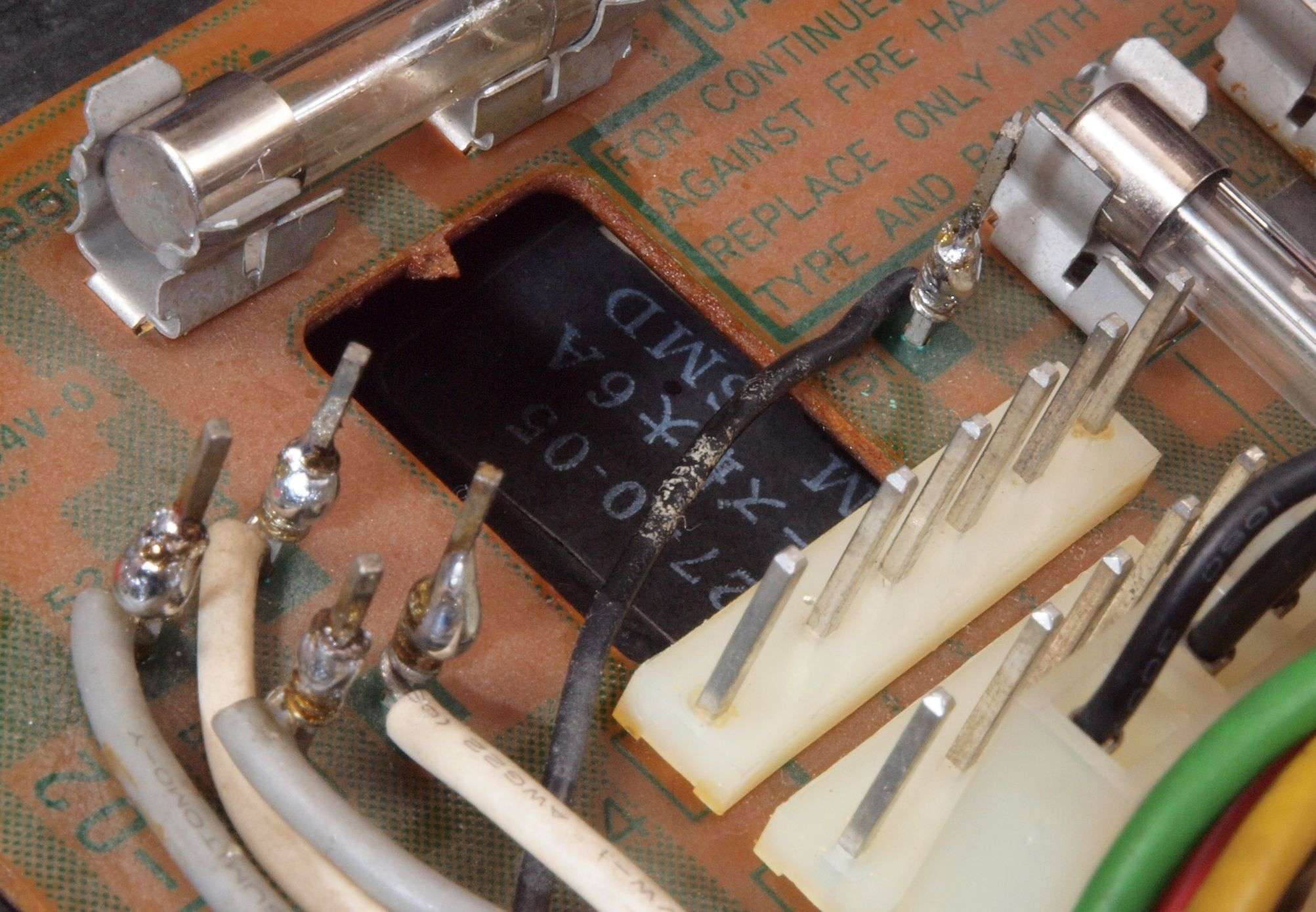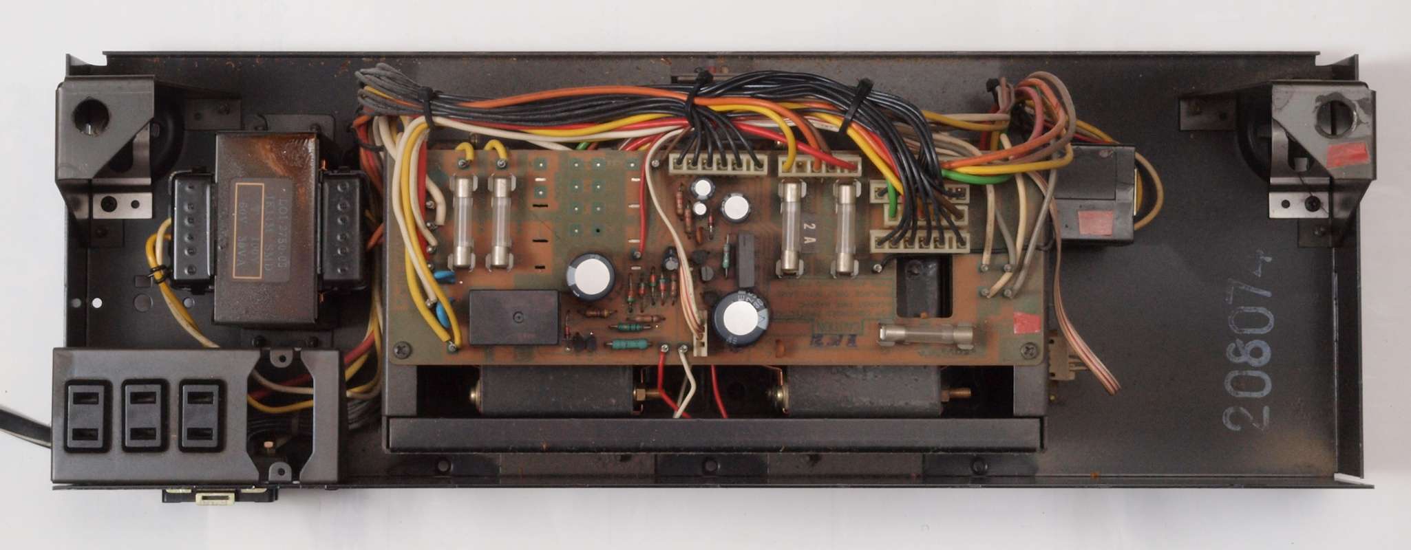A632. 点検中 電源部・下から見る、 カバーの曲がり。