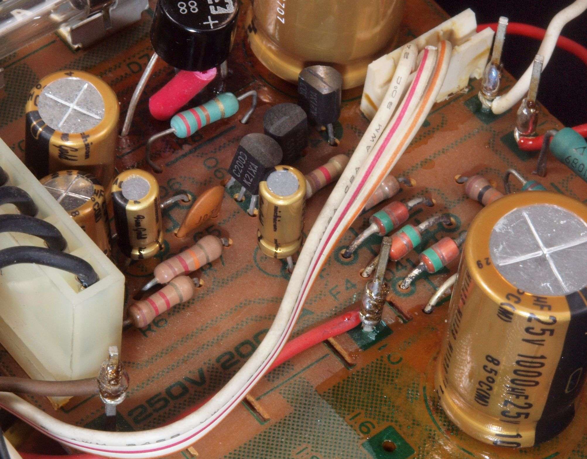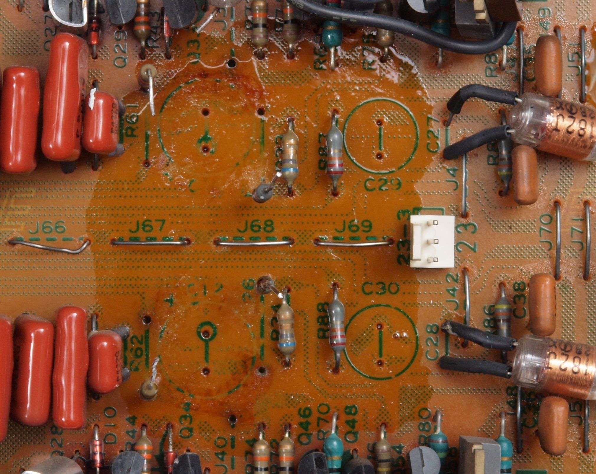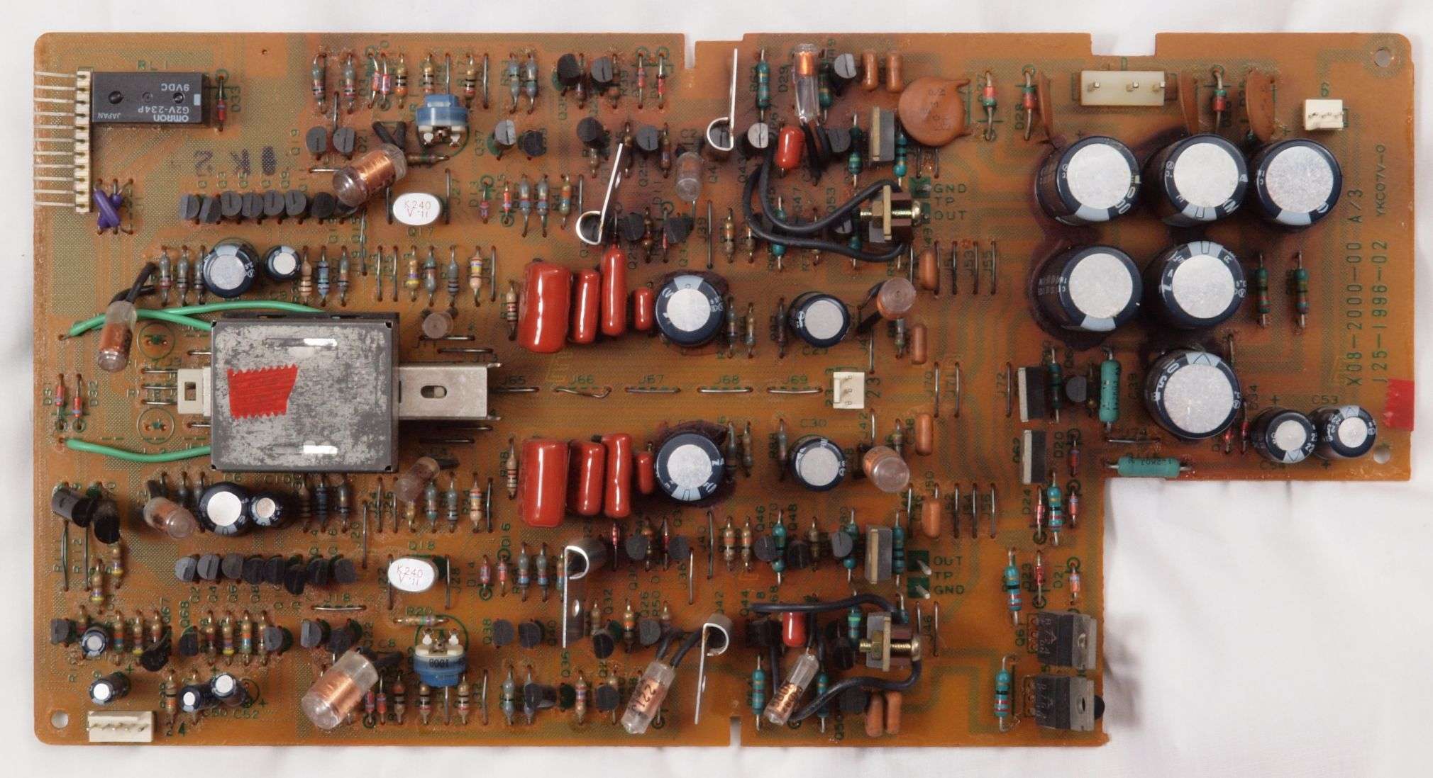 A27. 点検中 上下蓋、AUX−RCA端子版を取り、下から見る
