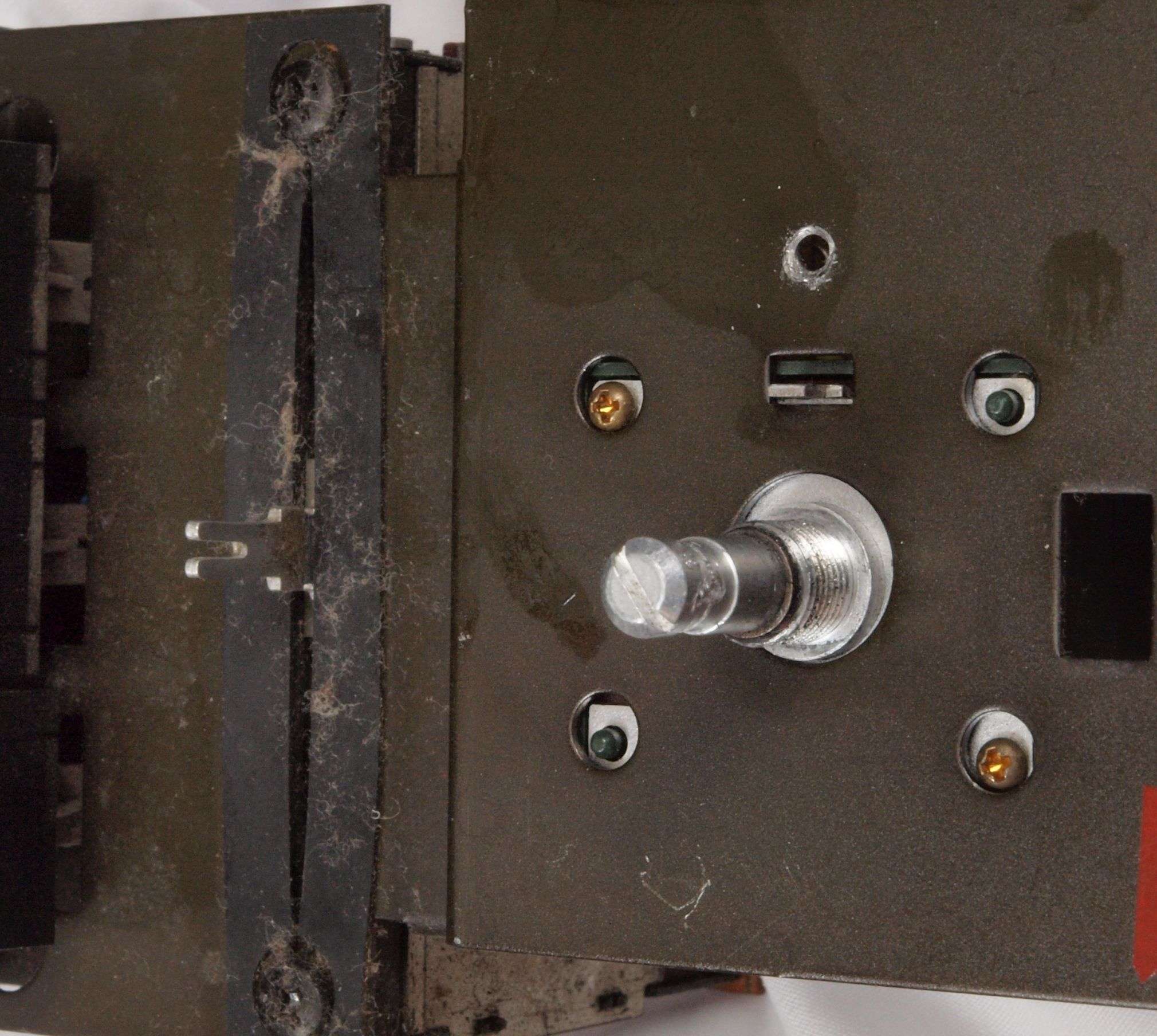 A253. 点検中 下蓋を取り下から見る。下端子台への2本の配線位置が異なる!
