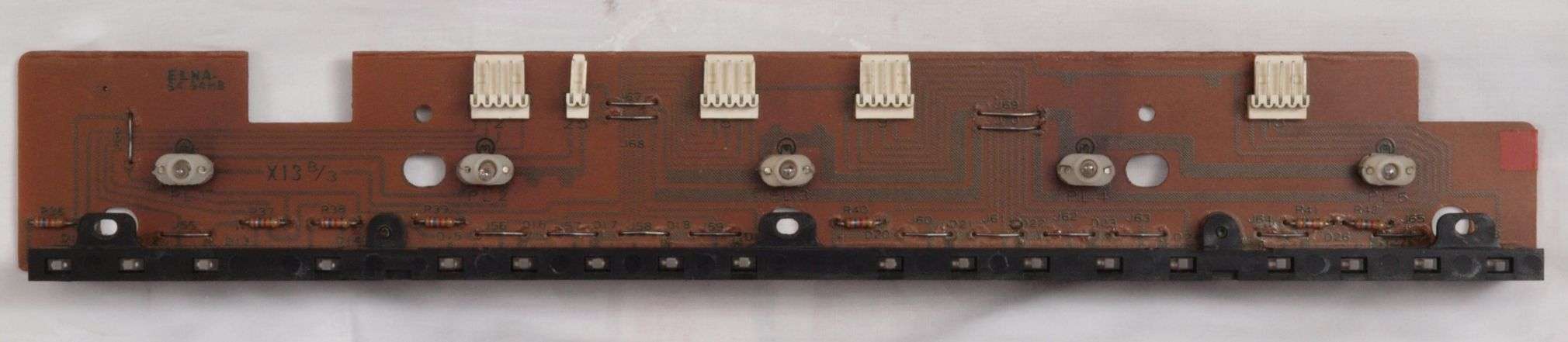 表示LED、 左端=メモリーNo、 中左=周波数測定、 中右=出力電圧測定、 右端=歪み率測定。