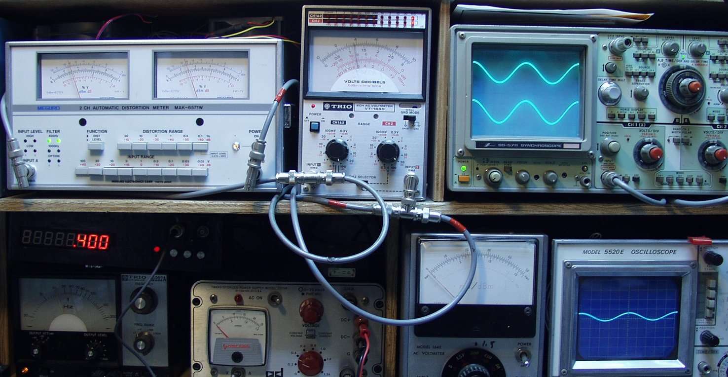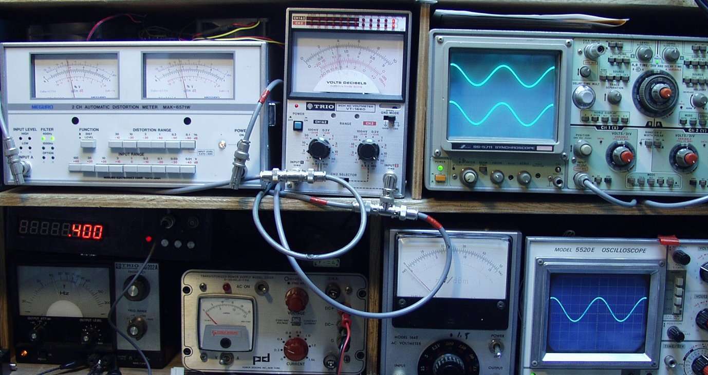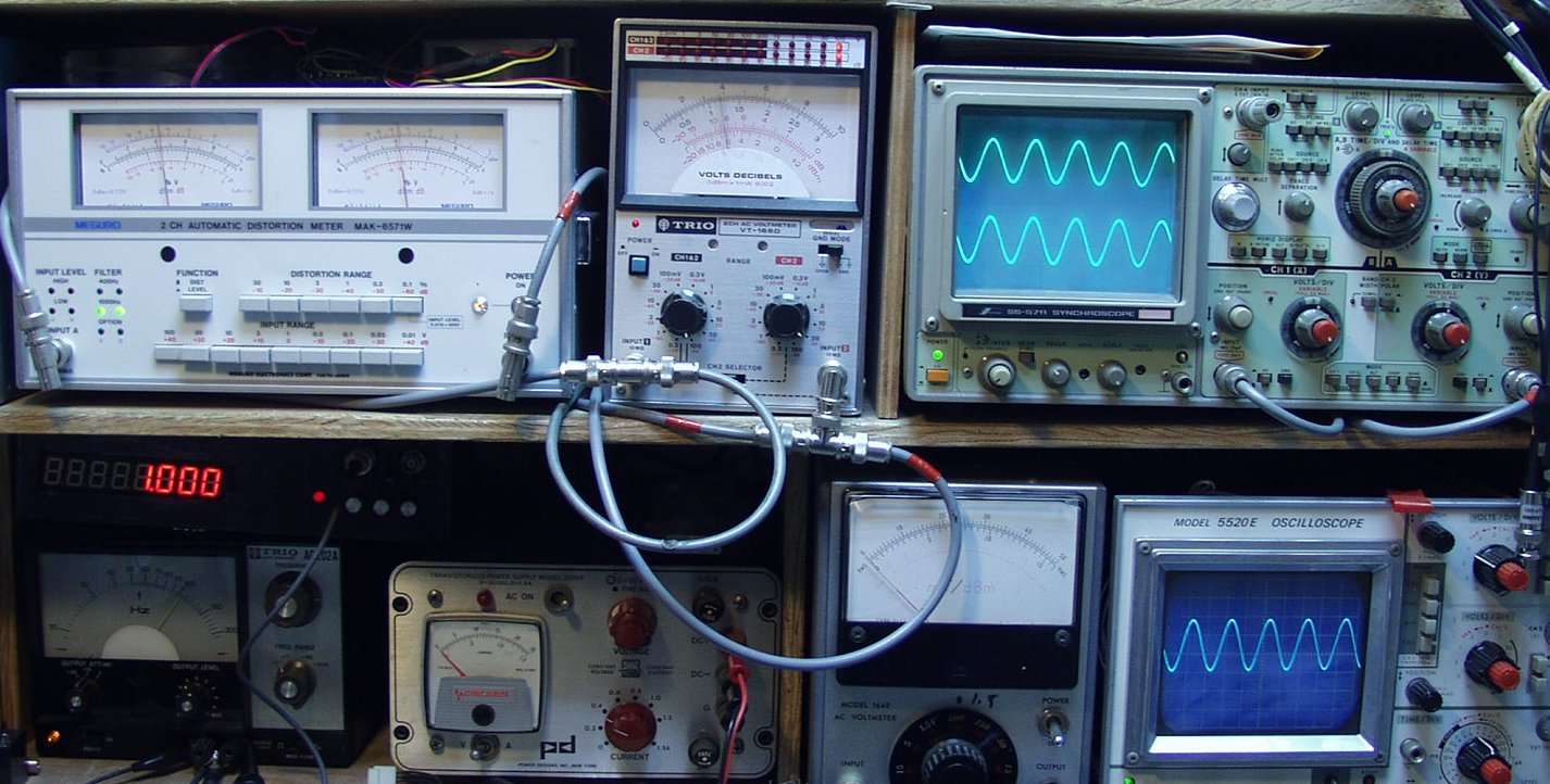 左=歪率計 中=電圧計 右=出力波形 右下=入力波形