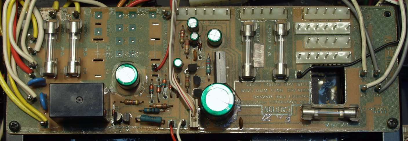 C8B. 修理 電源部基板 電解コンデンサー6個交換。 ラッピングはハンダを浸み込ませる
