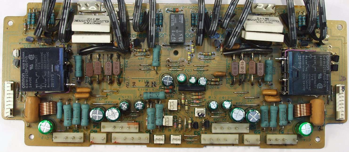 C3B. 修理後 SWコントロール基板 リレー7個、電解コンデンサー21個、フイルムコンデンサー2個交換
