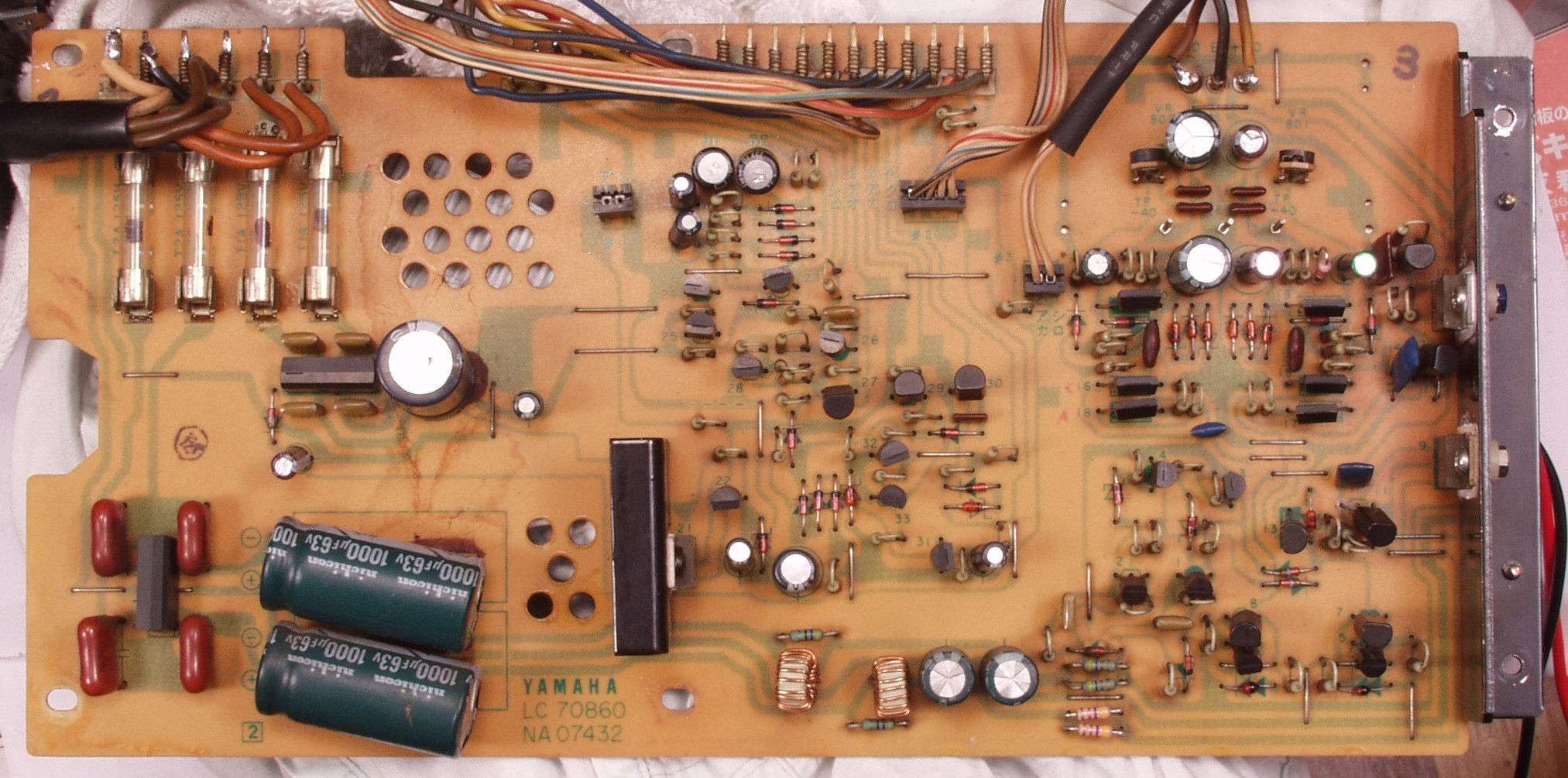 | A2A. 点検中 ドライブ基板を外し、大型電解コンデンサー周りを見ると、かなり弄った後がある | ||||||||||||||||||||||||||||||||||||||
