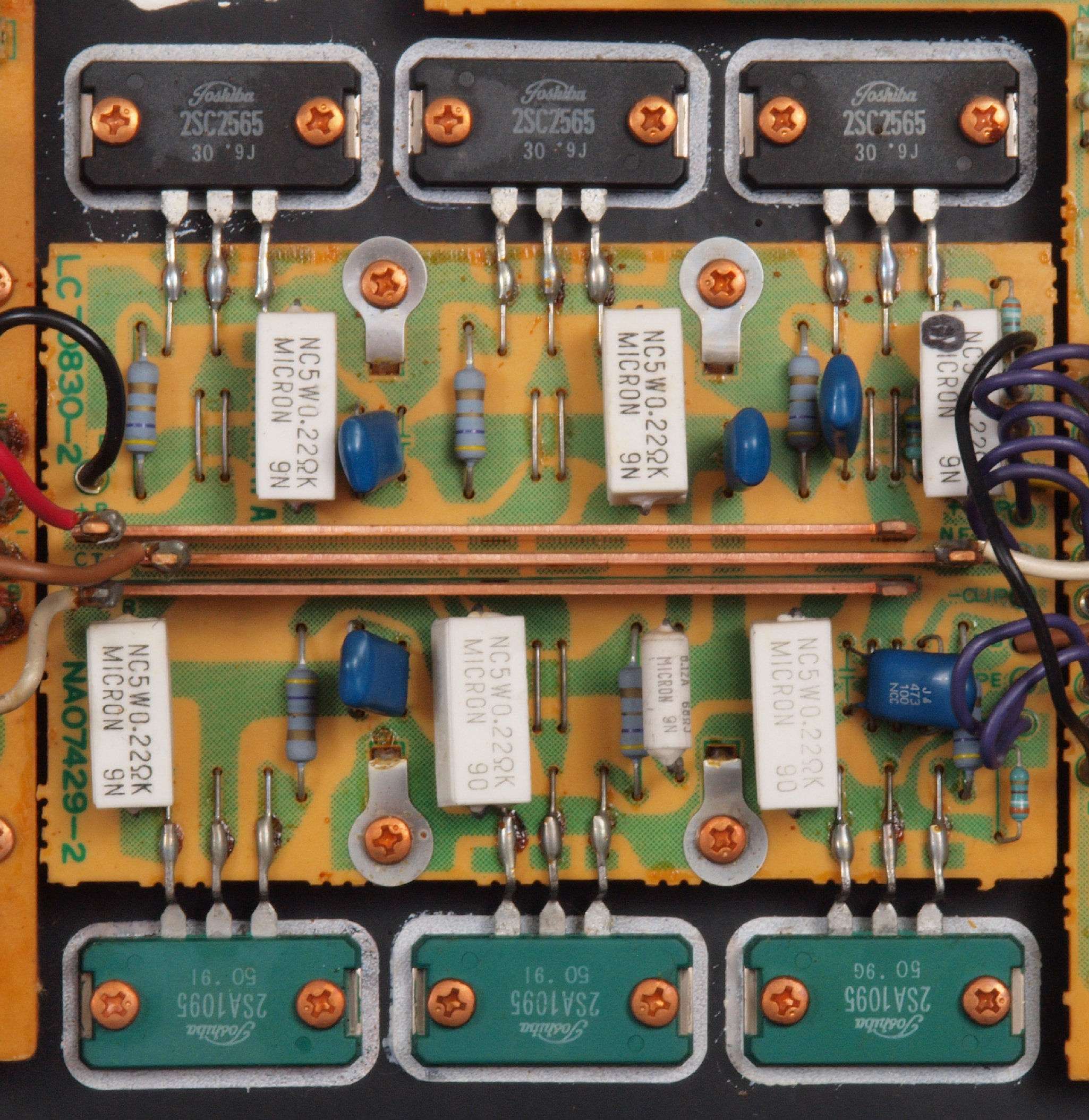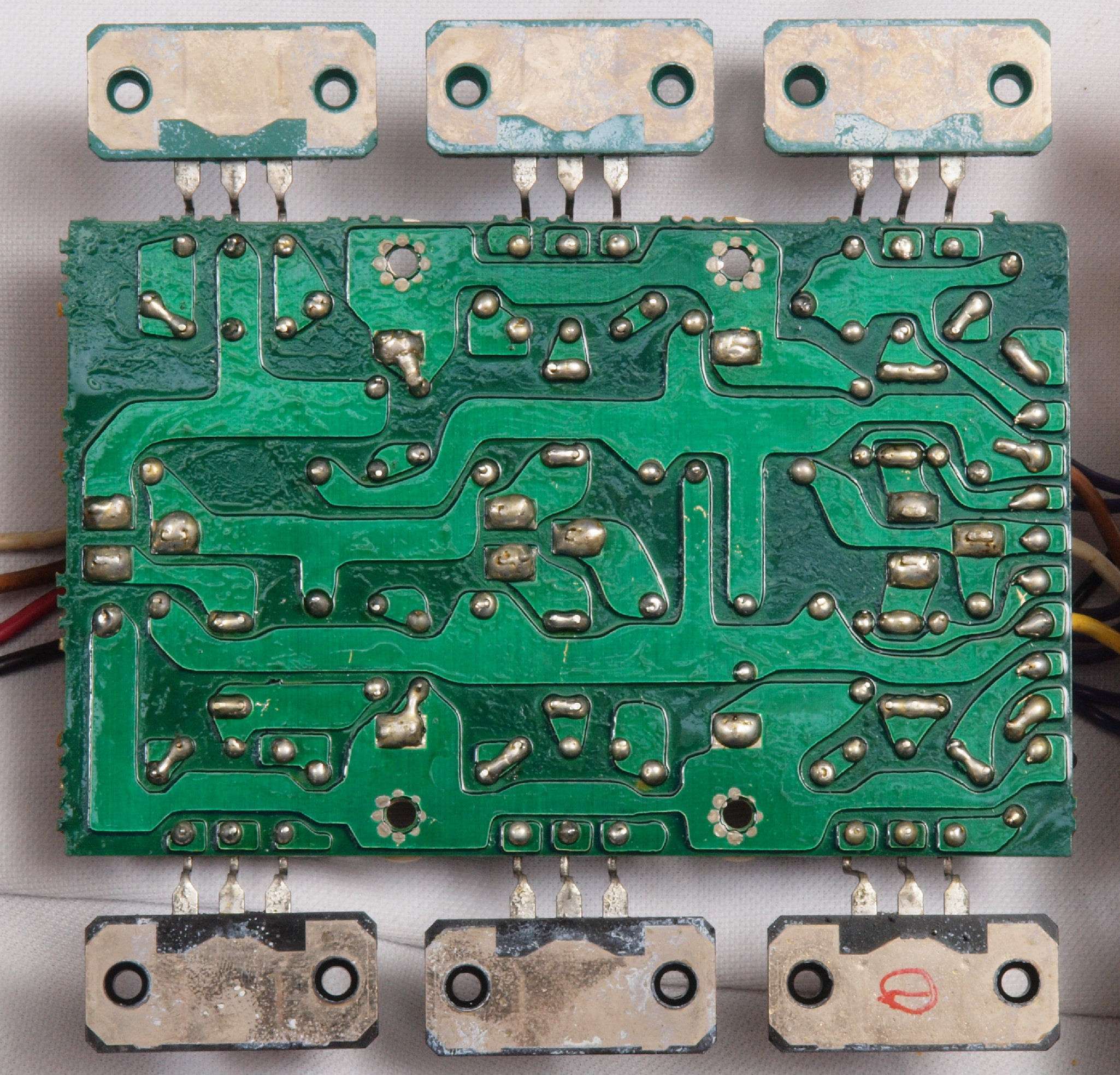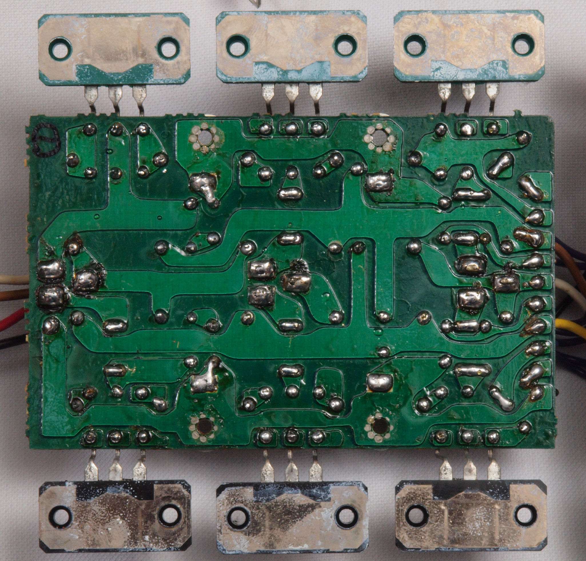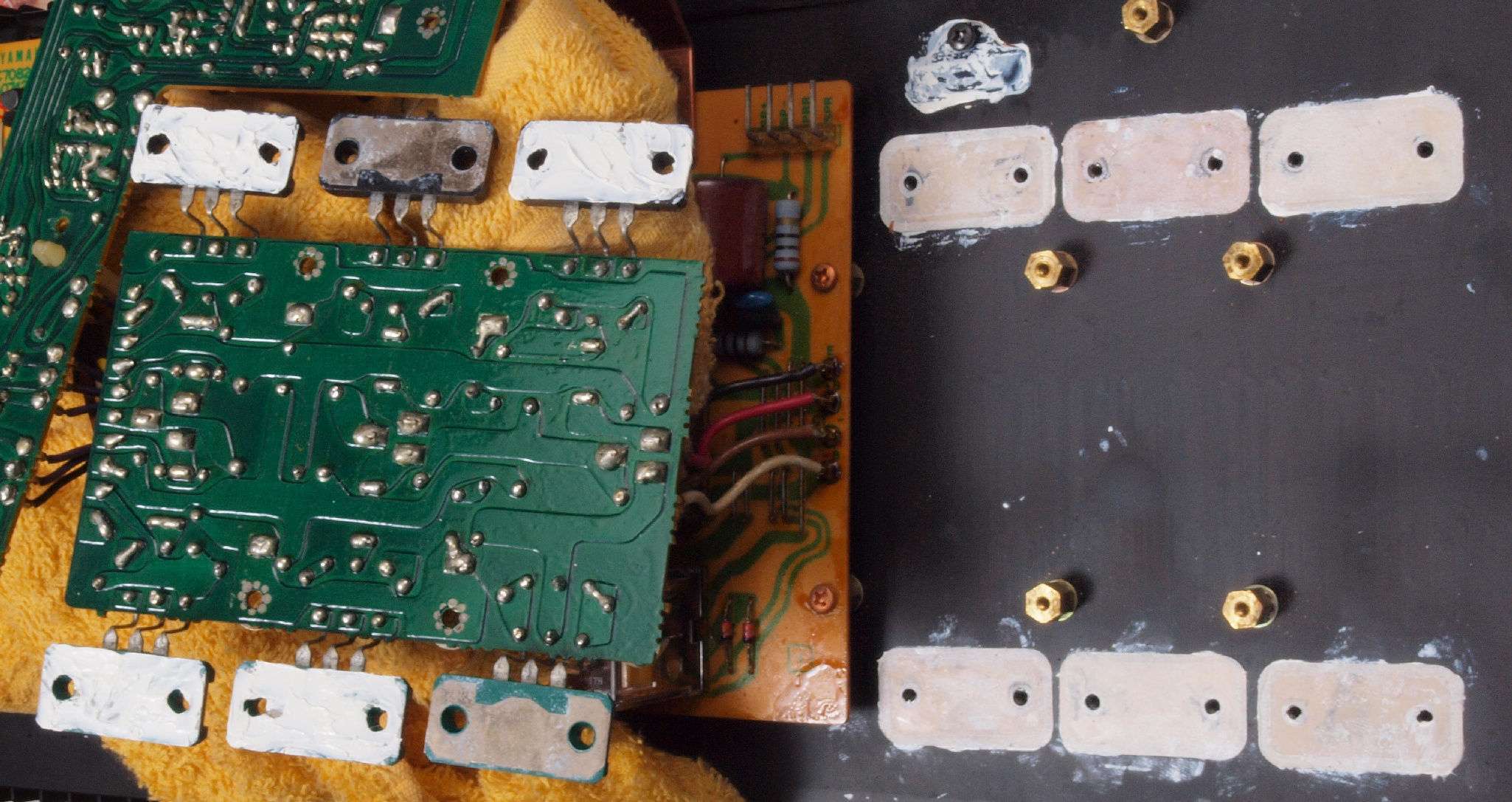 | C212. 修理中 −側終段基板。 終段TR(トランジスター)のマイカー板の放熱シリコンが少ない | ||||||||||||||||||||||||||||||||||||||