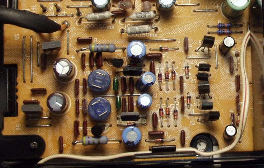 | A−4. 修理前 電解コンデンサーが液漏れ? 「ベタベタ」している |