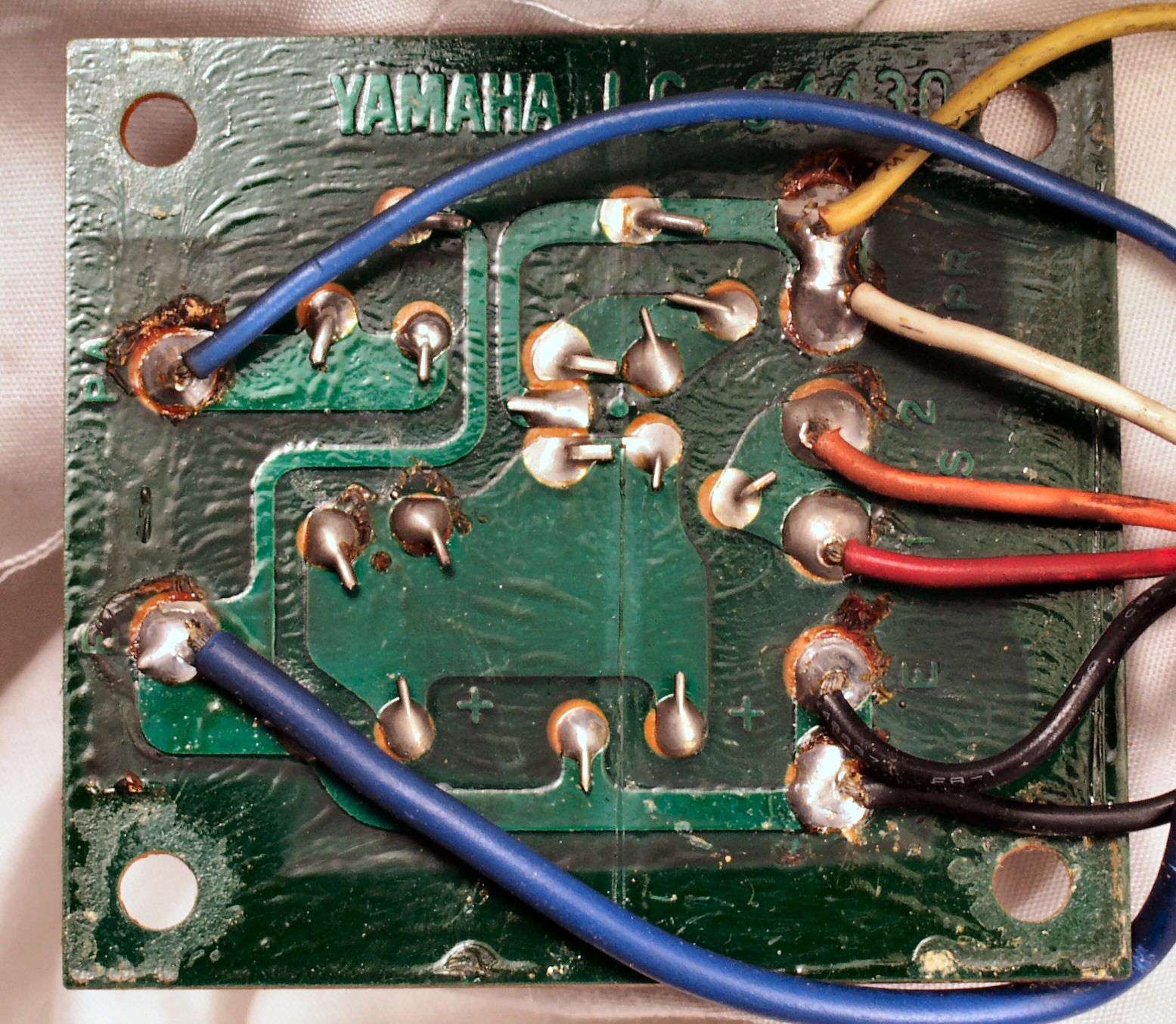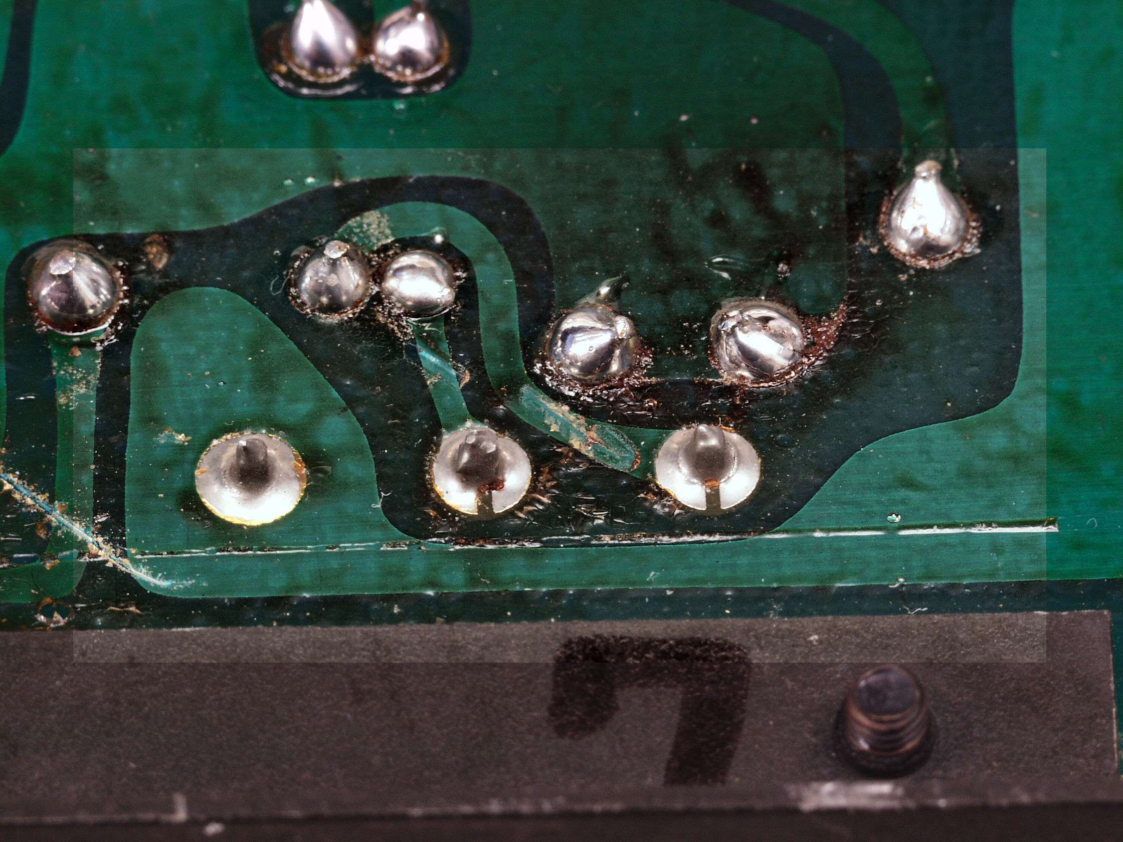 C2G. 修理(洗浄)後のドライブ基板コネクター足、上=前、下=後