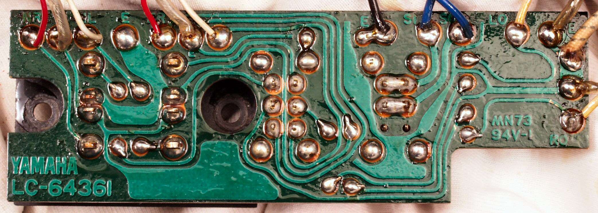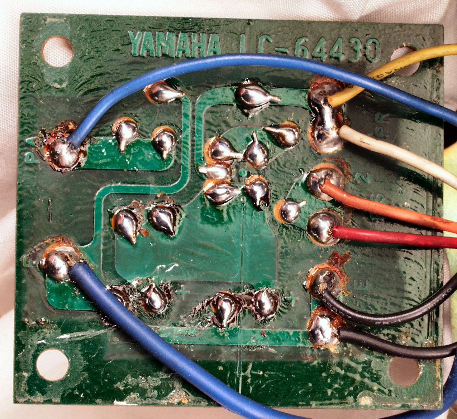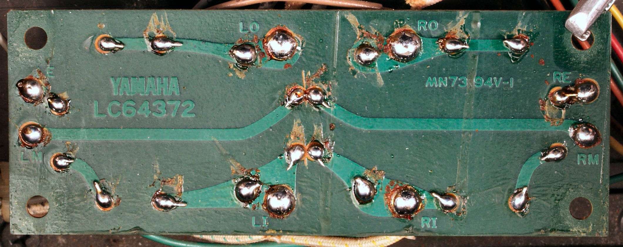 CBD. 修理(半田補正)後 RCA端子基板裏。 全ての半田をやり修す。
