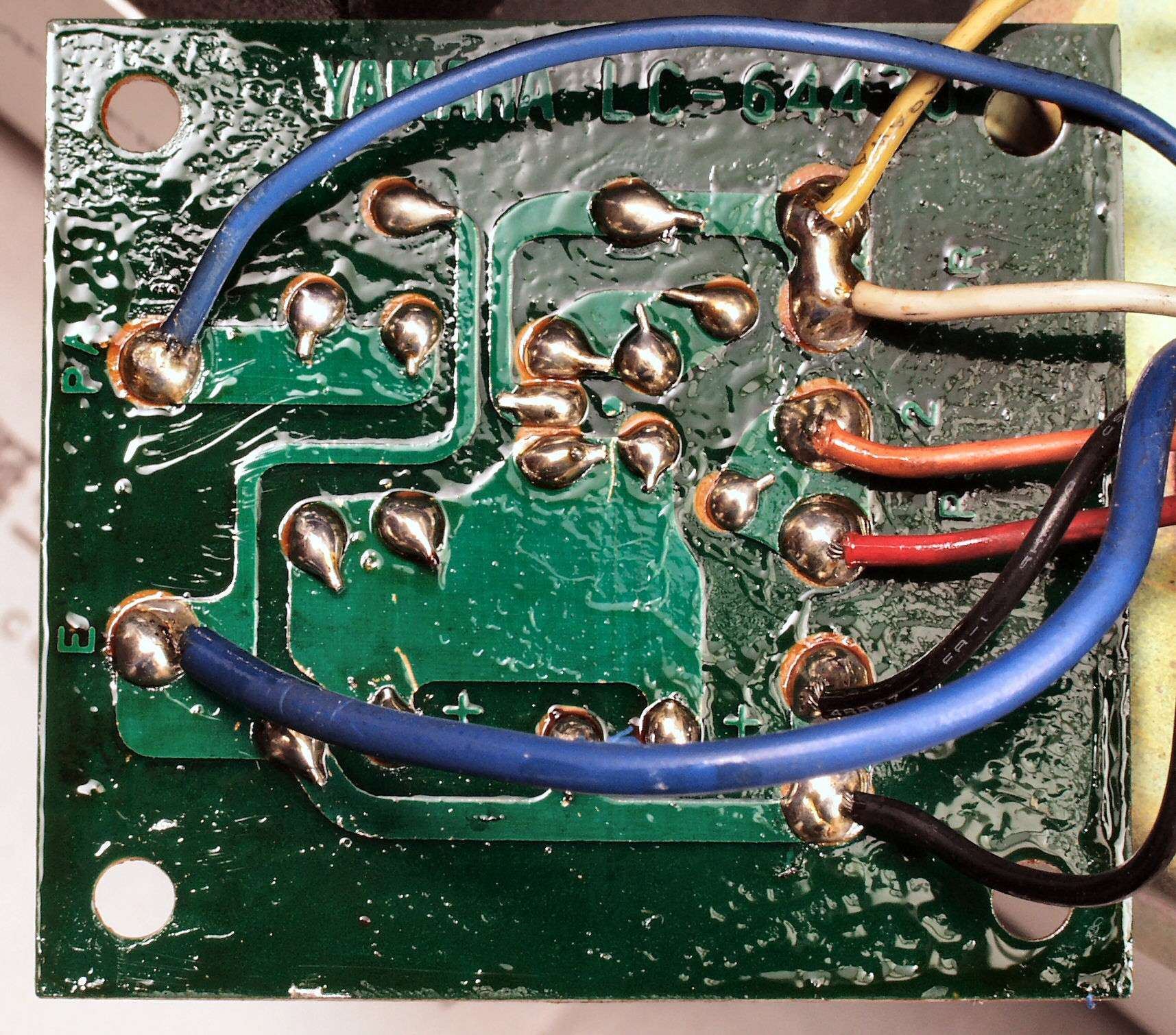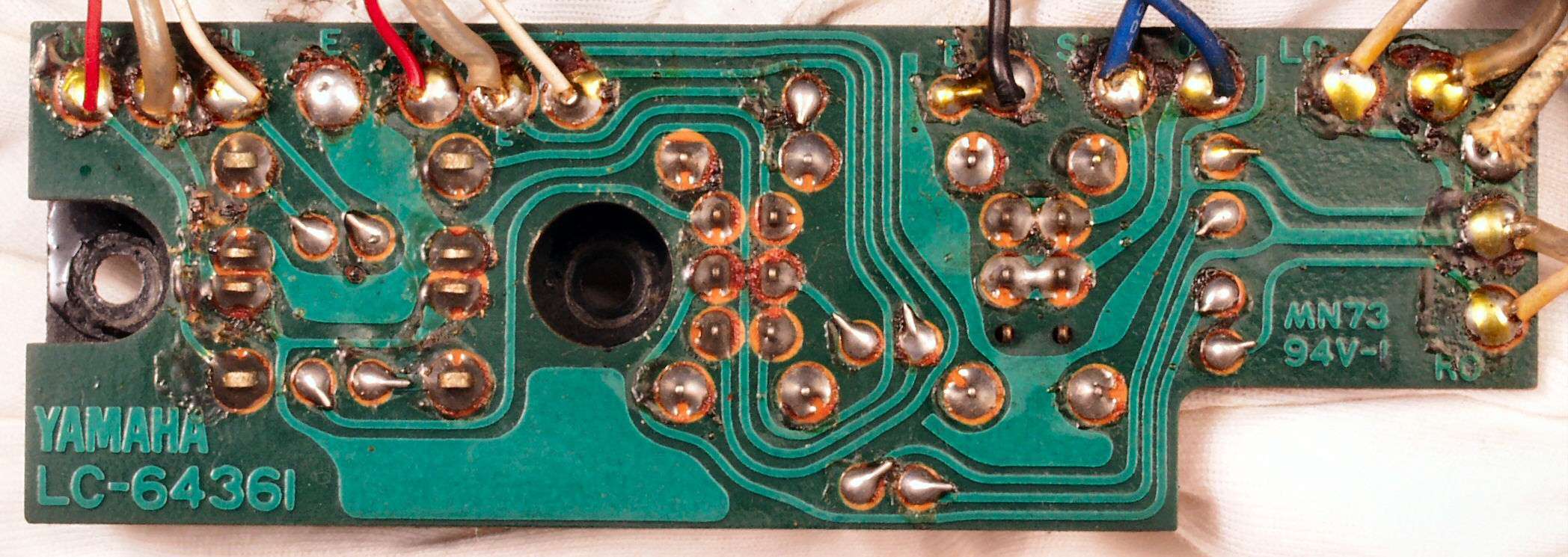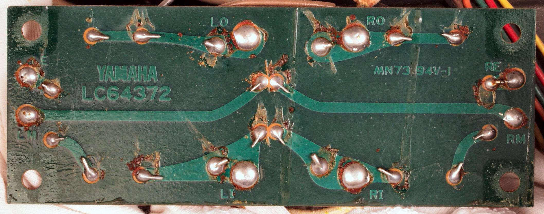 CBD. 修理(半田補正)後 RCA端子基板裏。 全ての半田をやり修す。