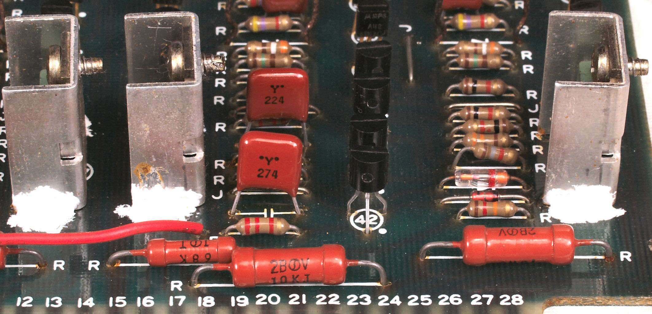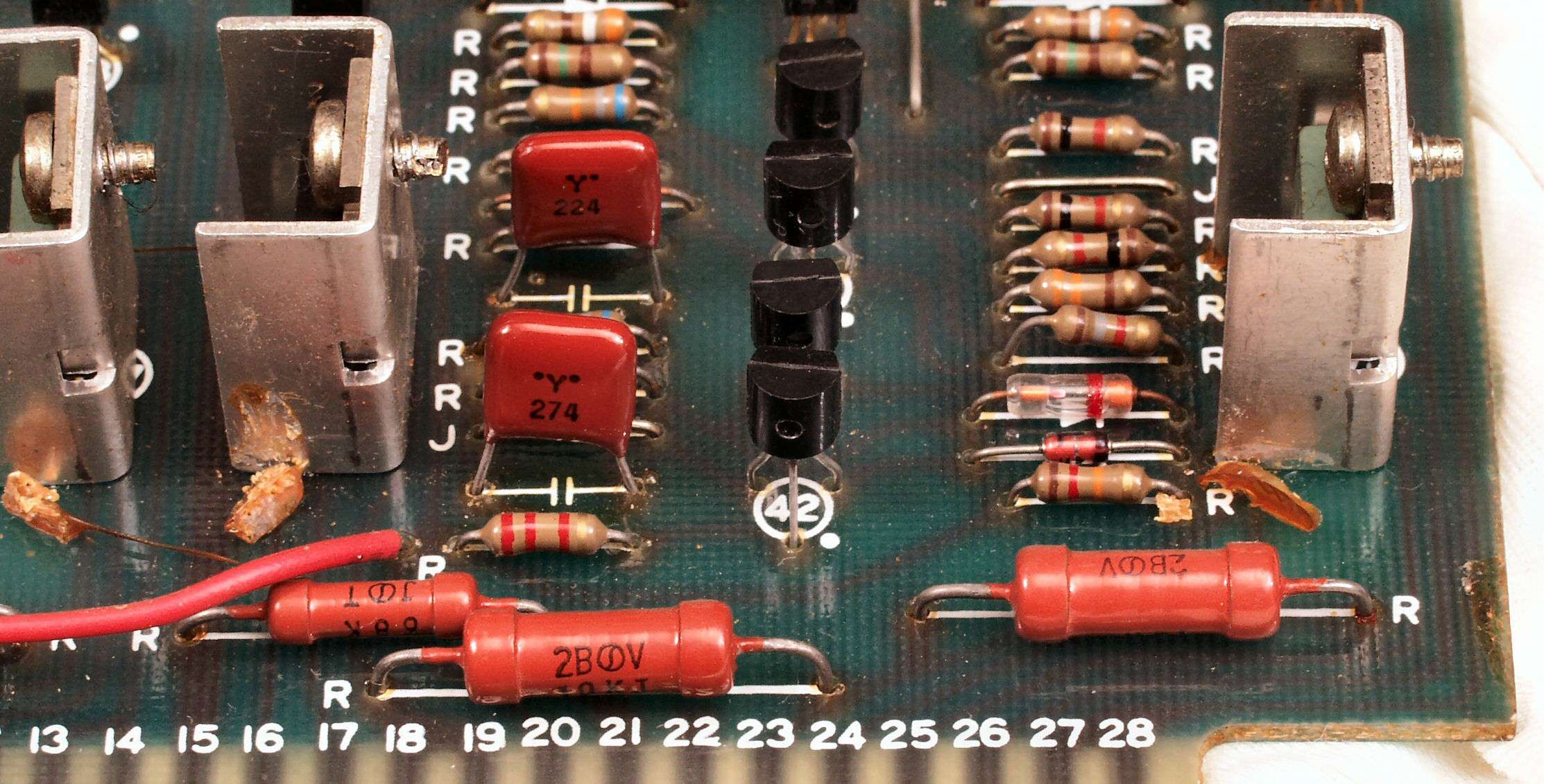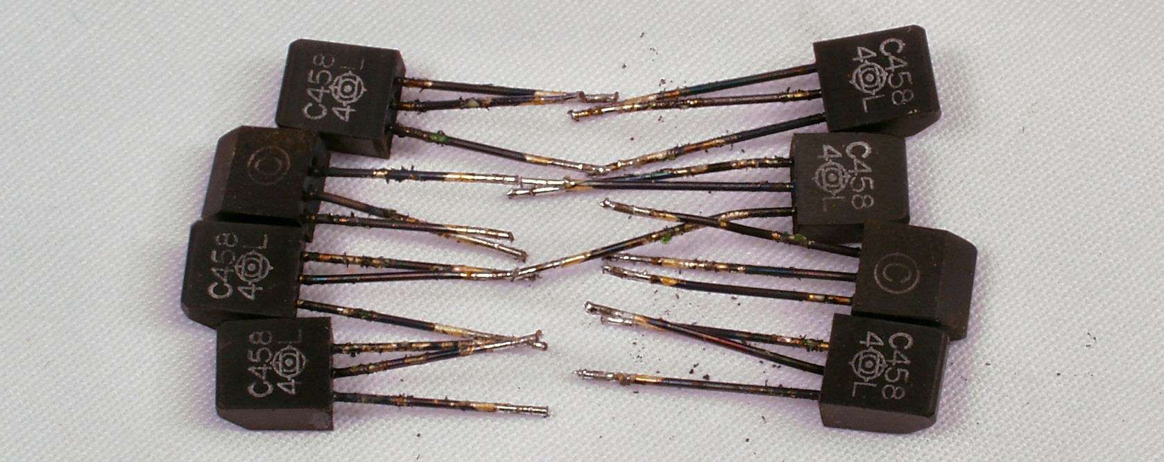 CFB. 交換したTR(トランジスター)、長年の使用で、足が腐食し、毛羽立っている