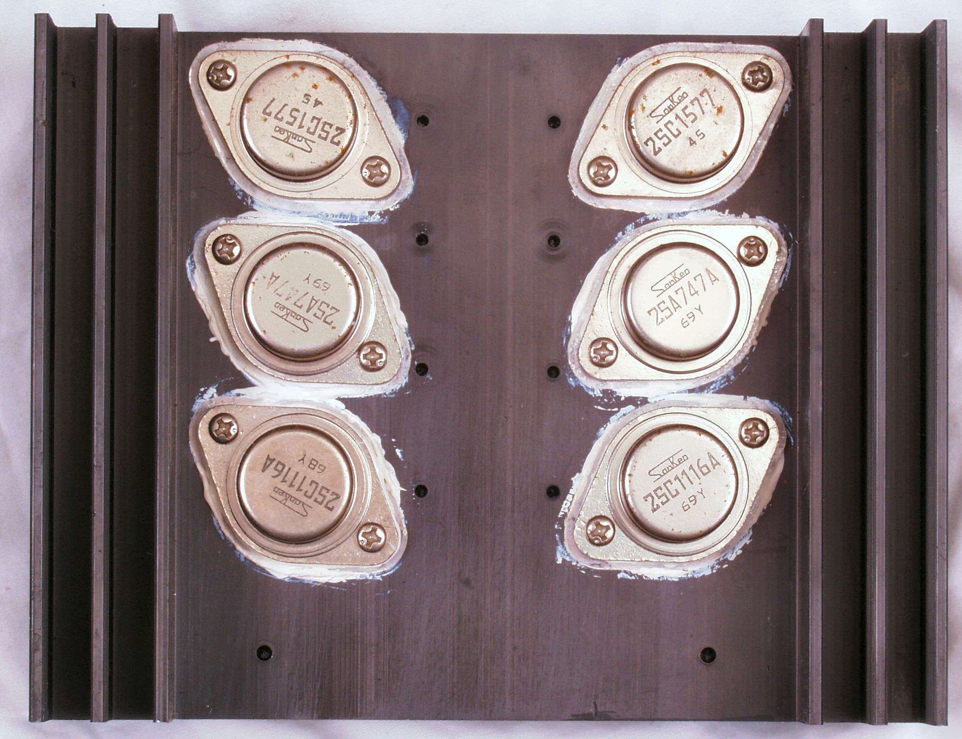 C7B. 修理後 電源出力TR基板 左側のTR(トランジスター)2個交換。 他は増締めしておく