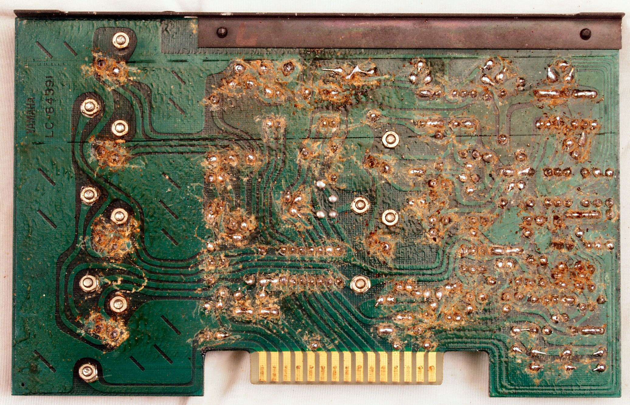 C2F. 完成L側ドライブ基板裏 洗浄後防湿材を塗る