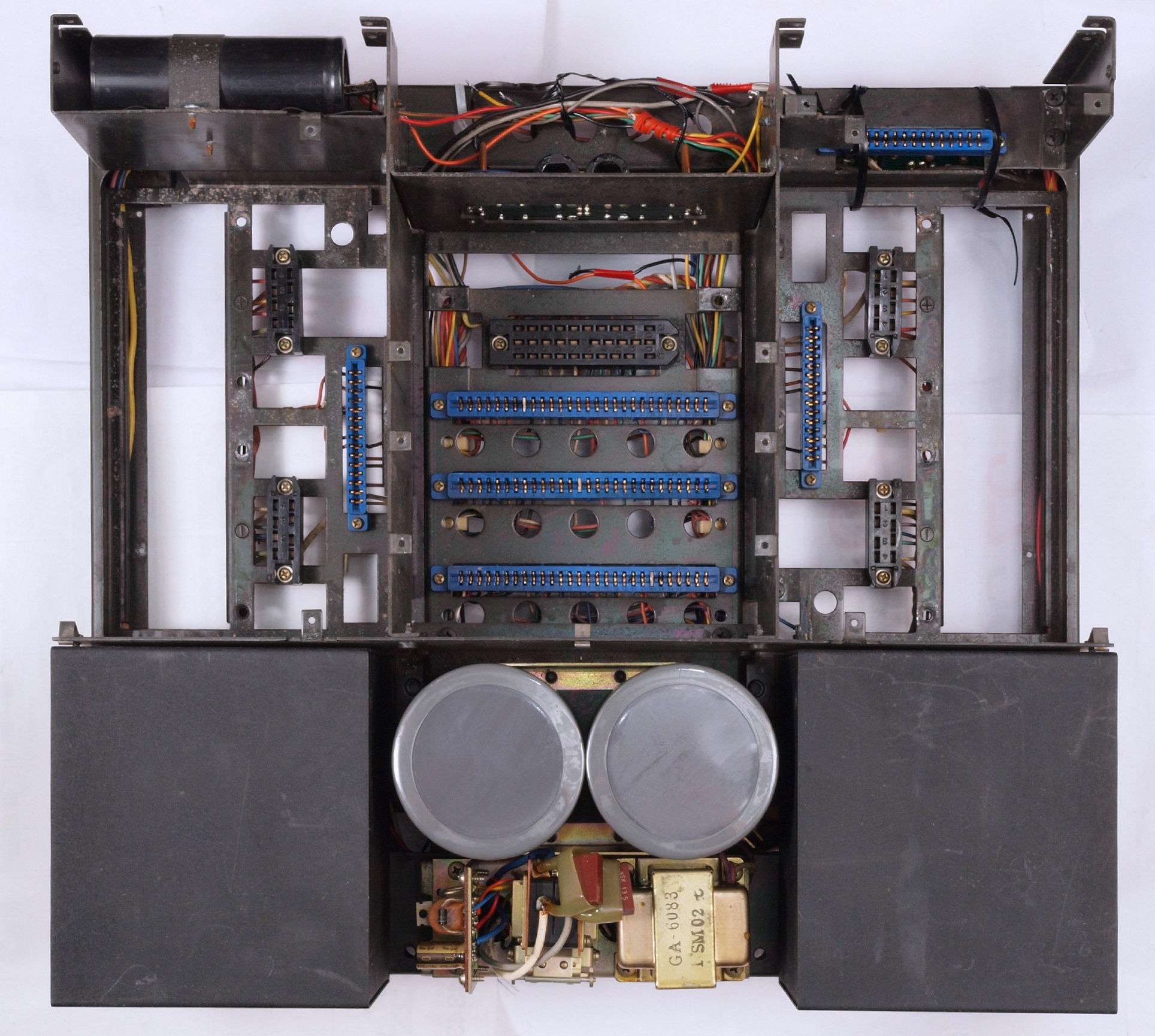C1. 修理中 基板を外したシャーシ。 画像をクリックすると、大きく(横幅2050ドット)表示されます。