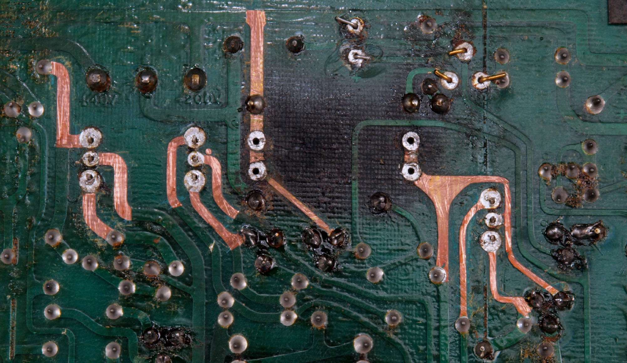 C542. 修理前 電源2基板裏、 銅箔を広げる。